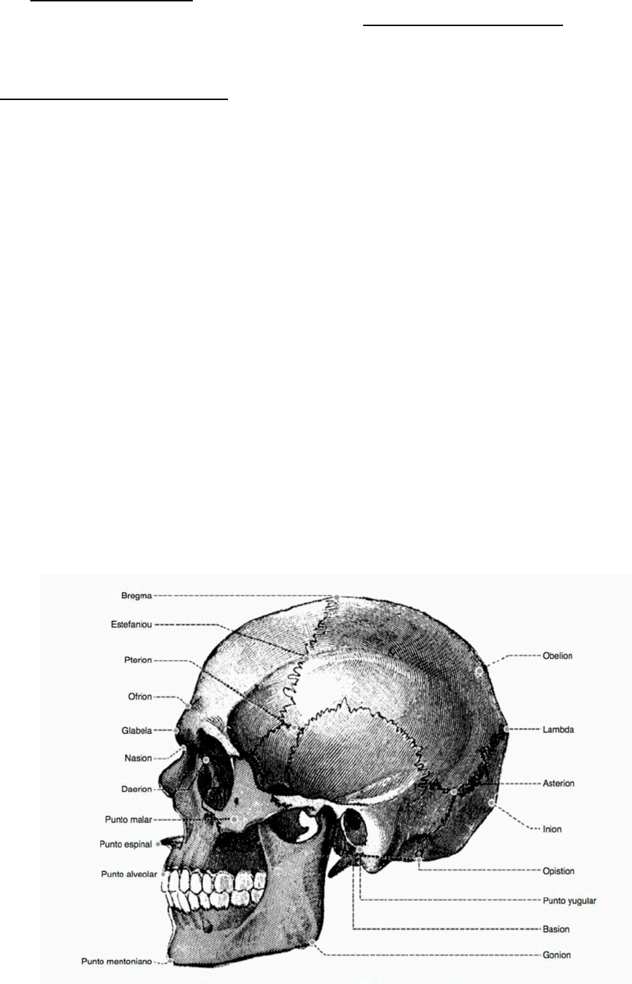 Identificação Craniométrica PONTOS CRANIOMÉTRICOS -Pontos medianos: 16 -Pontos laterais ou pares: 2x12 = 24 Pontos Craniométricos Medianos -Ponto Mentoniano – centro da eminência mentoniana -Ponto alveolar inferior. -Ponto alveolar superior. -Ponto Espinal ou Subnasal – centro da ANS -Rínio – extremo inferior da sutura internasal -Násio – sobre a sutura frontonasal -Glabela – centro da protuberância frontal média -Ófrio – centro do diâmetro frontal mínimo -Bregma – intersecção das suturas coronal e sagital -Obélio – sobre a sutura sagital, ao nível dos dois orifíceios parietais. -Lambda – intersecção das suturas sagital e lambdoide -Ínio – centro da protuberância occipital externa. -Opístio – borda posterior do forame magno. -Básio – borda anterior do forame magno. Há dois pontos que correspondem a locais não fixos da abóbada -Opistocrânio – extremo posterior -Vértice – ponto mais alto Pontos Craniométricos Laterais -Gônio – ângulo da mandíbula -Ponto condíleo – parte mais alta do côndilo -Ponto glenoide – centro da cavidade glenoide -Ponto jugular – Sobre a sutura mastoideo-occipital -Ponto malar – parte mais saliente da maxilar -Ponto frontotemporal – Sobre a crista lateral do frontel, no extremo do diâmetro frontal mínimo. -Estefânio – intersecção da sutura coronal com a linha temporal superior -Dácrio – Encontro do osso frontal e maxila na parede lateral da cavidade orbitária. -Astério – Onde se encontram o occipital, o parietal e a porção mastoidea do temporal. -Ptério – Zona onde se encontram os ossos frontal, esfenoide, parietal e temporal. -Êurio – extremo do diâmtro transverso máximo. -Pório – Ponto mais alto do conduto auditivo externo. ESTIMATIVA DO SEXO. -Em 77% dos casos, do diagnóstico diferencial do sexo pode ser realizado apenas com elementos fornecidos pela inspeção do crânio e da mandíbula -Elementos que auxiliam na diferenciação: MENSURAÇÕES CONVENCIONAIS -Depois da bacia, que sem dúvida é a melhor estrutura para se fazer o diagnóstico diferencial do sexo,o crânio ocupa o segundo lugar (índice de discriminação do dimorfismo sexual >90% ÍNDICE DE BAUDOIN -Utiliza a dimensão dos côndilos occipitais. Já subjetivamente, o côndilos aparecem, longos e estreios no sexo masculino e curtos e largos no sexo feminino. -O índice de Baudoin é obtido pela relação entre a largura do côndilo e seu comprimento máximo, relacionados pela fórmula: Este método oferece um índice de discriminação de 60%, considerado baixo. ÍNDICE DOS DIÂMETROS DO FORAME MAGNO -Relação entre a largura (distância látero-lateral) e o comprimento máximo (ântero-posterior) do forame magno. ESTIMATIVA DO GRUPO ÉTNICO 1- ÍNDICE CEFÁLICO HORIZONTAL Relaciona, no plano horizontal, a latitude (largura máxima) com a longitude (comprimento) do crânio. 2- ÍNDICE SAGITAL (Vertical Lateral ou Perfil) 3- ÍNDICE TRANSVERSAL (Vertical Posterior) Relaciona, percentualmente e no plano frontal, a altura máxima do crânio com o seu comprimento máximo. 4- ÍNDICE FACIAL (índice Prosopométrico) Relaciona, percentualmente e no plano frontal, a altura máxima do maciço facial com a largura máxima. 5- ÍNDICE NASAL Relaciona, percentualmente e no plano frontal, a largura nasal máxima com a altura do nariz. 6- ÂNGULO FACIAL É formado entre o plano frontal que passa rente ao esplâncnocrânio e o plano horizontal que passa pelo centor do meato acústico externo, intersecta o anterior, que na espinha nasal inferior (ângulo de Jaquart); quer no próstion (Ângulo de Cloquet); quer no rebordo incisal dos incisivos inferiores, ângulo de Curvier. -Tipos de Prognatismo – Intimamente ligado com o ângulo facial, que seria apenas a sua quantificação, encontra-se o grau de prognatismo O prognatismo – projeção anterior do maciço ósseo facial – é do tipo alveolar (facial baixo), pronunciado nos negros, nos quais a boca saliente para a frente. Nos amarelos, o prognatismo é do tipo facial alto, projetando para a frente não só o maciço facial como especialmente os ossos malares. Nos brancos, o prognatismo é pouco pronunciado ou inexistente, e o crânio apresenta o perfil vertical, com projeção anterior dos ossos próprio do nariz. ESTIMATIVA DA IDADE -Pelas suturas cranianas -Todas as suturas presentes – menos de 30 anos. -Todas as suturas apagadas – mais de 80 anos. - MANDÍBULA -Pelo ângulo mandibular O ângulo mandibular, no recém-nascido, varia de 160° a 170°. Com a evolução etária, ele diminui paulatinamente, até atingir no adulto , entre 95° e 100°. A pós esse estágio, aumenta a cada ano, alcançando no idoso, entre 130° a 140°. -Forame mentoniano Aproxima-se progressivamente do rebordo alveolar com o avanço da idade. -Redução da cavidade pulpar Desvantagens: carece extrair a peça dentária e realizar a secção longitudinal. ESTIMATIVA DA ALTURA -Fórmula de Carrea -ARCO: somatória, no arco inferior, dos diâmetros mesio-distais do incisivo central, incisivo lateral e canino inferiores (31-31-33 ou 41-42-43) -RADIO-CORDA: medida traçada em linha reta do ponto inicial ao ponto final. A altura humana deve encontra-se entre essas duas medidas. A altura masculina estará mais próxima da altura máxima, enquanto a altura feminina estará mais próxima da altura mínima calculada.