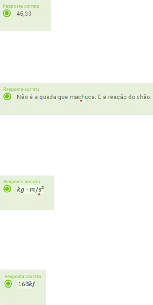 PROVA FÍSICA - DINÂMICA E TERMODINÂMICA O calor específico de um corpo é a quantidade de calor necessária para variar em um grau Celsius uma massa de um grama de um determinado corpo. Uma dada substância de massa 750 g recebe 850000 cal de calor para variar a sua temperatura em 25 °C. Qual o calor específico dessa substância em cal/g°C? Assinale a alternativa correta. É muito comum ouvir a seguinte frase: “não é a queda que machuca. É a parada brusca no chão”. Ela estampa camisetas adesivos e, além disso, é falada em filmes. Apesar de fazer um sentido físico, a sentença é uma piada de gosto duvidoso. Como é possível reescrever essa frase de acordo com as leis de Newton? Assinale a alterantiva correta: O sistema internacional de unidades (SI) é uma maneira de padronizar as medidas de algumas constantes. Por exemplo, de modo que um quilograma tenha a mesma quantidade de matéria em qualquer lugar. A partir das unidades fundamentais do SI todas as outras unidades de medida são obtidas. Considerando apenas unidades fundamentais do SI, qual deve ser a unidade de medida para a força? ( Dica: Utilize a equação da segunda lei de Newton para encontrar a resposta) Pedro e Carol foram visitar os pais em Minas Gerais. Depois de rodarem mais de 400 Km, o carro deu pane e parou na estrada. Carol pegou o volante e Pedro empurrou o carro por 600m até uma oficina mecânica que ficava à beira da estrada. Pedro ficou exausto e empurrou o carro com uma Força de 280 N. Nestas condições, assinale a alternativa que indique qual o Trabalho realizado por essa Força sobre o carro. As escalas termométricas surgiram para padronizar as medidas de temperatura. Ao longo dos anos, diversas escalas surgiram. Atualmente, duas escalas são as principais: Celsius e Kelvin. A escala Fahrenheit, apesar de aparecer com frequência nos livros e exercícios, é utilizada por poucos países devido a sua complicada leitura. Com base nos seus conhecimentos sobre as relações e as conversões entre as escalas termométricas, considere as seguintes temperaturas: 1. 0°C 2. 30°F 3. 100K 4. - 200°C Se desejarmos colocar tais temperaturas em ordem crescente, qual deverá ser a sequência? Se julgar necessário, converta todos os valores para apenas uma escala termométrica. A segunda lei de Newton propõe uma relação matemática entre a força resultante, a massa e a aceleração de um determinado corpo. Com essa relação matemática, é possível por exemplo, encontrar a aceleração que um determinado objeto pode desenvolver. Qual deve ser a aceleração experimentada por um corpo de massa 55 kg e que está sob a ação de uma força de 77 N? As escalas termométricas são utilizadas ao redor do mundo, a fim de aferir a temperatura de uma certa substância. Tais escalas surgiram com a finalidade de padronizar as medidas de temperatura. Atualmente, as escalas mais utilizadas são: escala Celsius e escala Kelvin. Analise as afirmativas a seguir. 1. Na escala Celsius, o ponto de fusão da água é 0°C, e o ponto de ebulição é 100°C. 2. O ponto mais baixo da escala Kelvin corresponde a, aproximadamente, - 273°C. 3. 1°C corresponde a 1K. 4. Uma variação de 1°F corresponde a uma variação de 1°C. Está correto o que se afirma em: As leis de Newton são postulados físicos que discorrem sobre a natureza dos movimentos, bem como sobre suas características. Apesar de terem sido postuladas há mais de 300 anos, tais leis ainda são muito importantes para diversas áreas do conhecimento.’ Analise as afirmações abaixo sobre as três leis de Newton: 1. A primeira lei de Newton postula que todo objeto em repouso deve permanecer em repouso desde que não haja outra força agindo sobre ele. 2. A segunda lei de Newton postula que a força resultante em um sistema é o quociente entre a massa e a aceleração. 3. A terceira lei de Newton postula que para toda ação há uma reação com mesma intensidade e sentido oposto, apenas em casos particulares. 4. A primeira e terceira leis de Newton são casos especiais uma da outra. Então podem ser resumidas a uma só. A seguir assinale a alternativa correta: Suponha uma moeda foi solta do topo de um prédio. Dessa forma, o assuma que o objeto esteja em queda livre. Além disso, desconsidere todos os efeitos da resistência do ar, bem como quaisquer ações dissipativas. De que maneira a força resultante sobre a moeda deve variar ao longo da queda? Assinale a alternativa correta: Uma confeiteira famosa gosta muito de estudar Física. Durante uma de suas receitas, percebeu que era necessário derreter uma barra de chocolate, ou seja, era preciso que o chocolate passasse do estado sólido para o estado líquido. Durante o processo, a confeiteira ficou em dúvida acerca de qual seria o calor trocado para que o chocolate alterasse seu estado físico. Considere que a barra de chocolate estava muito próxima da temperatura de fusão, assinale a alternativa correta.