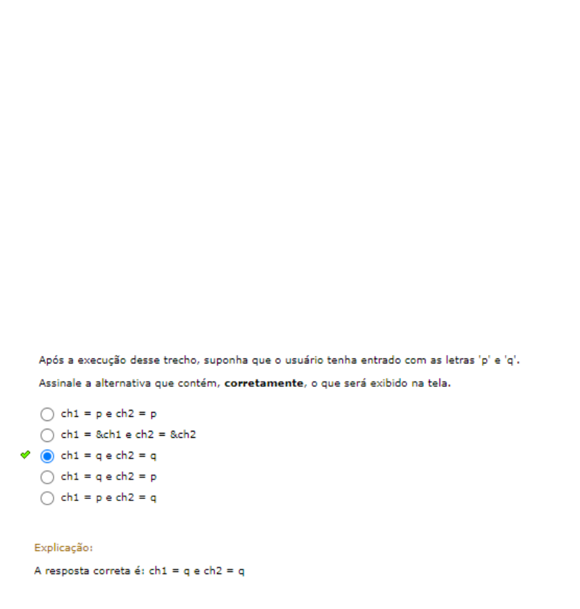 printf("ch1 = %c e ch2 = %c\n", ch1, ch2);