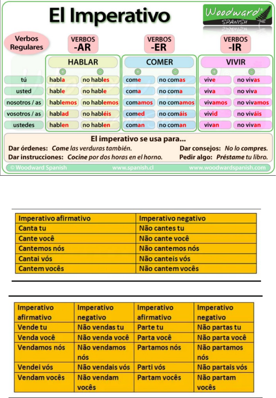 TODAS LAS FORMAS SON IGUALES MENOS VOSOTROS AFIRMATIVO Y LA TERMINACIÓN DE L 3 PLURAL Escríbe las formas negaticas de Tú y vosotros 1- CAMBIO VOCÁLICO DEL IMPERATIVO • PENSAR : E----IE (-AR) : (Tienen las mismas terminaciones que los regulares en -AR) Calentar,cerrar,comenzar,despertar(se),empezar,fregar,gobernar,pensar,regar,recomendar … • DESPERTARSE (desaparece la -D en vosotros afirmativo: Despertad-----despertaos) 1-. conjuga los verbos 1-. regar/tú 2-. pensar/vosotros 3-. comenzar/usted 4-. empezar/tú Neg 5-.fregar/ustedes 6-. recomedar/usted Neg 7- gobernar/él 8-. calentar/vosotros Neg 9-. regar/tú 10-. cerrar/ ustedes 11-. recomendar/ella 12-. gobernar/vosotros Neg 13-. calentar/tú Neg 14-. regar/vosotros 15-. fregar/tú 16-. comenzar/vosotros Neg • QUERER: E----IE (-ER) : (Tienen las mismas terminaciones que los regulares en -ER) Defender,encender,perder,entender • DIVERTIRSE : E----IE/I (-IR) :(Tienen las mismas terminaciones que los regulares en -IR) Mentir,preferir,sentir(se) …(En los reflexivos quitamos la -D de vosotros em los afirmativos sentid ----sentíos) 2-. Conjuga los verbos: 1-. encender/tú 2-. querer/vosotros Neg 3-.perder/vosotros 4-.defender/usted 5-.sentir/ustedes 6-. mentir/ ustedes 7-. preferir/tú Neg 8-. querer/ustedes 9-. entender/usted Neg 10-. divertir/vosotros Neg 11-. defender/ustedes 12-. perder/tú 13-. sentirse/usted 14-. querer/tú 15-.entender/tú 16-.preferir/ustedes Neg 2-.CAMBIO VOCÁLICO DEL IMPERATIVO • PEDIR : E--- I (-IR) :(Sólo se dan en verbos terminados en -IR, tienen las mismas terminaciones que los regulares): medir, impedir, perseguir,reír, sonreír , servir, seguir , repetir, conseguir, corregir, elegir, despedir, freír ….. • VESTIRSE : E--- I (-IR) : (Tienen las mismas terminaciones que los regulares en -IR. En los reflexivos quitamos la -D en vosotros en los afirmativos. vestid----vestíos) 3-. Conjuga los verbos: 1-. Servir/Tú 2-.Elegir/vosotros 3-. Medir/ustedes 4-. Freír/tú Neg 5-. Corregir/usted 6-. Seguir/Vosotros Neg 6-. Despedir/Tú Neg 7-. Conseguir/usted 8-. Servir/vosotros 9-. Perseguir/ustedes 10-. Pedir/usted 11-. Sonreir/Vosotros Neg 12-.Impedir/Tú 13-. Reír/usted 14-. vestirse/Usted 15-. Servir/Tú Neg 3-.CAMBIO VOCÁLICO DEL IMPERATIVO • RECORDAR : O----UE : (Tienen las mismas terminaciones que los regulares en -AR) Acostar(se) , acordarse , comprobar, contar, costar , encontrar , probar , sonar , volar • ACORDARSE : O ----UE (desaparece la -D en vosotros afirmativo: Acordad-----acordaos) • PODER : O----UE : (Tienen las mismas terminaciones que los regulares en -ER) Devolver, llover , morder , soler , volver • DORMIR : O----UE : (Tienen las mismas terminaciones que los regulares en -IR) Morir 4-.CAMBIO VOCÁLICO DEL IMPERATIVO • JUGAR : U---UE : (Tienen las mismas terminaciones que los regulares en -AR) 4-.Conjuga los verbos: 1-.Acostarse/Tú 2-. Soler/vosotros 3-. Poder/ustedes 4-. Sonar/usted Neg 5-.Costar/Tú Neg 6-. Jugar/vosotros 7-.Morder/ustedes 8-. Volar/Vosotros Neg 9-. Recordar/usted 10-. Volver/tú Neg 11-. Llover/ustedes 12-. Comprobar/Vosotros 13-. Morir/tú Neg 14-. Encontrar/usted Neg 15-. Contar/vosotros 16-.Devolver/ustedes
