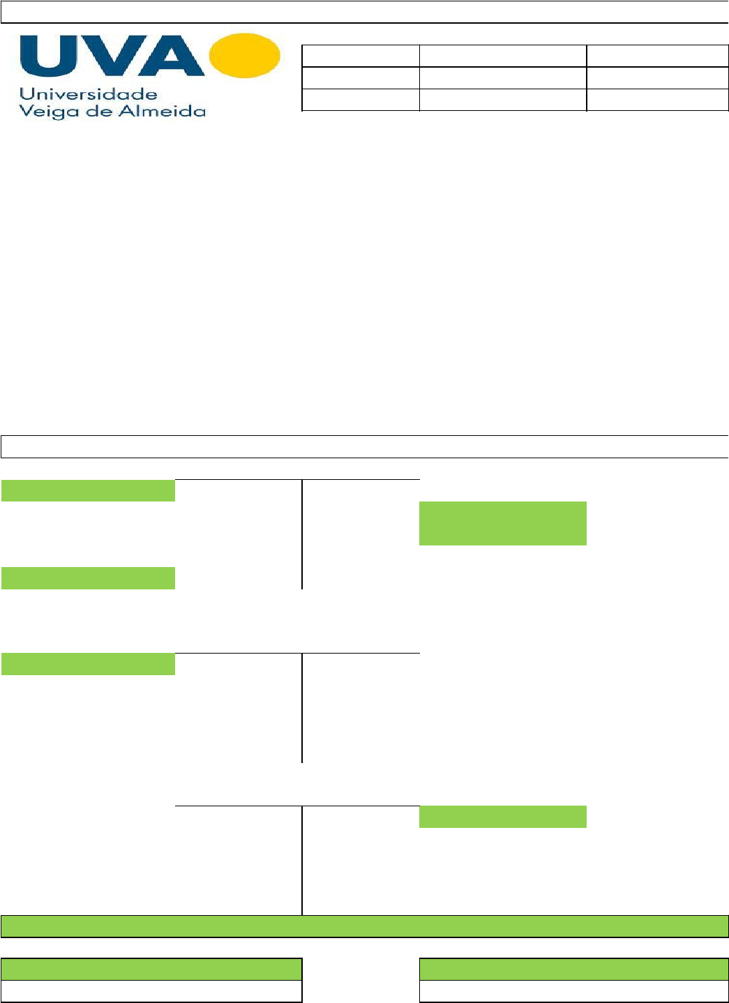 Planilha1 TRABALHO AVA 1 - CONTABILIDADE GERAL ALUNO: ESTER CAMPOS DE OLIVEIRA MATÉRIA: CONTABILIDADE GERAL (IL60036) DATA: 03/06/2022 Carlos, Alberto e José Silva resolveram organizar uma empresa, a qual denominaram Irmãos Silva & Cia. Assim, os sócios contrataram os serviços de um escritório de contabilidade para formalizar a abertura do negócio e registrar todas as operações realizadas pela Irmãos Silva & Cia. Ltda. A empresa atuará no ramo de venda de artigos para festas em geral. Os primeiros registros contábeis das operações realizadas pela Irmãos Silva & Cia. Ltda. Foram os seguintes: 1) Abertura da empresa com um capital integralizado no ato, em dinheiro, no valor de $ 35.000; 2) Compra de um imóvel por $ 30.000, pagando da seguinte forma: $ 3.000 em dinheiro e o restante a prazo com pagamento daqui a 60 dias; 3) Compra, à vista, de móveis e utensílios necessários para a instalação da empresa por $ 3.000; 4) Compra do fornecedor A & Cia., a prazo, $ 8.500 em mercadorias. Supondo que você trabalhe de contabilidade contratado, efetue os lançamentos contábeis em razonetes (conta T) das 4 operações realizadas e apresente o Balanço Patrimonial da Empresa Irmãos Silva & Cia. Ltda. após a 4a. Transação realizada. Para a resolução da questão deve ser utilizada seguintes contas: Ativo: Caixa, mercadorias, móveis & utensílios e imóveis; Passivo: fornecedores e títulos a pagar; Patrimônio Líquido: capital social. RESOLUÇÃO Caixa Capital Social Imóvel 1 R$ 35,000.00 R$ 35,000.00 1 2 R$ 30,000.00 R$ 3,000.00 2 R$ 3,000.00 3 R$ 35,000.00 R$ 6,000.00 PL: R$ 29,000.00 Titulos a pagar Móveis e Utensílios Mercadorias 2 R$ 27,000.00 3 R$ 3,000.00 4 R$ 8,500.00 Fornecedor R$ 8,500.00 4 BALANÇO PATRIMONIAL Bibliografia: https://blog.contaazul.com/glossario/balanco-patrimonial/ Ativo Passivo https://www.socontabilidade.com.br/conteudo/razao1.php Ativo Circulante Passivo Circulante https://saovicentecontabilidade.com.br/qual-a-diferenca-entre-balanco-balancete-e-razonete-entenda/ Caixa R$ 29,000.00 Titulos a pagar R$ 27,000.00 https://www.guiadoexcel.com.br/planilha-contas-t-criar-contas-t-automaticamente-no-excel/ Móveis e Utensílios R$ 3,000.00 Fornecedor R$ 8,500.00 https://www.contabeis.com.br/forum/contabilidade/148174/razonetes-e-balancetes/#:~:text=Para%20fazer%20um%20balancete%20%C3%A9,coloca%20o%20nome%20da%20conta. Mercadorias R$ 8,500.00 Total Passivo Circulante R$ 35,500.00 Total Ativo Circulante R$ 40,500.00 Ativo não Circulante Patrimônio Líquido Imóvel R$ 30,000.00 Capital Social R$ 35,000.00 Total ativo não Circulante R$ 30,000.00 Total Passivo R$ 70,500.00 Total Ativo R$ 70,500.00 Planilha2