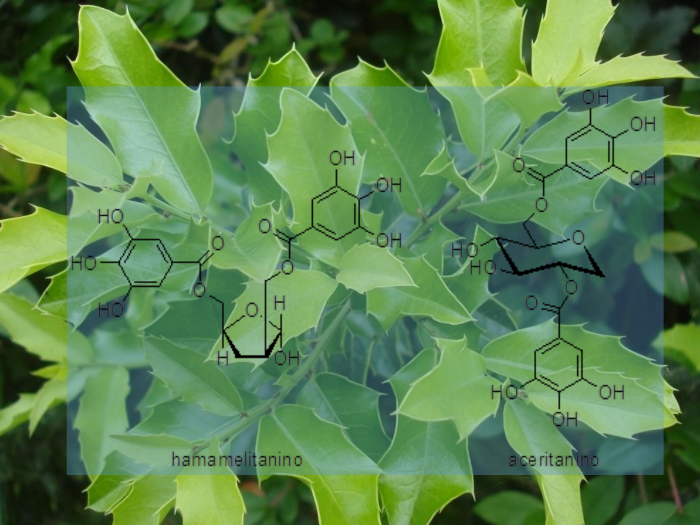 ADKASKDSKAJ TANINOS PROF RODRIGO O DE FARIA O que são taninos? O que são taninos? um grande grupo de substâncias naturais, complexas, de natureza fenólica, hidrossolúveis, que possuem peso molecular compreendido entre 500 e 3000 Dalton e que, além das reações clássicas dos fenóis, apresentam a propriedade de precipitar alcalóides, gelatina e outras proteínas (formam complexos insolúveis em água com estes compostos). historicamente usados para curtir couro. responsáveis pela adstringência de muitos frutos e outros produtos vegetais. Como agem: taninos + macromoléculas interações hidrofóbicas e pontes de hidrogênio entre os agrupamentos fenólicos dos taninos e as proteínas e outros polímeros formação de complexos que precipitam “Taninos conferem sabor adstringente a alimentos e bebidas (frutas, chás, vinho, café, etc).” Classificação: taninos hidrolisáveis taninos elágicos taninos gálicos taninos condensados (ou não hidrolisáveis, ou pró-antocianidinas) (pseudo-taninos) Taninos hidrolisáveis: ésteres de glucose (ou compostos semelhantes) e de ácidos fenólicos: ác. gálico (taninos gálicos) ou ác. hexahidroxidifênico e seus derivados (taninos elágicos). podem ser hidrolisados por ácidos ou enzimas. Taninos hidrolisáveis: Taninos hidrolisáveis: ésteres de glucose (ou compostos semelhantes) e de ácidos fenólicos: ác. gálico (taninos gálicos) ou ác. hexahidroxidifênico e seus derivados (taninos elágicos). podem ser hidrolisados por ácidos ou enzimas. Taninos hidrolisáveis: taninos elágicos são mais frequentes que os gálicos. presentes em pele de romã, casca de romãzeira, folhas de eucalipto, castanha, casca de carvalho etc. Taninos hidrolisáveis: taninos gálicos presentes em ruibarbo, cravo, pétalas de rosa vermelha, hamamélis, castanheira etc. Taninos condensados: oligômeros e polímeros formados pela policondensação de duas ou mais unidades de flavan-3-ol e flavan-3,4-diol. não são hidrolisados e não contêm um núcleo DE CARBOIDRATO. Taninos condensados (contin.): quando tratados com ácidos ou enzimas, se convertem em compostos vermelhos insolúveis conhecidos por flobafenos coloração vermelha de muitas drogas (cascas principalmente). amplamente distribuídos em plantas lenhosas. Presentes em cascas de canelas, cereja, quina, acácia, salgueiro, carvalho, hamamélis; sementes de cacau, guaraná, cola; folhas de hamamélis, chá (verde) etc. FUNÇÕES ECOLOGICAS: inseticida; ● antifúngico; ● antibacteriano. ● inibem o ataque às plantas por herbívoros (vertebrados ou invertebrados); ● inibem ataque por microrganismos patogênicos. ● ↓palatabilidade; ● dificultando digestão; ● produção subst. tóxicas através da hidrólise taninos Economicamente: ● curtimento de couro; ● agricultura ecológica; ● preparação de floculantes tratamento de águas; ● obtenção de polímeros naturais; ● clarificação de vinhos e alcóois; Propriedades físico-químicas: formam sólidos amorfos; solúveis em água (formam soluções coloidais) e em solventes orgânicos polares (acetona, álcool, glicerina). A solubilidade depende do grau de polimerização; insolúveis em solventes orgânicos apolares (éter, clorofórmio); Propriedades físico-químicas: capacidade de precipitar com alcalóides, proteínas, celulose e outras macromoléculas; com hidróxido de cálcio e de bário; com molibdato de amônio; formam complexos (são agentes quelantes) com metais pesados (cobre, mercúrio, chumbo, estanho, zinco etc.); se oxidam com facilidade, principalmente em meio ácido, podendo atuar como agentes antioxidantes. Teste com solução de gelatina a 1% (água, 10% NaCl) - não específico ● Teste com solução de alcaloides - ex.: sol. de cafeína a 1-2% Propriedades físico-químicas: Teste com solução de gelatina a 1% (água, 10% NaCl) - não específico ● Teste com solução de alcaloides - ex.: sol. de cafeína a 1-2% Métodos laboratoriais: precipitação com cloreto férrico (FeCl3): coloração azul = taninos hidrolisáveis; coloração verde = taninos condensados ; precipitação com soluções de gelatina e/ou de alcalóides (quinina, cafeína etc.) e/ou de metais pesados; doseamento por precipitação de pó de pele, por espectrofotometria ou gravimetria; doseamento por precipitação de hemoglobinas e/ou de albumina bovina sérica; cromatografia. CCD Ações farmacológicas e usos: 3 características gerais principais: 1- complexação com íons metálicos 2- atividade antioxidante e sequestradora de radicais livres 3- complexação com macromoléculas Ações farmacológicas e usos: USOS: antídotos em intoxicações por metais pesados e alcalóides; adstringentes: - via externa: cicatrizantes, hemostáticos, protetores e reepitelizantes; - via interna: antidiarreicos; anti-sépticos; antioxidantes; antinutritivos. Aplicações industriais: curtimento de couro; fabricação de tintas; reagentes para detecção de gelatina, proteínas e alcalóides; junto com outros compostos, produção de agentes floculantes e coagulantes para tratamento de água; produção de espumas de uretano (boa resistência à flamabilidade); desenvolvimento de sabor adstringente de vinhos, sucos de frutas, chás e outras bebida, etc. Curiosidades: Pesquisas científicas ao redor do mundo já constataram que o consumo moderado de vinho, em virtude da presença dos taninos, auxilia em cardiopatias, é antioxidante, anti-séptico e combate o envelhecimento das células. Outras substâncias fenólicas da uva, como os flavonóides e as antocianinas, beneficiam a saúde, em relação ao colesterol, radicais livres, e fortalecem o sistema vascular, auxiliando cardiopatias. https://www.wine.com.br/winepedia/curiosidades/qual-a-funcao-dos-taninos-descubra/?doing_wp_cron=1601336425.7526249885559082031250 chá com leite (ingleses) X chá sem leite (holandeses). NOZ-DE-GALHA - crescimentos vegetais em brotos jovens de Quercu