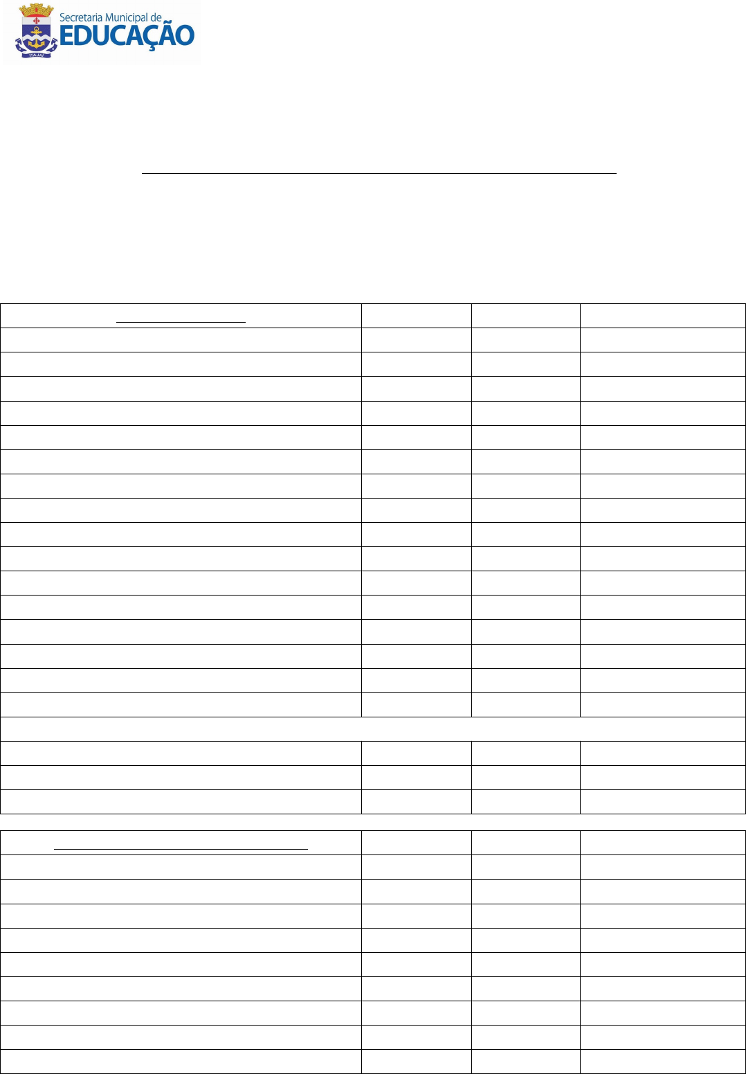 Diretoria Executiva Supervisão de Educação Especial Atendimento Educacional Especializado Unidade de Ensino: ________________________________________ Professor(a): __________________________________________ Aluno(a)______________________________________Ano: ______Turma: _____ Turno: ( ) Mat. ( ) Vesp ENTREVISTA COM OS PROFESSORES DE SALA DE AULA – Anos Iniciais Professor(a), esta entrevista é simples, somente assinale a alternativa de acordo com sua observação em sala de aula. Sua opinião é muito importante para o planejamento das atividades relacionadas ao educando. A entrevista foi organizada em quatro partes. A primeira relacionada ao convívio social, a segunda aos aspectos cognitivos e motores, a terceira em relação à participação da família e a quarta relaciona-se com seu planejamento. Esta entrevista colabora com o processo de análise para o atendimento do aluno com possível dificuldade e tem o objetivo de ajudar a encontrar estratégias para uma flexibilização e efetivação da aprendizagem do educando. CONVÍVIO SOCIAL SIM NÃO ÀS VEZES Tem bom vínculo com seus colegas? Tem bom vínculo com o professor? Reage bem as frustrações? Segue regras de jogo? Cumpre as regras da escola? Precisa ser chamada sua atenção mais de uma vez? Expressa sua opinião? Aceita opinião do outro? No trabalho em grupo, participa? Espera que o outro faça por ele? Comunica-se com clareza? Gosta de participar de atividades extraclasses? Participa oralmente da aula? Expressa o que está sentindo? Gosta de brincar? Participa da Educação Física? É ( ) dependente ( ) retraído ( ) calmo ( ) distraído ( ) curioso ( ) compreensivo ( ) resistente ( ) argumentativo Tem resistência a mudança de rotina? Reage a sons, ruídos e músicas? Vai ao banheiro sozinho? ASPECTOS COGNITIVOS E MOTORES SIM NÃO ÀS VEZES É criativo? Sua letra é legível? Reconhece seu nome? Produz desenhos livres? Relaciona objeto a sua cor? Reconhece letras do alfabeto? Lê com autonomia? Escreve com autonomia? Matem atenção em momentos de contação de historias? Reconta historias? Conta historias no dia a dia? Desenha parte da historia? Responde oralmente perguntas sobre uma historia lida? Reconhece: ( ) dia ( ) semana ( ) mês atual ( ) meses do ano ( ) ano ( ) hoje/ontem/amanhã Realiza operações de: ( ) adição ( ) subtração ( ) divisão ( ) multiplicação ( ) problemas matemáticos ( ) cálculo mental ( ) cálculo com o uso de recursos ( ) relaciona algarismo e quantidade. Utiliza-se de conceitos: ( )grande/pequeno, ( )perto/longe ( )aberto/fechado ( )maior/menor Reconhece: ( ) cores ( ) formas geométricas Reconhece as partes do corpo? Nomina pessoas da família ? Apresenta-se com boa higiene e cuida da aparência? Realiza tarefas de casa? Precisa de mais tempo para realizar as tarefas em sala? Apresenta resistência para fazer as atividades propostas? Sabe se organizar? PARTICIPAÇÃO DA FAMÍLIA SIM NÃO ÀS VEZES A família é presente? A família comparece as chamadas? Tem bom vinculo com o professor? Acompanha as tarefas escolares? Os pais são alfabetizados? Os pais demonstram acreditar no potencial do filho? PLANEJAMENTO SIM NÃO ÀS VEZES Você acredita no potencial do seu aluno? Tem objetivos claros para desenvolver as habilidades do aluno? Seu planejamento contempla esse educando? Procura estar informado sobre inclusão? Percebe evolução no processo de ensino aprendizagem? Tem apoio da escola em suas ações? Referente a um trabalho em parceria com o professor de Educação Especial e Supervisor Escolar gostaria de solicitar: ( ) nenhum recurso ( )serviço de orientação ( )adaptação de material ( ) ações em sala de aula ( ) outras _______________________________________________________________________________________ Outras observações (o professor gostaria de acrescentar informações sobre seu aluno?) _____________________________________________________________________________________________________________________________________________________________________________________________________________________________________________________________________________________________________________________________________________________________________________________________________________________________________________________________________________________________________ Data: ____/_____/_____ __________________________________ ____________________________ Assinatura Professor(a) Regente Assinatura Professor(a) AEE