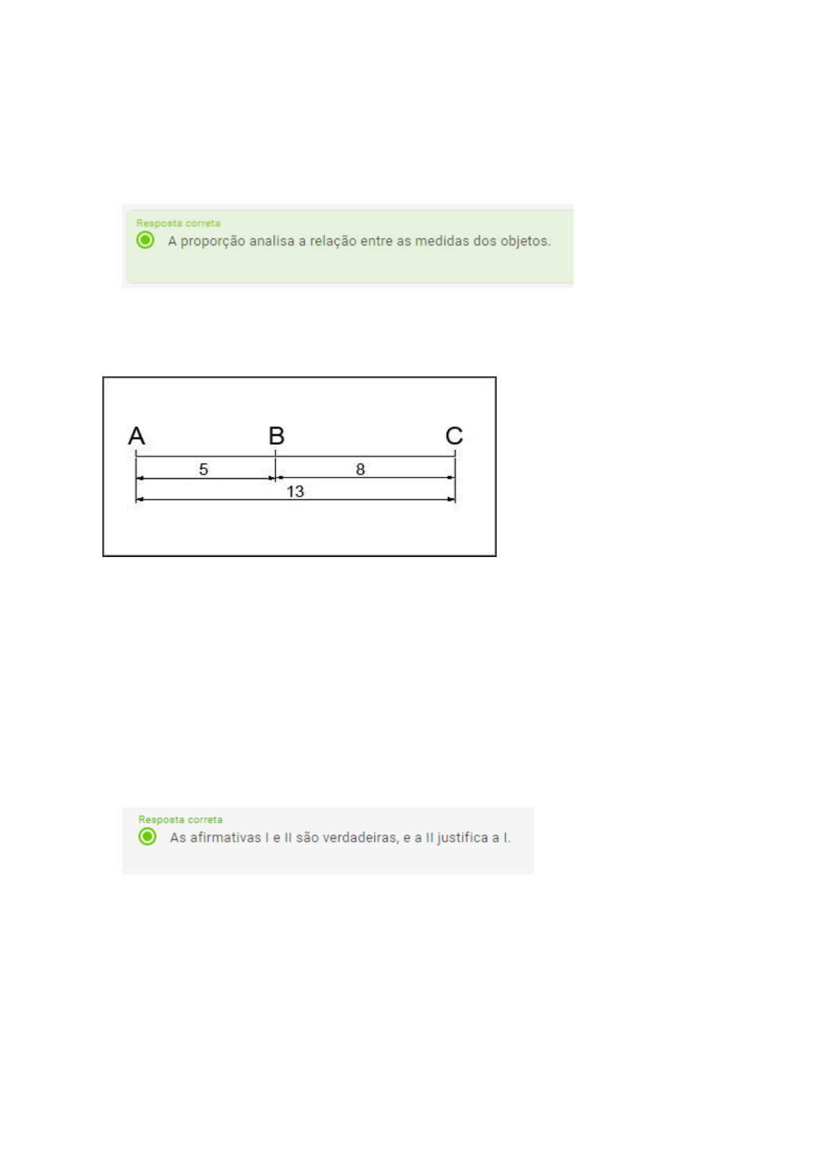 1- "A proporção é uma definição do tamanho relativo, não do tamanho físico. Esse não é um fator que a determina" (CURTIS, Brian. Desenho de Observação. Ed. Bookman. Porto Alegre. 2015, p.79). A partir da leitura do excerto acima e de acordo com o texto base, podemos concluir que: R: _________________________________________________________________________ 2- Observe a figura: Fonte: Sandra Marques A figura acima apresenta os segmentos AB, BC e AC, que apresentam as medidas 5, 8 e 13, respectivamente. Com base no conceito de proporção áurea, analise as afirmativas abaixo e a relação proposta entre elas. I. O segmento AC é dividido na proporção áurea. Pois: II. AB é proporcional a BC, assim como BC é proporcional a AC. Assinale a alternativa correta: R: _________________________________________________________________________ 3- Observe a ilustração abaixo: Figura: Segmento de reta em proporção áurea Fonte: Sandra Marques Considerando os segmentos de reta x, y e z, delimitados pelos pontos A, B e C, e de acordo com o conceito de proporção áurea, analise as seguintes questões: I - A soma de x e y é uma medida proporcional a z. II - x é proporcional à y, assim como y é proporcional a z. III - A proporção entre x e y e a proporção entre y e z é considerada a proporção áurea. IV - Dividindo valor de z pelo valor de y, temos um número exato. Está correto o que se afirma em: R: _________________________________________________________________________ 4- Observe a figura abaixo: Figura: O nascimento de Vênus - Sandro Botticelli Fonte: Adaptado de Sandro Botticelli / Wikimedia Commons. Disponível em: https://pt.wikipedia.org/wiki/O_Nascimento_de_V%C3%AAnus#/media/Ficheiro:Sandro_Bott icelli_-_La_nascita_di_Venere_-_Google_Art_Project_-_edited.jpg Acesso em: 28/07/2019 https://pt.wikipedia.org/wiki/O_Nascimento_de_V%C3%AAnus#/media/Ficheiro:Sandro_Botticelli_-_La_nascita_di_Venere_-_Google_Art_Project_-_edited.jpg https://pt.wikipedia.org/wiki/O_Nascimento_de_V%C3%AAnus#/media/Ficheiro:Sandro_Botticelli_-_La_nascita_di_Venere_-_Google_Art_Project_-_edited.jpg A imagem acima traz a obra “O Nascimento de Vênus”, do pintor renascentista italiano Sandro Botticelli, além de ilustrações que demonstram o uso da proporção áurea em sua composição. Com base na observação da figura e no conteúdo estudado, analise as seguintes questões: I - A proporção áurea foi usada por grandes artistas apenas para equilibrar a composição. II - Os personagens retratados na obra “O Nascimento de Vênus” se inscrevem perfeitamente em espirais áureas. III - As distâncias acima e abaixo da linha do horizonte estão em proporção áurea. IV - A Composição da obra de Botticelli é assimétrica, assim, a tela não está em proporção áurea, apenas os personagens retratados. Está correto o que se afirma em: R: _________________________________________________________________________ 5- Observe a fotografia e a ilustração abaixo: Figura: Poltrona Barcelona Fonte: Sandra Marques Acima vemos a poltrona Barcelona, de 1929, na fotografia à esquerda, e uma ilustração que demonstra a relação de suas formas e medidas com a proporção áurea. De acordo com a figura e com o texto base, analise as seguintes alternativas: I - A quantidade de linhas no assento e no encosto da poltrona Barcelona corresponde a números constantes da sequência de Fibonacci. II - Tanto a altura, como a largura e a profundidade da poltrona Barcelona inscrevem-se perfeitamente no retângulo áureo. III - A poltrona Barcelona foi criada pelo arquiteto alemão Mies van der Rohe. IV - A estrutura metálica da poltrona Barcelona acompanha as linhas de circunferências com centros definidos pelas linhas externas e médias do quadrado que a circunscreve. Está correto o que se afirma em: R: _________________________________________________________________________ 6- Observe a ilustração: Ilustração: Sandra Marques Considerando que as distâncias entre as casas e o ponto de ônibus estão nas proporções do segmento áureo, e que a casa B fica a 610 metros do ponto de ônibus, podemos concluir que a distância entre as casas é de ______ metros. R: _________________________________________________________________________ 7- Aplicando a proporção áurea aos seus estudos matemáticos, Fibonacci desenvolveu uma sequência de números com características muito próprias. Sobre a sequência de Fibonacci e de acordo com o texto base, classifique as seguintes questões como verdadeiras ou falsas: I - A partir do 2, todos os números da sequência de Fibonacci são a soma dos dois números anteriores. II - O número 8 está na sequência de Fibonacci, logo 6 e 2 são os números anteriores a ele. III - A divisão de um número da sequência de Fibonacci pelo número anterior, resulta em algo próximo a 1,618 - o número áureo. IV - A sequência de Fibonacci é finita e seu último elemento é o número 2584. A alternativa que apresenta a sequência correta é: R: _________________________________________________________________________ 8- O valor matemático da proporção áurea equivale a, aproximadamente, 1,6180. Esse é o chamado número áureo. Ele é representado pela letra grega phi, em homenagem ao matemático grego Phideas. Sobre o número áureo analise as afirmativas abaixo: I - No segmento áureo, o valor 1,6180 é obtido dividindo o segmento maior pelo menor e a reta inteira pelo segmento maior. II - A divisão do valor da reta inteira pelo valor do segmento menor resulta em 1,6180. III - O número áureo foi descoberto pelo matemático italiano Leonardo Fibonacci. IV - Se, no segmento áureo, o valor do segmento maior for 21, o valor do segmento menor será próximo de 13. A alternativa que contém as afirmativas corretas é: R: _________________________________________________________________________ 9- Observe a figura: Figura: Fachada da catedral de Notre-Dame Fonte: E