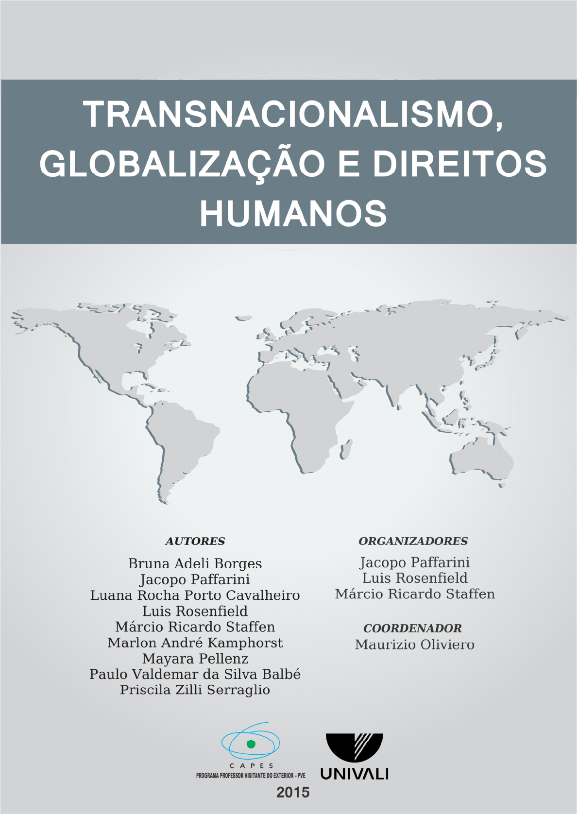 ISBN: 978-85-7696-156-7 ORGANIZADORES Jacopo Paffarini Luis Rosenfield Márcio Ricardo Staffen COORDENADOR Maurizio Oliviero TRANSNACIONALISMO, GLOBALIZAÇÃO E DIREITOS HUMANOS AUTORES Bruna Adeli Borges Jacopo Paffarini Luana Rocha Porto Cavalheiro Luis Rosenfield Márcio Ricardo Staffen Marlon André Kamphorst Mayara Pellenz Paulo Valdemar da Silva Balbé Priscila Zilli Serraglio ISBN: 978-85-7696-156-7 Reitor Dr. Mário César dos Santos Vice-Reitora de Graduação Cássia Ferri Vice-Reitor de Pós-Graduação, Pesquisa, Extensão e Cultura Valdir Cechinel Filho Vice-Reitor de Planejamento e Desenvolvimento Institucional Carlos Alberto Tomelin Procurador Geral da Fundação UNIVALI Vilson Sandrini Filho Diretor Administrativo da Fundação UNIVALI Renato Osvaldo Bretzke Organizadores Jacopo Paffarini Luis Rosenfield Márcio Ricardo Staffen Coordenador Maurizio Oliviero Autores Bruna Adeli Borges Jacopo Paffarini Luana Rocha Porto Cavalheiro Luis Rosenfield Márcio Ricardo Staffen Marlon André Kamphorst Mayara Pellenz Paulo Valdemar da Silva Balbé Priscila Zilli Serraglio Projeto de Fomento Obra resultado do projeto Professor Visitante do Exterior (PVE) com financiamento da Coordenação de Aperfeiçoamento de Pessoal de Nível Superior (CAPES) Diagramação/Revisão Alexandre Zarske de Mello Andrey Gastaldi da Silva Heloise Siqueira Garcia Capa Alexandre Zarske de Mello Comitê Editorial E-books/PPCJ Presidente Dr. Alexandre Morais da Rosa Diretor Executivo Alexandre Zarske de Mello Membros Dr. Clovis Demarchi MSc. José Everton da Silva Dr. Liton Lanes Pilau Sobrinho Dr. Sérgio Ricardo Fernandes de Aquino Créditos Este e-book foi possível por conta da Editora da UNIVALI e a Comissão Organizadora E-books/PPCJ composta pelos Professores Doutores: Paulo Márcio Cruz e Alexandre Morais da Rosa e pelo Editor Executivo Alexandre Zarske de Mello Endereço Rua Uruguai nº 458 - Centro - CEP: 88302-901, Itajaí - SC – Brasil - Bloco D1 – Sala 427, Telefone: (47) 3341-7880 FICHA CATALOGRÁFICA T159 Transnacionalismo, globalização e direitos humanos [recurso eletrônico] / organizador Jacopo Paffarini, Luis Rosenfield, Márcio Ricardo Staffen; coordenador Maurizio Oliviero; autores Bruna Adeli Borges ... [et al.]. - Dados eletrônicos. – Itajaí: UNIVALI, 2015. Livro eletrônico. Modo de acesso: World Wide Web: <http://www.univali.br/ppcj/ebook> Incluem referências. Vários autores. ISBN 978-85-7696-156-7 (e-book) 1. Direito. 2. Transnacionalismo. 3. Globalização. 4. Direitos humanos. I. Paffarini, Jacopo. II. Rosenfield, Luis. III. Staffen, Márcio Ricardo. IV. Oliviero, Maurizio. V. Borges, Bruna Adeli. VI. Título. CDU: 34 Ficha catalográfica elaborada pela Biblioteca Central Comunitária – UNIVALI SUMÁRIO ORGANIZADORES ..................................................................................................................................................... VI APRESENTAÇÃO ...................................................................................................................................................... VII PREFÁCIO ..................................................................................................................................................................... IX APONTAMENTOS SOBRE A RELAÇÃO ENTRE AUTONOMIA DO DIREITO E LEX MERCATORIA ......................................................................................................................................................................................... 12 Luis Rosenfield ..................................................................................................................................................... 12 CIDADANIA TRANSNACIONAL: REFL EXÕES E ENFRENTAMENTOS NA SOCIEDADE GLOBALIZADA ........................................................................................................................................................... 25 Mayara Pellenz ..................................................................................................................................................... 25 COSTITUZIONE E LINGUAGGIO NORMATIVO: UNA RIFLESSIONE DA UNA PROSPETTIVA COMPARATISTICA ................................................................................................................................................... 50 Jacopo Paffarini .................................................................................................................................................... 50 POR UMA CONQUISTA HISTÓRICA: A PROTEÇÃO DAS ÁGUAS NO BRASIL E NA BOLÍVIA E A SUSTENTABILIDADE ALÉM DAS FRONTEIRAS DOS ESTADOS ............................................................. 75 Luana Rocha Porto Cavalheiro ....................................................................................................................... 75 UMA INTRODUÇÃO AOS DIREITOS HUMANOS E FUNDAMENTAIS NO PLANO TRANSNACIONAL .................................................................................................................................................... 87 Marlon André Kamphorst ................................................................................................................................ 87 O DIREITO AO LAZER COMO DEMANDA TRANSNACIONAL ............................................................... 110 Bruna Adeli Borges .......................................................................................................................................... 110 ESTADO E(M) CRISE: COMO GARANTIR DIREITOS? .............................................................................. 129 Paulo Valdemar da Silva Balbé .................................................................................................................... 129 A GLOBALIZAÇÃO DO DIREITO E A MUNDIALIZAÇÃO DOS JUÍZES ................................................. 150 Priscila Zilli Serraglio ......................................