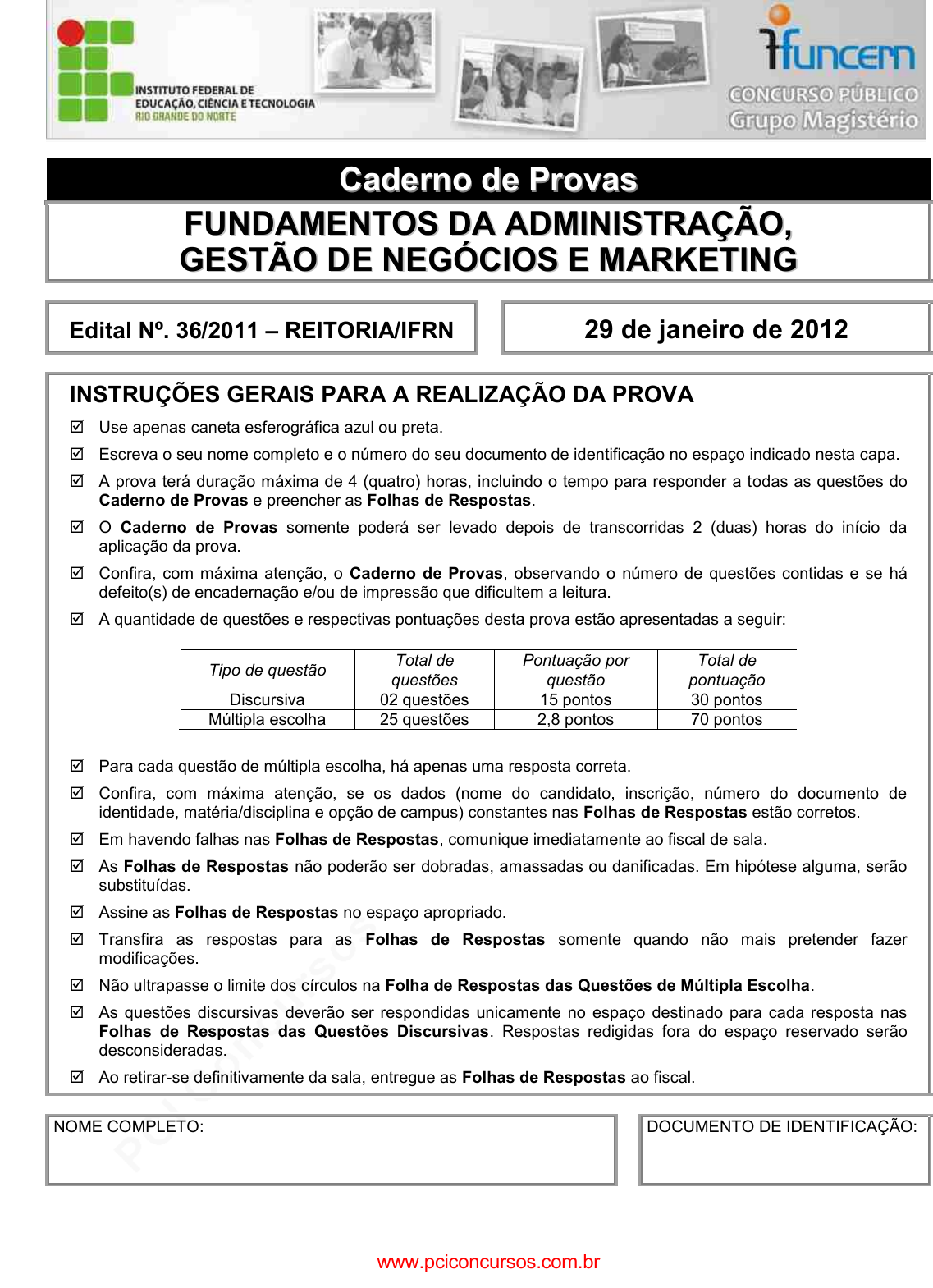 IFRN – Concurso Público Grupo Magistério – Fundamentos da Administração, Gestão de Negócios e Marketing 4