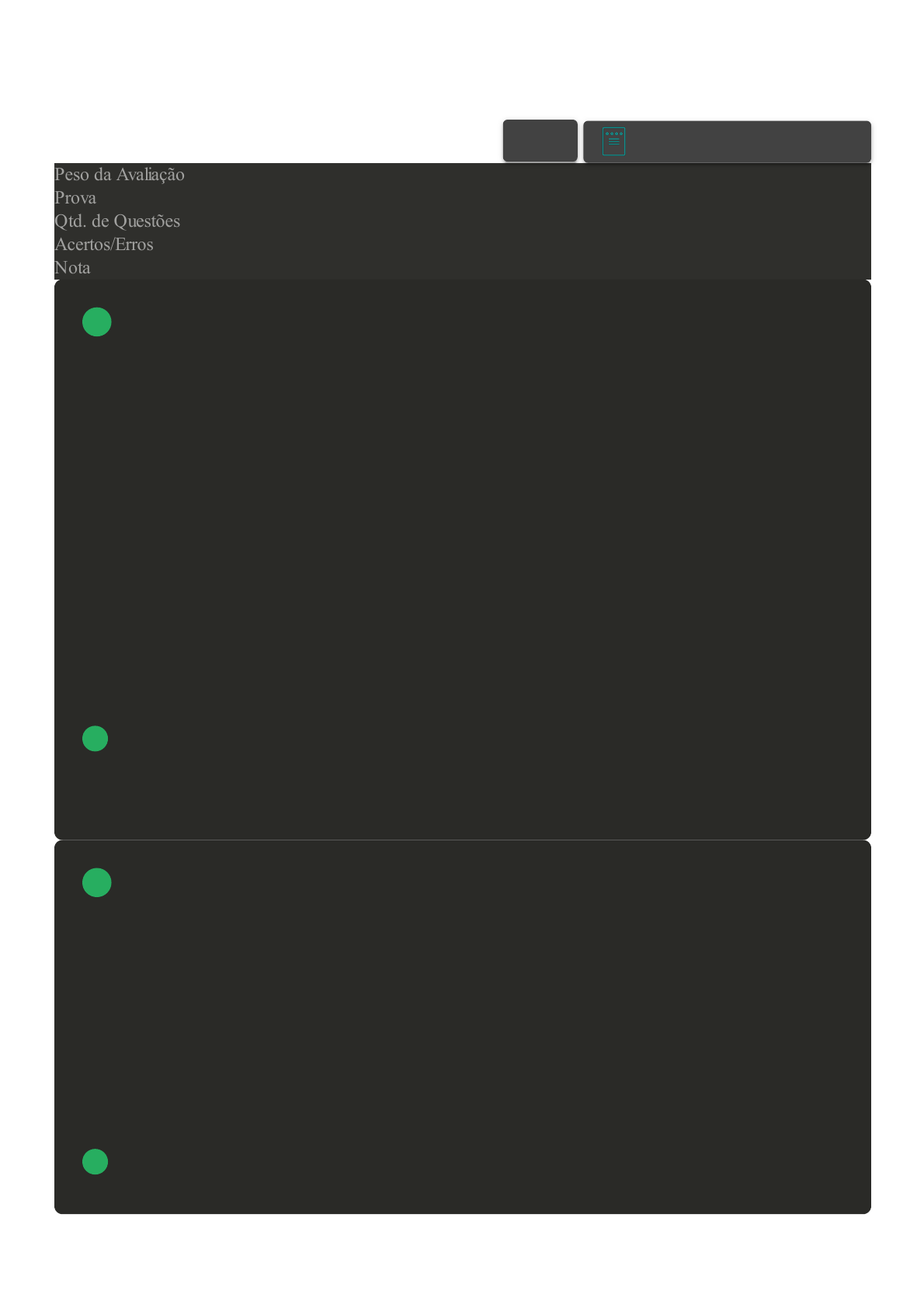 27/06/2022 10:59 Avaliação I - Individual 1/4 Prova Impressa GABARITO | Avaliação I - Individual (Cod.:738544) Peso da Avaliação 1,50 Prova 45259275 Qtd. de Questões 10 Acertos/Erros 10/0 Nota 10,00 Ao nos referenciarmos com os processos básicos de Psicologia podemos nos deparar com os temas percepção, inteligência, pensamento e atenção. Referente aos processos estes se relacionam de muitas formas em cada pessoa, constituindo as diferenças em cada pessoa. Com relação a esses processos, classifique V para as sentenças verdadeiras e F para as falsas: ( ) Percepção é a capacidade de captar estímulos externos e associar aos órgãos do sentido, como a memória, por exemplo. ( ) Inteligência é a capacidade de compreender as informações e colocar as ideias em prática. ( ) Atenção é a capacidade de a pessoa se desconcentrar frente aos estímulos e reagir de forma intrapessoal. ( ) Pensamento é a capacidade da pessoa de elaborar conceitos, construir raciocínios e solucionar problemas. Assinale a alternativa que apresenta a sequência CORRETA: A F – F – F – V. B V – F – V – F. C V – V – F – V. D F – V – V – F. Gardner (1995) desenvolveu estudos voltados no sentido de explicar e compreender o pensamento humano, com foco no desenvolvimento e falhas das capacidades intelectuais. Sobre inteligências múltiplas, assinale a alternava INCORRETA: FONTE: GARDNER, H. Inteligências múltiplas: a teoria na prática. Porto Alegre: Artes Médicas, 1995. A Inteligência musical. B Inteligência espacial. C Inteligência interpessoal. D Inteligência humana. VOLTAR A+ Alterar modo de visualização 1 2 27/06/2022 10:59 Avaliação I - Individual 2/4 Segundo Soares (2006), em um levantamento sobre o perfil das vítimas de Assédio Moral, constatou-se que trabalhadores com características específicas estavam mais propensos a sofrer ações que se caracterizariam por assédio moral. Sobre essas características, classifique V para as sentenças verdadeiras e F para as falsas: ( ) Trabalhadores com mais de 35 anos. ( ) Pessoas com salários muito altos. ( ) Saudáveis, escrupulosos, honestos. ( ) Pessoas com senso de culpa muito desenvolvido. Assinale a alternativa que apresenta a sequência CORRETA: FONTE: SOARES, L. Q. Assédio moral no trabalho e interações socioprofissionais. 2006. Dissertação – Departamento de Psicologia Social e do Trabalho, Universidade de Brasília, Brasília, 2006. A F - F - V - V. B V - V - V - V. C F - V - F - V. D V - V - F - F. Há uma área da Psicologia que estuda os problemas organizacionais ligados à gestão de pessoas, à promoção da saúde, à comunicação da diretoria e funcionário e atua na busca de um atendimento às necessidades do homem e um maior rendimento no trabalho. Assinale a alternativa CORRETA que indica qual é essa área: A Psicologia atuante. B Psicologia organizacional. C Psicologia contemporânea. D Psicologia empresarial. Galeno distinguiu quatro temperamentos primários, que foram nomeados de acordo com os humores predominantes no corpo de cada pessoa. Com base nisso, assinale a alternativa CORRETA: A Tipo fleumático são indivíduos tristes, que exibiam excesso de bile negra. B Tipo colérico são indivíduos facilmente irritáveis, nos quais predominava a bile amarela. C Tipo melancólico são caracterizado por indivíduos atléticos e vigorosos, nos quais o humor corporal predominante era o sangue. 3 4 5 27/06/2022 10:59 Avaliação I - Individual 3/4 D Tipo sanguíneo são indivíduos cronicamente cansados e lentos em seus movimentos, que possuíam excesso de fleuma. O assédio moral enquanto prática contra os trabalhadores, empregados, funcionários e/ou colaboradores não é novo. Apesar dos avanços em termos de legislação trabalhista e na mudança da mentalidade e dos ambientes de trabalho, ainda há muito o que se fazer. Há um tipo de situação que pode favorecer o surgimento de assédio moral. Sobre isso, analise as sentenças a seguir: I- Constante qualificação, na busca a estimulação para os colaboradores. II- Opção de crescimento disponível para todos os colaboradores. III- A situação da organização demonstra, colaboradores conscientes. IV- A cultura e o clima permissivo da organização, competição exacerbada e a supervalorização das estruturas hierárquicas. Assinale a alternativa CORRETA: A Somente a sentença III está correta. B Somente a sentença IV está correta. C As sentenças I e III estão corretas. D As sentenças II e IV estão corretas. Desde o seu surgimento enquanto ciência, a Psicologia vem expandindo o seu campo de estudo. Em relação às principais distorções da percepção, assinale a alternativa CORRETA: A Contraste: pessoas são percebidas dentro de um contexto e contrastadas com outras, o que produz impressões favoráveis e desfavoráveis. B Projeção: um traço de comportamento serve de base para uma generalização a respeito da conduta de uma pessoa. C Efeito Halo: as características de um grupo social são simplificadas e projetadas em todos os seus integrantes. D Estereótipos e preconceitos: outros são exagerados segundo as perspectivas do observador, que faz julgamentos baseados em suas características. Desde o seu surgimento enquanto ciência, a Psicologia vem expandindo o seu campo de estudo. Muitos estudiosos contribuíram para o crescimento dos conhecimentos na área da Psicologia, fato que contribuiu para que, atualmente, a Psicologia possua uma multiplicidade de modelos teóricos. A respeito disso, assinale a alternativa CORRETA que indica há cerca de quantos anos surgiu a Psicologia: A 75 anos. B 130 anos. 6 7 8 27/06/2022 10:59 Avaliação I - Individual 4/4 C 230 anos. D 100 anos. Determinada área do conhecimento da psicologia busca a integração ampla e compreensiva dos dados obtidos por todos os setores de investigação psicológica. Assinale a alternativa CORRETA que indica qual é essa área: A Neuroci