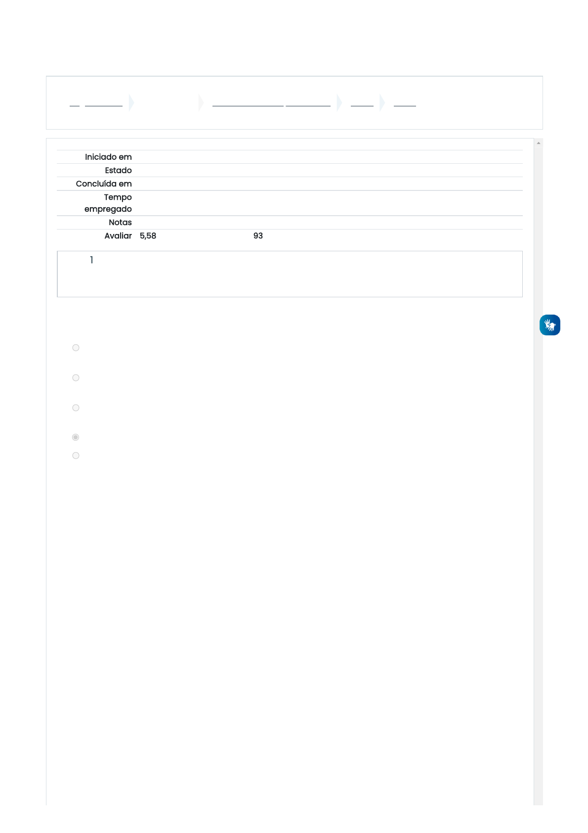 28/06/2022 10:46 Prova: Revisão da tentativa https://ead.ifms.edu.br/mod/quiz/review.php?attempt=1290636&cmid=623356 1/9 Página Inicial Meus cursos MSI3 - Sistemas Operacionais Prova Prova Iniciado em terça, 28 jun 2022, 09:39 Estado Finalizada Concluída em terça, 28 jun 2022, 09:46 Tempo empregado 7 minutos 7 segundos Notas 9,30/10,00 Avaliar 5,58 de um máximo de 6,00(93%) Questão 1 Correto Atingiu 1,00 de 1,00 A respeito dos conceitos de Sistema Operacional, marque a alternativa correta: a. os Sistemas Operacionais não estão relacionados à evolução das CPUs, pois independem de componentes de hardware, já que são executados em um computador virtual (virtual machine). b. atualmente o Sistema Operacional mais utilizado no mundo é o Office 2010 desenvolvido e comercializado pela empresa Microsoft c. é um software da categoria dos aplicativos, utilizado para a criação de textos, planilhas de cálculo, desenhos etc. d. é o software responsável pelo gerenciamento, funcionamento e execução de todos os programas. e. apesar de gerenciar a leitura e a gravação de arquivos, delega a função de localização de programas nas unidades de discos a softwares utilitários de terceiros. Sua resposta está correta. A resposta correta é: é o software responsável pelo gerenciamento, funcionamento e execução de todos os programas. https://ead.ifms.edu.br/ https://ead.ifms.edu.br/course/view.php?id=25659 https://ead.ifms.edu.br/course/view.php?id=25659§ion=6 https://ead.ifms.edu.br/mod/quiz/view.php?id=623356 28/06/2022 10:46 Prova: Revisão da tentativa https://ead.ifms.edu.br/mod/quiz/review.php?attempt=1290636&cmid=623356 2/9 Questão 2 Correto Atingiu 1,00 de 1,00 Com relação aos objetivos de um Sistema Operacional, em duas palavras-chave: Na , o Sistema Operacional age como um facilitador de acesso aos recursos computacionais, pois devido as características especificas de cada dispositivo físico o acesso a esses recursos pelo próprio usuário se tornaria muito complexo e perigoso. Na , cabe ao Sistema Operacional o papel de definir políticas para gerenciar e proteger o uso dos recursos de hardware pelos aplicativos, resolvendo eventuais disputas e conflitos abstração gerência Sua resposta está correta. A resposta correta é: Com relação aos objetivos de um Sistema Operacional, em duas palavras-chave: Na [abstração], o Sistema Operacional age como um facilitador de acesso aos recursos computacionais, pois devido as características especificas de cada dispositivo físico o acesso a esses recursos pelo próprio usuário se tornaria muito complexo e perigoso. Na [gerência], cabe ao Sistema Operacional o papel de definir políticas para gerenciar e proteger o uso dos recursos de hardware pelos aplicativos, resolvendo eventuais disputas e conflitos 28/06/2022 10:46 Prova: Revisão da tentativa https://ead.ifms.edu.br/mod/quiz/review.php?attempt=1290636&cmid=623356 3/9 Questão 3 Parcialmente correto Atingiu 0,80 de 1,00 Para cumprir seus objetivos de abstração e gerência, o sistema operacional deve atuar em várias frentes. Cada um dos recursos do sistema possui suas particularidades, o que impõe exigências específicas para gerenciar e abstrair os mesmos. Sob esta perspectiva, as principais funcionalidades implementadas por um sistema operacional são: esta funcionalidade visa distribuir a capacidade de processamento de forma justa entre as aplicações, evitando que uma aplicação monopolize esse recurso e respeitando as prioridades definidas pelos usuários. tem como objetivo fornecer a cada programa uma área de memória própria, independente e isolada das demais aplicações e inclusive do sistema operacional. tem como função implementar a interação com cada dispositivo por meio de drivers. visa criar arquivos e diretórios, definindo sua interface de acesso e as regras para seu uso. definir claramente os recursos que cada usuário pode acessar e garantir que essas definições sejam cumpridas. Gerência de proteção Gerência de memória Gerência de dispositivos Gerência de arquivos Gerência de proteção Sua resposta está parcialmente correta. Você selecionou corretamente 4. A resposta correta é: Para cumprir seus objetivos de abstração e gerência, o sistema operacional deve atuar em várias frentes. Cada um dos recursos do sistema possui suas particularidades, o que impõe exigências específicas para gerenciar e abstrair os mesmos. Sob esta perspectiva, as principais funcionalidades implementadas por um sistema operacional são: [Gerência de processos] esta funcionalidade visa distribuir a capacidade de processamento de forma justa entre as aplicações, evitando que uma aplicação monopolize esse recurso e respeitando as prioridades definidas pelos usuários. [Gerência de memória] tem como objetivo fornecer a cada programa uma área de memória própria, independente e isolada das demais aplicações e inclusive do sistema operacional. [Gerência de dispositivos] tem como função implementar a interação com cada dispositivo por meio de drivers. [Gerência de arquivos] visa criar arquivos e diretórios, definindo sua interface de acesso e as regras para seu uso. [Gerência de proteção] definir claramente os recursos que cada usuário pode acessar e garantir que essas definições sejam cumpridas. 28/06/2022 10:46 Prova: Revisão da tentativa https://ead.ifms.edu.br/mod/quiz/review.php?attempt=1290636&cmid=623356 4/9 Questão 4 Parcialmente correto Atingiu 0,50 de 1,00 As principais funções do escalonamento de processos é. Assinale com Verdadeiro ou Falso Manter a CPU o máximo de tempo ociosa. Permitir que vários processos tenham acesso simultâneo ao processador. Balancear a utilização do processador entre diversos processos. Oferecer tempos de respostas razoáveis para os usuários interativos. Falso Verdadeiro Verdadeiro Falso Sua resposta está parcialmente correta. Você selecionou corretamente 2. A resposta corr