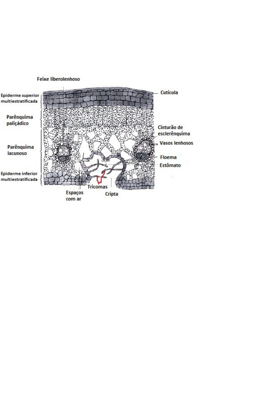 Av1 subst. Botânica unopar 1) A epiderme é um tipo de tecido com função de revestimento primário do vegetal. A imagem 1 de uma microscopia mostra as estruturas presentes numa folha. Imagem 1. Corte de uma folha Fonte: Fábio Dias Magalhães. Disponível em: <http://salabioquimica.blogspot.com.br/2011/09/tecidos-animais-e-vegetais.html>. Acesso em 24 de Nov. 2017. Sobre as estruturas presentes na Imagem 1, analise as afirmativas a seguir: I- Os tricomas regulam os estômatos nas partes aéreas da planta e, consequentemente, controlam o movimento dos gases, incluindo o vapor d’água, possibilitando a sua entrada ou saída da planta. II- O parênquima é o local de percepção da luz envolvida no movimento circadiano das folhas e indução fotoperiódica. III- A cutícula é uma película constituída de uma substância denominada cutina, localizada na parte mais externa da folha. Pode ser encontrada em plantas de regiões secas. IV- Estudos de plantas de regiões áridas indicam que um aumento na quantidade de pelos das folhas, resulta em aumento da refletância da radiação solar e aumento da temperatura da folha. Nesse contexto, assinale a alternativa que apresenta as afirmativas corretas: Alternativas: · a) Apenas a afirmativa I está correta. · b) Apenas a afirmativa III está correta. · c) Apenas as afirmativas II e III estão corretas. · d) Apenas as afirmativas I, II e III estão corretas. Alternativa assinalada · e) Apenas as afirmativas II, III e IV estão corretas. 2) Os plastos, também chamados de plastídeos são orgânulos citoplasmáticos encontrado nas células de algas e das plantas. Eles são diferenciados em diferentes categorias. A partir desse assunto, complete as lacunas a seguir: Os ____________ produzem substâncias orgânicas através do processo de fotossíntese. Eles contêm pigmentos clorofilas e carotenoides; têm armazenamento de grãos de amido e de gotas de lipídios. Já os ____________ possuem pigmentos carotenoides de tom amarelo, laranja, vermelho, porém sem clorofila. Os ____________ não têm pigmentos e também não apresentam membranas internas; podem armazenar amido, sendo chamados de amiloplastos, proteínas ou lipídios. Assinale a alternativa que preenche corretamente as lacunas: Alternativas: · a) leucoplastos, cloroplastos e cromoplastos. · b) leucoplastos, cromoplastos e cloroplasto. · c) cromoplastos, leucoplastos e cloroplastos. · d) cloroplastos, cromoplastos e leucoplastos. Alternativa assinalada · e) cloroplastos, leucoplastos e cromoplastos. 3) Os órgãos vegetais apresentam estruturas formadas por diferentes tipos de tecidos. Sendo que os órgãos vegetais são classificados como vegetativos e reprodutivos. Figura 1. Tecidos distribuídos na parte vegetativa da planta. Fonte: ROMERO, Regis. Disponível em: < http://slideplayer.com.br/slide/1670167/>. Acesso em: 04 de Dez. 2017. Analisando a Figura 1 da parte do meristema apical do caule em direção à parte do meristema apical da raiz, a sequência correta dos tecidos apresentados pela numeração é: Alternativas: · a) 1- parênquima; 2- xilema; 3- floema; 4- esclerênquima; 5- colênquima. · b) 1- xilema; 2- parênquima; 3- floema; 4- colênquima; 5- epiderme. · c) 1- colênquima; 2- floema; 3- esclerênquima; 4- parênquima; 5- epiderme. · d) 1- epiderme; 2- parênquima; 3- xilema; 4- floema; 5- esclerênquima. Alternativa assinalada · e) 1- floema; 2- epiderme; 3- xilema; 4- esclerênquima; 5- parênquima. 4) A anatomia dos frutos é extremamente diversificada. O exocarpo tem origem na epiderme do ovário e pode apresentar características como cutícula e estômatos. Muitos frutos apresentam células e tricomas pegajosos, envolvidos na aderência desses frutos em organismos dispersores. Figura 1. Fruto - Abacate. Fonte: TIPOS de frutos. Disponível em: https://www.todamateria.com.br/tipos-de-frutos/. Acesso em: 05 dez. 2017. A partir dessas informações, avalie as assertivas a seguir e a relação proposta entre elas: I. Frutos com caroço, como manga, pêssego e azeitona, apresentam endocarpo geralmente com tecido esclerificado (esclerênquima), o que os torna rígidos. PORQUE II. O endocarpo é composto por parênquima de reserva, colênquima e esclerênquima como tecidos de sustentação. A respeito dessas asserções, assinale a alternativa correta: Alternativas: · a) As asserções I e II são proposições verdadeiras, e a II é uma justificativa da I. · b) As asserções I e II são proposições verdadeiras, mas a II não é uma justificativa da I. · c) A asserção I é uma proposição verdadeira, e a II é uma proposição falsa. Alternativa assinalada · d) A asserção I é uma proposição falsa, e a II é uma proposição verdadeira. · e) As asserções I e II são proposições falsas. 5) As células meristemáticas do câmbio são muito vacuoladas. Elas existem em duas formas: como iniciais fusiformes orientadas verticalmente, as quais são muitas vezes mais longas do que largas, e iniciais radiais orientadas horizontalmente, que são levemente alongadas ou quadrangulares. O câmbio vascular do caule, ao contrário do da raiz, é essencialmente circular e delimitado, desde a sua instalação. Observe a Imagem a seguir com as estruturas que compõem o câmbio vascular do caule: Fonte: EVERT, Ray F.; EICHHORN, Susan E.. Raven (2014). Analise as afirmativas a seguir: A- Quando uma planta lenhosa envelhece, o xilema secundário mais antigo (portanto, mais interno) deixa de transportar a seiva do xilema e forma essa região. B- As camadas de xilema mais externas, condutoras e geralmente mais claras formam essa região. C- Todos esses tecidos externos ao felogênio mais interno, junto com qualquer tecido cortical e floema incluídos entre elas – formam essa estrutura. Ela consiste inteiramente em tecidos mortos. D- A primeira estrutura formada pode acompanhar o aumento em espessura da raiz ou do caule por muitos anos, as demais estruturas