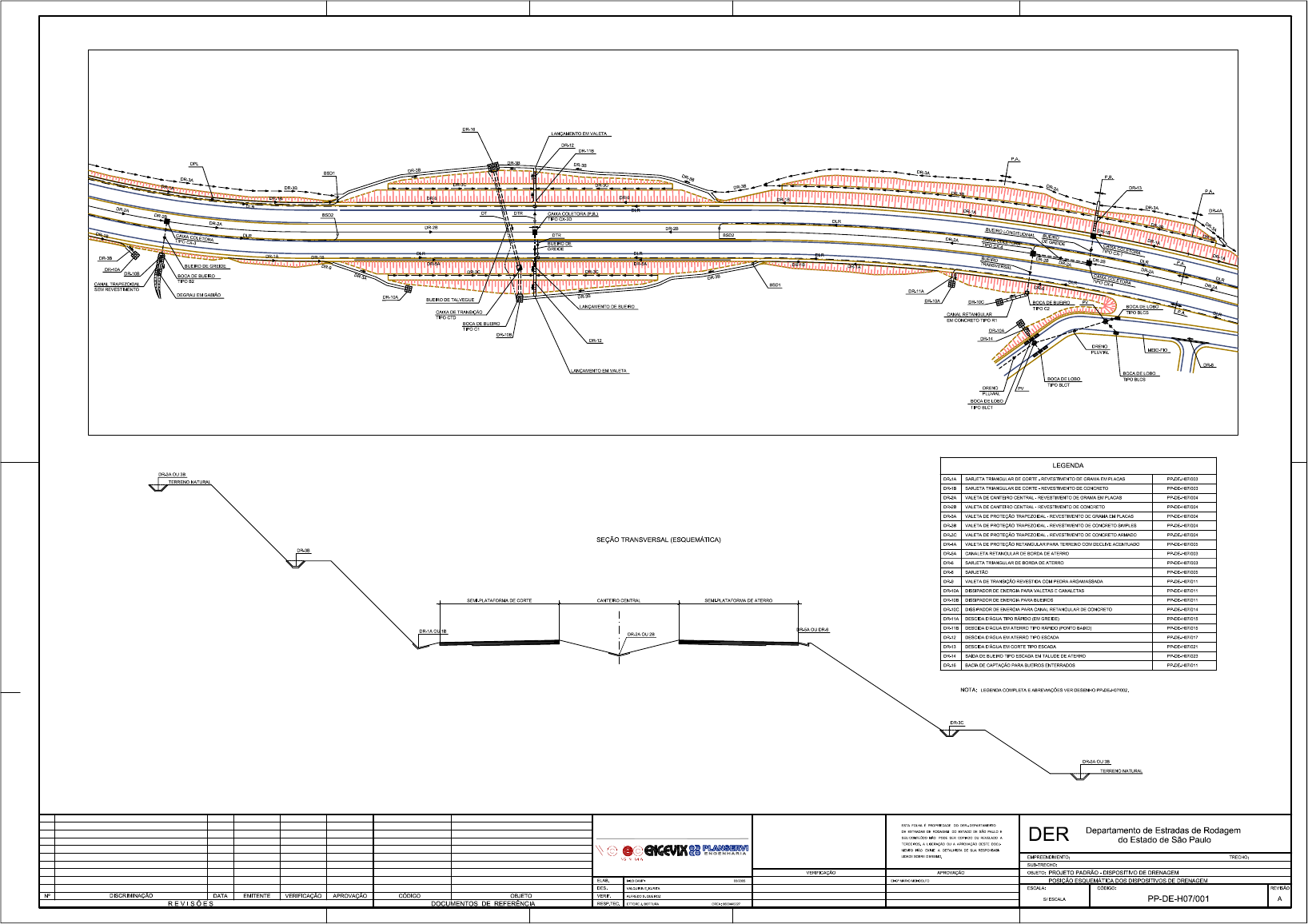 PROJETO PADRÃO - DISPOSITIVO DE DRENAGEM DESCIDA D'ÁGUA EM CORTE TIPO ESCADA DISPOSITIVO DE LANÇAMENTO - ARMAÇÃO S/ ESCALA PP-DE-H07/022 C A. RUBENS ABR/2005 AGUIDA ALFREDO QUEIROZ ETTORE J. BOTTURA 0600440227 ENGº MÁRIO MONDOLFO B ADEQUAÇÃO DO LANÇAMENTO EM BL 04/20006 A.QUEIROZ M. MONDOLFO C REVISÃO GERAL 06/2006 DER M. MONDOLFO LISTA DE FERROS P/ DR-13A LISTA DE FERROS P/ DR-13ALISTA DE FERROS P/ DR-13A A LANÇAMENTO EM SARJETA ( TIPO: DR-13A e DR-13B ) PLANTA A B B C C CORTE C-C CORTE B-B ESC. 1:25 CORTE A-A ESC. 1:25 LANÇAMENTO EM BANQUETA ( TIPO: DR-13A e DR-13B ) PLANTA ESC. 1:25 E E CORTE E-E CORTE D-D 3 Ø 6, 3 C /1 5 10 Ø 6, 3 C /1 5 11 Ø 6, 3 C /1 5 C =1 20 20 Ø 6, 3 C /1 5 21 Ø6,3 C/15 22 Ø 6, 3 C /1 5 25 Ø 6. 3 C /1 5 19 Ø 6, 3 C /1 5 1 2x4 Ø10 2 Ø6,3 C/15 C=167 6 Ø6,3 C/15 8 Ø6,3 C/15 7 Ø6 ,3 C/1 5 C=2 13 9 Ø6 ,3 C/1 5 C=1 95 13 Ø6,3 C/15 14 Ø6,3 C/15 13 Ø6,3 C/15 15 2 Ø 6 ,3 C /1 5 13 Ø6,3 C/15 19 24 Ø6,3 C/15 23 Ø6,3 C/15 C=77 26 Ø 6, 3 C /1 5 27 Ø 6, 3 C /1 5 27 Ø 6, 3 C /1 5 26 Ø 6, 3 C /1 5 18 Ø6,3 C/15 28 2 Ø6.3 12 2 Ø6,3 15 5 53 15 5 1 13 2 2 13 86 13 10 11 1 1 138 2 13 13 7 3 27 18 18 27 28 18 25 24 19 19 23 20 22 26 19 24 26 10 11 19 19 18 18 5 3 3 3 7 9 13 6 9 26 26 NOTAS: 2 - MEDIDAS EM CENTÍMETRO, EXCETO ONDE INDICADO. - CONCRETO ESTRUTURAL - CLASSE C20 ( fck > 20 MPa) - CONCRETO MAGRO- CLASSE C10 ( fck > 10 MPa) - AÇO CA-50 (fyk > 500MPa) 3 - CARACTERÍSTICAS DOS MATERIAIS: - CONSUMO MÍNIMO DE CIMENTO = 300kgs/m3 28 28 18 Ø6,3 C/15 9 9 4 4 5 Ø6,3 C/15 14 1 - PARA FORMAS VER DES. PP-DE-H07/021. 4- COBRIMENTO DA ARMADURA: 3,0cm 5 Ø6,3 C/15 99 a a 99 a 9 12 20 a 9 a 9 9 159 15 16 16 9 9 a 44 9 9 41 a a9 9 30 30 30 a a 9 30 30 5 40 40 9 9 a C=50 a 9 9 COMPRIMENTO (cm) TALUDE: 1:1 POS. QUANT.Ø UNIT. TOTAL RESUMO AÇO CA-50 PESOØ COMPRIMENTO 6,3 TOTAL 10 1 10 8 196 1568 2 6,3 14 177 2478 3 6,3 24 112 2688 4 6,3 24 CM=71 1704 5 6,3 20 CM=156 3110 6 6,3 7 265 1855 7 6,3 7 245 1715 8 6,3 7 229 1603 9 6,3 7 206 1442 10 6,3 7 254 1778 11 6,3 7 123 861 12 6,3 4 299 1196 13 6,3 76 112 8512 14 6,3 12 56 672 15 6,3 56 CM=108 6020 16 6,3 28 89 2492 381,26 95 105 15,68 10 (kg)(m) TALUDE: 1,5 : 1 LISTA DE FERROS P/ DR-13A TALUDE: 1:1 RESUMO AÇO CA-50 PESOCOMPRIMENTO TOTAL 111 121 10 (kg) LISTA DE FERROS P/ DR-13B TALUDE: 1,5 : 1 LISTA DE FERROS P/ DR-13B 14 Ø6,3 C/15 15 2 Ø 6, 3 C /1 5 16 Ø6,3 C/1516 Ø6,3 C/15 a 20 a 9 a 9 9 COMPRIMENTO (cm) TALUDE: 1:1 POS. QUANT.Ø UNIT. TOTAL 18 6,3 4 CM=158 632 19 6,3 32 CM=125 3984 20 6,3 72 112 8064 21 6,3 7 CM=103 721 22 6,3 7 89 623 23 6,3 7 162 1134 24 6,3 7 77 539 25 6,3 7 CM=290 2030 26 6,3 7 CM=146 1022 27 6,3 52 CM=93 4810 28 6,3 26 67 1742 6,3 4 186 744 599 9 9 a a 9 59 9 40 40 17 2 Ø6.3 103 a 17 a 9 29 9 29 TALUDE: 1,5 : 1 PESO (kg) LISTA DE FERROS P/ DR-13A 31 32 35 35 35 29 2 Ø 6,3 20 a 30 Ø 6,3 C/15 9 a 9 31 Ø 6,3 C/15 a 9 32 Ø 6,3 C/15 a 9 9 9 33 Ø 6,3 C/15 a 99 LANÇAMENTO EM BOCA DE LOBO (TIPO: DR-13A) a 9 9 3 4 Ø 6 ,3 C /1 5 CORTE G-G 35 Ø 6,3 C/15 38 2x Ø 6, 3 C /1 5 36 2x Ø6,3 C/15 38 35 33 38 31 32 29 29 a 9 40 9 40 9 9 a 37 30 35 37 3232 35 Ø 6,3 C/15 9 9 a 35 Ø 6,3 C/15 33 37 2 x Ø 6, 3 C /1 5 36 2 x Ø 6, 3 C /1 5a 9 40 9 40 a F F G G H H PLANTA CORTE F-F CORTE H-H 36 34 36 TALUDE: 1:1 LISTA DE FERROS P/ DR-13A (VARIÁVEL = 1,0m) TALUDE: 1,5 : 1 (VARIÁVEL = 1,0m) a 187 94 var 226 167 - 259 94 - - 15 a 91 var 107 a 168 COMPRIMENTO (cm) POS. QUANT.Ø UNIT. TOTAL RESUMO AÇO CA-50 PESOØ COMPRIMENTO 6,3 TOTAL 10 1 10 8 236 1888 2 6,3 14 177 2478 3 6,3 24 112 2688 4 6,3 24 CM=98 2352 5 6,3 20 CM=225 4490 6 6,3 7 358 2506 7 6,3 7 239 1673 8 6,3 7 321 2247 9 6,3 7 203 1421 10 6,3 7 252 1764 11 6,3 7 125 875 12 6,3 4 369 1476 13 6,3 86 112 9632 14 6,3 18 56 1008 15 6,3 76 CM=116 8816 16 6,3 38 89 3382 468,08 117 129 18,88 12 (kg)(m) a 227 94 var 319 164 - 329 94 23 a 137 var 159 a 254 var 10 a 204 COMPRIMENTO (cm) POS. QUANT.Ø UNIT. TOTAL Ø 6,3 TOTAL 10 1 10 8 196 1568 2 6,3 18 177 3186 3 6,3 24 132 3168 4 6,3 24 CM=71 1704 5 6,3 20 CM=156 3110 6 6,3 9 265 2385 7 6,3 9 245 2205 8 6,3 9 321 2889 9 6,3 9 206 1854 10 6,3 9 254 2286 11 6,3 9 123 1107 12 6,3 4 299 1196 13 6,3 76 132 10032 14 6,3 12 56 672 15 6,3 56 6020 16 6,3 28 CM=108 2492 443,06 15,68 (m) a 187 114 var 226 167 108 - 259 114 - 15 a 91 var 107 a 168 var 13 a 184 RESUMO AÇO CA-50 PESOCOMPRIMENTO TOTAL 132 144 12 (kg) COMPRIMENTO (cm) POS. QUANT.Ø UNIT. TOTAL Ø 6,3 TOTAL 10 1 10 8 236 1888 2 6,3 18 177 3186 3 6,3 24 132 3168 4 6,3 24 CM=98 2352 5 6,3 20 CM=225 4490 6 6,3 9 358 3222 7 6,3 9 239 2151 8 6,3 9 321 2889 9 6,3 9 203 1827 10 6,3 9 252 2268 11 6,3 9 125 1125 12 6,3 4 369 1476 13 6,3 86 132 11352 14 6,3 18 56 1008 15 6,3 76 CM=116 8816 16 6,3 38 89 3382 527,12 18,88 (m) a 227 114 var 319 164 - 329 114 23 a 137 var 159 a 254 var 10 a 204 a RESUMO AÇO CA-50 PESOØ COMPRIMENTO 6,3 TOTAL 260,45 65 65 (kg)(m) var 15 a 198 94 - - var 29 a 138 - 166 COMPRIMENTO (cm) POS. QUANT.Ø UNIT. TOTAL 18 6,3 4 CM=158 632 19 6,3 32 CM=155 4944 20 6,3 78 112 8736 21 6,3 7 CM=103 721 22 6,3 7 89 623 23 6,3 7 CM=162 1134 24 6,3 7 77 539 25 6,3 7 CM=343 2401 26 6,3 7 CM=146 1022 27 6,3 64 CM=94 5984 28 6,3 32 67 2144 6,3 4 224 896 a RESUMO AÇO CA-50 Ø COMPRIMENTO 6,3 TOTAL 297,76 74 74 (m) var 23 a 250 94 - - var 29 a 140 - 204 b = VAR. 20 a 50 cm h = VAR. 20 a 40 cm COMPRIMENTO (cm) POS. QUANT.Ø UNIT. TOTAL 30 6,3 4 164 656 31 6,3 14 112 1568 32 6,3 24 CM=70 1668 33 6,3 20 CM=226 4520 34 6,3 14 247 3458 35 6,3 7 208 1456 36 6,3 30 112 3360 37 6,3 26 89 2314 38 6,3 14 177 2478 6,3 28 CM=146 4074 a RESUMO AÇO CA-50 PESOØ COMPRIMENTO 6,3 TOTAL 255,52 64 64 (kg)(m) var 15 a 88 144 var. 208 229 85 94 - 84 var 96 a 177 94 COMPRIMENTO (cm) POS. QUANT.Ø UNIT. TOTAL 30 6,3 4 208 832 31 6,3 14 112 1568 32 6,3 24 CM=96 2304 33 6,3 20 275 5500 34 6,3 14 296 4144 35 6,3 7 208 1456 36 6,3 34 112 3808 37 6,3 34 89 3026 38 6,3 14 177 2478 6,3 40 CM=144 5760 a RESUMO AÇO CA-50 PESOØ COMPRIMENTO 6,3 TOTAL 308,76 77 