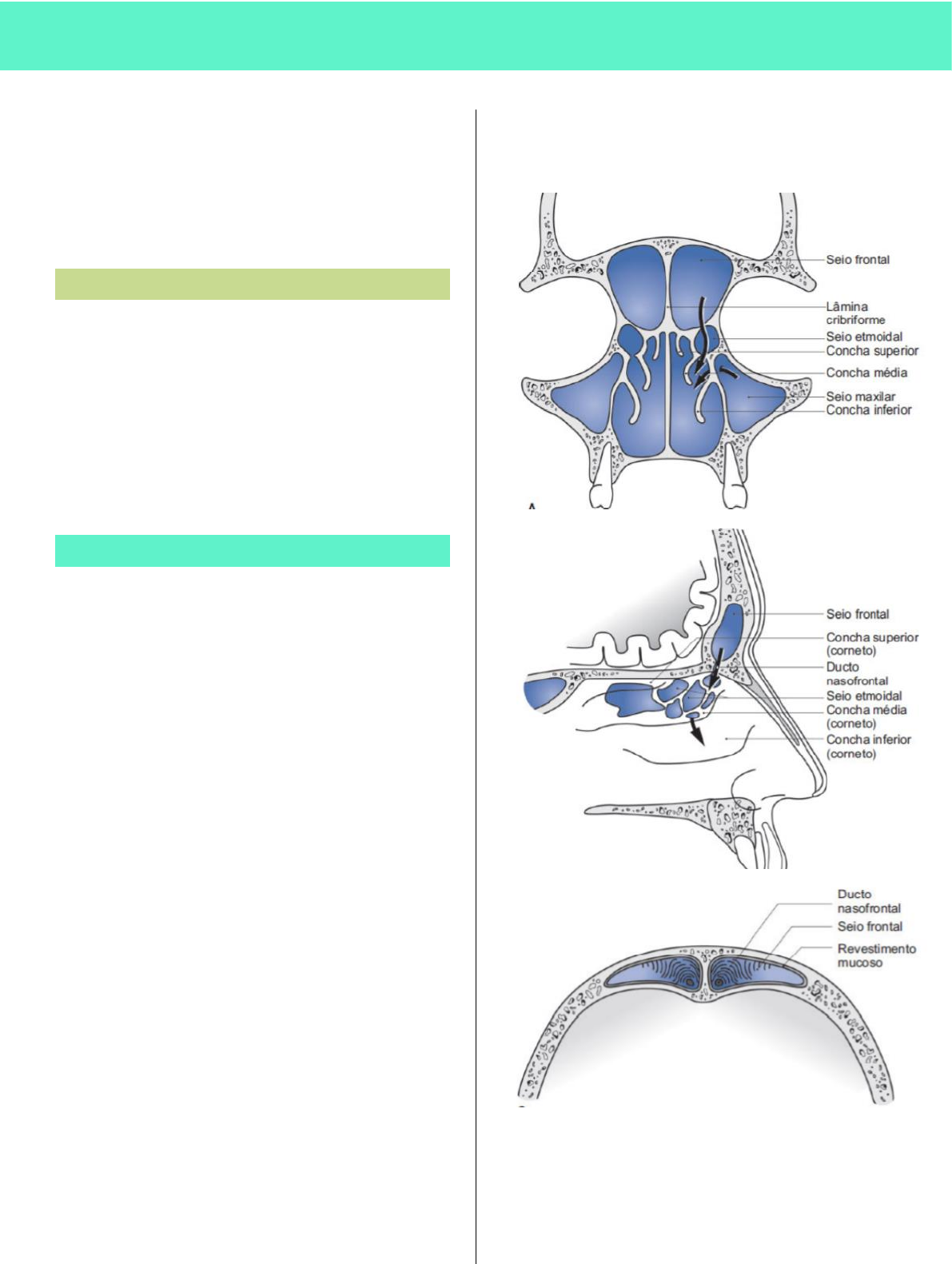 THAINARA STEFANELLI FRATURAS DE FRONTAL E NOE Pouco frequentes; - ocorre geralmente por colisões de automóveis ou motocicletas; - as fraturas NOE podem ocorrer isoladamente, mas em geral estão associadas a outras fraturas do terço médio da face FRATURA DE FRONTAL - Seios triangulares pares são encontrados dentro do osso frontal. Esses seios são assimétricos e separados por um septo frontal. - O osso frontal é mais delgado na região da glabela, na parede anterior e no assoalho do seio. O ducto do seio frontal drena para as células aéreas etmoidais do meato médio do nariz - raro em crianças e adolescentes Avaliação do seio frontal - tábua anterior, tábua posterior e ductos frontonasais - Lacerações, contusões, edema e equimose frontal ou periorbitária são sugestivas de lesão do seio frontal - se houver crepitação nas áreas frontal, supraorbitária ou nasofrontal, deve ponderar a possibilidade de lesão do seio frontal ou ducto nasofrontal; - além disso, avaliar para possível derrame do fluido cerebroespinhal secundário às fraturas de tábua posterior do seio, lâmina cribriforme ou fóvea etmoidal - testes para diagnostico FCE = beta2-transferina e beta-traço - avaliação neurológica + exame ocular A tábua anterior é mais suscetível a fratura devido à sua posição, porém, sua cortical é mais espessa do que a posterior. A tábua posterior é mais fina e fornece menos suporte; quando fraturada, pode levar a consequências mais significativas; qualquer força grande o suficiente pode levar a lesão intracraniana - é mais raro sua fratura isolada; Danos aos ductos frontonasais, o muco que é produzido e circulado não possui meios de ser drenado; comum seu dano em fraturas concomitantes, incluindo NOE e Le Fort - THAINARA STEFANELLI FRATURAS DE FRONTAL E NOE Tratamento das lesões do seio frontal - Terapia antibiótica - Acesso à região fronto-orbital =Usamos o acesso coronal, mas existem outras incisões também - coronal, céu aberto, asa de gaivota, borboleta, sewall e ferimento corto-contuso Tratamento da tábua posterior - determinado pelo grau de envolvimento frontobasilar, pela condição de drenagem dos ductos frontonasais e pela quantidade de lesão cerebral concomitante; - cranialização Tratamento das fístulas do fluido cerebroespinhal - rinorréia traumática do FCE - medidas terapêuticas conservadoras como dreno lombar, reparo cirúrgico intra ou extracraniano e reparos endoscópicos transnasais Tratamento das fraturas do recesso frontal envolvendo o trato de drenagem frontonasal - Fraturas NOE, rebordo supraorbital e assoalho do seio frontal podem obstruir o trato de drenagem frontonasal; - usado como substituto para função do seio frontal, pois é teorizado que o dano ao sistema de drenagem nasofrontal e obstrução associada da drenagem do seio frontal aumenta risco de desenvolvimento de mucoceles e complicações inflamatórias p.o - de uma abordagem superior, solução salina e contrastes podem ser usados intraoperatoriamente para acessar patência do sistema de drenagem - se não tiver patente, tratamento cirúrgico aberto com obliteração = eliminação de toda mucosa sinusal, obstrução do sistema de drenagem e obliteração do espaço morto remanescente; Tratamento da tábua anterior - fraturas simples em galho verde ou minimamente deslocadas da tábua anterior não requerem tratamento cirúrgico - fraturas deslocadas e com múltiplos fragmentos podem requerer intervenção cirúrgica para acessar as deformidades do contorno e talvez diminuir o risco de formação de mucocele Complicações THAINARA STEFANELLI FRATURAS DE FRONTAL E NOE - Transoperatórias = sangramento intracraniano, convulsões, dano neurológico, fístula FCE, lesão oftalmológica, hematoma - Precoces – infecciosas, inflamatória e estéticas = pneumoencéfalo, sinusite, meningite, irregularidade estética - Tardias – infecciosas ou inflamatórias = mucocele, mucopiocele, sinusite frontal tardia, abcesso cerebral secundário FRATURA NOE - As fraturas do complexo NOE podem produzir os seguintes sinais: deformidade nasal, edema e equimose das pálpebras, hemorragia subconjuntival, fístula de líquido cefalorraquidiano (LCR), hiposmia, telecanto traumático, aumento dos ângulos cantais e cegueira Classificação Tipo I Tipo II Tipo III A base da região NOE é um conjunto de pares de pilares do terço médio da face que correm verticalmente da margem piriforme em direção à barra frontal, eles suportam a projeção nasal e inserção do tendão cantal medial (TCM) THAINARA STEFANELLI FRATURAS DE FRONTAL E NOE Avaliação clínica e radiográfica - exame digital completo em busca de mobilidade, crepitação e depressões frequentemente fornece a maioria das informações sobre a extensão da NOE - todo o nariz ou parte dele pode estar afundado O estado da inserção do TCM ao osso deve ser determinado clinicamente através do teste da “corda do arco”; - o canto lateral é apertado e deslocado lateralmente enquanto se observa e palpa a área cantal medial; - o deslocamento lateral da área cantal medial sugere inserção óssea comprometida; pode ser difícil realizar esse teste na presença de edema agudo e paciente consciente... Diagnóstico – classificação - Tipo I = fragmento central de segmento único - Tipo II = fragmento central cominuído c/ fraturas permanecendo externas à inserção do TCM - Tipo III = fragmento central cominuído com fraturas estendendo-se dentro do osso de suporte da inserção cantal THAINARA STEFANELLI FRATURAS DE FRONTAL E NOE Distância intercantal = aumentada, denominada telecanto; - maior que 40mm = fortemente relacionada a NOE Reparo do telecanto = o telecanto é causado pela ruptura da inserção do TCM, afrouxando todo aparato tarsal - após ruptura do TCM, a contração do m. orbicular do olho aumenta a distancia intercantal e causa deslocamento lateral e arredondamento da fissura palpebral medial - a 