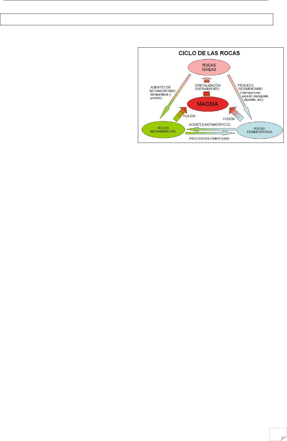 Geología 2º Bachillerato Magmatismo y rocas ígneas 1 departamento de biología y geología IES Bachiller Sabuco - Albacete UNIDAD 5. MAGMATISMO Y ROCAS ÍGNEAS 1. INTRODUCCIÓN. Como vimos en el epígrafe final del tema anterior, los minerales, formados en ciertas condiciones de presión y temperatura, se modifican en cuanto a composición y/o estructura para adaptarse a las nuevas condiciones, formándose nuevos minerales y nuevas rocas: es lo que se conoce como CICLO DE LAS ROCAS. Con carácter general, existen tres ambientes en la génesis y evolución de minerales y rocas: ígneo o magmático, metamórfico y sedimentario. Es un hecho observable que existen una gran variedad de magmas, que dan origen a la gran variedad de rocas ígneas que se pueden reconocer en el planeta. También es posible observar cómo, en términos generales los magmas, y por consiguiente las rocas formadas a partir de éstos, se asocian con situaciones geodinámicas concretas, es decir, que en situaciones geológicas equivalentes solemos encontrar los mismos tipos de rocas ígneas. De ello se deriva la conclusión de que la formación de los magmas está íntimamente relacionada con el marco geodinámico que se produce en los diversos ambientes derivados de la Tectónica de Placas. 2. AMBIENTES MAGMÁTICOS Y FORMACIÓN DEL MAGMA. Aunque las rocas ígneas se localizan en muchas partes del globo, su formación está en realidad restringida a unos pocos ambientes magmáticos que reúnen las condiciones fisicoquímicas y geológicas necesarias para que algunas rocas preexistentes se fundan y formen magmas, y para que estos evolucionen, fluyan y alcancen regiones en las que puedan solidificar. La mayor parte de los magmas, más del 80 %, se forma en bordes de pla ca divergentes; en los bordes convergentes se origina alrededor del 12 %, y solo en torno a la mitad de esta cifra en el interior de las placas. En total, solo la tercera parte de los magmas generados alcanza la superficie; el resto vuelve a convertirse en roca en el interior de la Tierra. ¿Qué es un magma? Los magmas son mezclas de rocas fundidas y gases que, habitualmente, están formados por los siguientes componentes: Una fase líquida mayoritaria, generalmente constituida por silicatos fundidos (aunque hay otras posibilidades, como es el caso de los magmas carbonatados) con proporciones variables de diversos elementos: magnesio, hierro, calcio, sodio, potasio, oxígeno, silicio y aluminio. Una fase sólida formada por cristales y fragmentos de roca sin fundir. Una fase gaseosa, formada principalmente por agua y dióxido de carbono, aunque puede haber otros componentes volátiles como cloruro de hidrógeno, sulfuro de hidrógeno, nitrógeno… La Geología 2º Bachillerato Magmatismo y rocas ígneas 2 departamento de biología y geología IES Bachiller Sabuco - Albacete fracción gaseosa disminuye la viscosidad del fundido, así como el punto de fusión de los minerales. La fluidez del magma depende de la temperatura, viscosidad, densidad, gases y de la acidez/basicidad. Cuanto más básico es el magma, más fluido. La viscosidad del magma está condicionada fundamentalmente por la cantidad de dióxido de silicio presente; esto es debido a que este compuesto forma tetraedros que tienden a unirse (polimerizarse) incluso antes de la cristalización de los minerales, de forma que el aumento en el número enlaces produce un aumento en la viscosidad del magma 2.1 Origen de los magmas primarios. Estos no proceden del núcleo externo terrestre, líquido, cuya naturaleza metálica no guarda relación con la composición silicatada de la mayoría de los magmas. Descartado el núcleo, solo quedan dos alternativas: los magmas proceden, necesariamente, de la corteza o del manto. Ahora bien, los datos sísmicos confirman que tanto la corteza como el manto son sólidos. Ello puede resultar sorprendente, habida cuenta del rápido aumento de la temperatura con la profundidad —el gradiente geotérmico— que eventualmente debería conducir a que se superara el punto de fusión de los materiales, sobre todo en el manto. El origen del magma se sitúa en los cambios de las variables que rigen la estabilidad de los minerales de una roca: presión, temperatura, composición y fluidos. Presión. El paso de sólido a líquido necesario para que se forme magma implica una expansión de la materia. En condiciones normales, las capas internas de la Tierra son sólidas porque, a pesar de las altas temperaturas reinantes, la presión litostática impide la expansión de la materia y, por lo tanto, no tiene lugar el cambio de estado. Una disminución de la presión litostática que tiene lugar, por ejemplo, cuando se forman grietas, permite que la materia se pueda expandir y, en consecuencia, cambiar de estado. Temperatura. Un incremento notable de temperatura, como el generado por la fricción de una placa que subduce, que compense la presión existente. Presencia de fluidos. La presencia de agua u otros fluidos disminuye la temperatura necesaria para fundir las rocas. Composición del material parental, es decir la roca que originará el magma. Hemos de tener en cuenta que cada uno de los minerales petrogenéticos presenta un punto de fusión característico y distinto de los demás. Por esta razón, la roca no se funde homogéneamente, sino que presenta un intervalo de fusión comprendido entre el punto del solidus (temperatura de comienzo de fusión) y el punto del liquidus (temperatura a la que toda la roca está fundida), entre los cuales tendremos en todo momento una mezcla de masa fundida y no fundida. Lógicamente, la fusión comienza por el mineral que presente la temperatura de fusión más baja y termina con el que la presenta más alta. La presencia de agua hace que se rebaje el punto del solidus en 300 o 400 grados Celsius. Geología 2º Bachillerato Magmatismo y rocas ígneas 3 departamento de biología y geología IES Bachiller Sabuco - Albacete 2.2. Tipos de