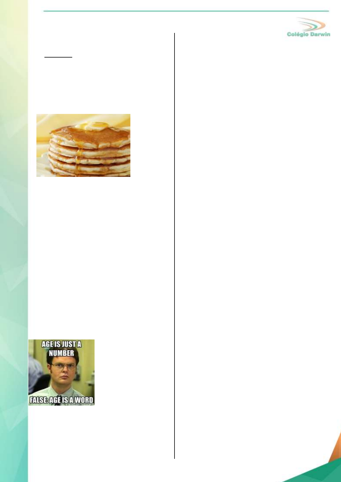 REVISÃO – 8º ANO - INGLÊS 1- Simple Present: Siga o modelo, acrescentando o “s” ao verbo quando necessário: Suzan likes to study French. (to like) a) Lenny _______________ her every week. (to visit) b) My dogs _______________ all night. (to bark) c) They ____________ lunch on Sundays. (to prepare) d) She _______________ there. (to study) e) Dad ____________ his car on weekends. (to wash) TEXT: (quest 2 e 3) WHAT ARE THEY DOING? Lisa: Good morning, mom. Where is Tony? Mom: He is outside the house. He ____________ (to sprinkle) the plants in the garden. Lisa: What about Megan? Mom: Megan is in her bedroom. Lisa: Is she using the computer? Mom: No, she _________________ (not/ to use) the computer. She _______________. (to sleep) Lisa: Where are the dogs? Mom: Rex and Lucky are in the backyard. They ____________ (to play) with Mrs. Parker’s dog, Hulk. Lisa: And what _________ dad ____________________? (to do) Mom: He __________________ (to watch) TV in the living room. Now sit down and have breakfast. I made pancakes for us. Lisa: They look delicious. 2- Complete o diálogo usando o present continuous dos verbos entre parênteses. 3- O que cada uma das personagens do texto está fazendo? Dialogue (questões 4 e 5) George: Happy birthday, Peter! Sorry I’m late to greet you, but I felt sick yesterday. So, I ___________ at the hospital and I couldn’t see you and go to your party. Peter: Oh! Are you ok now? George: Yep! I’m ok. How ___________ the party? Peter: It ___________ great! It’s a pity you ___________ there. Thomas and Melissa ___________ there and they played our favorite CDs. George: ___________ Fred and Barbara there too? Peter: Barbara ___________ there. But Fred had to go to his grandfather’s birthday party. So, he ___________ there. George: And how ___________ the food? Peter: It ___________ delicious! We had Mexican food like tacos and quesadillas. George: I love tacos! 4- Complete as lacunas com was, were, wasn’t ou weren’t, como ensinado em sala de aula. 5- Responda: a) Por que George se lamenta com Peter? b) Por que George não foi à festa? c) Segundo Peter, quem estava na festa? d) Como estava a comida e qual tipo de comida foi servida? 6- Use there was ou there were. Atenção às sentenças interrogativas e negativas: a) ____________ many students in class yesterday? b) ___________ a man on the phone. It was a woman. c) ________________ one credit card in my wallet. d) ___________ some dollars in my wallet yesterday. 7- Use o simple past dos verbos entre parênteses: a) Laura ________________ (to stay) at a hotel when she was in San Francisco. b) The baby ________________ (to cry) for the whole night yesterday. c) He ________________ (to want) to go with us. But the car was full. d) Mom ________________ (to prepare) some cookies this morning. e) I ________________ (to like) her party a lot! 8- Passe para a forma interrogativa e negativa: a) Pablo is taking a shower. b) They have a nice house. c) There were hundreds of people there. d) Larry wanted to buy a new car. 9- What is it like to be a young person in the United States? What is it like to be a young person in the United States? The typical American child spends six hours a day, five days a week, 180 days a year in school. Schools provide American children with much more than academic education. More than 80 percent of all students participate in extracurricular activities, such as sports, student newspapers, drama clubs, debate teams, choral groups and bands. During their leisure time, American kids spend much time watching television, listening to music or playing computer games, but many also have after school jobs. Many youths work part-time on weekends or after school at fast-food restaurants, baby-sit for neighbors, hold delivery jobs or work in stores. Posso afirmar sobre o texto, exceto: a) O jovem estadunidense por vezes tem um trabalho de meio horário aos finais de semana ou após a escola. REVISÃO – 8º ANO - INGLÊS b) Há mais do que matérias básicas na escola estadunidense, como clube de debates, por exemplo c) Há várias atividades extracurriculares em que o aluno estadunidense pode se inscrever. d) A típica criança estadunidense passa 6 horas por dia na escola, todos os dias. e) Durante o seu tempo livre, o jovem estadunidense pode passar o seu tempo livre em entretenimentos como assistir TV, ouvir música ou jogar jogos de computador. 10- Dialogue: Bob: Good morning, Sarah. Sarah: Good morning, Bob. What classes are we having today? Bob: I’m not sure. But I saw the teachers Antony and Judith arriving. I think we have Portuguese and Spanish classes today. Sarah: I love the Portuguese classes. Antony is a great teacher! Bob: Yes, he is. Sarah: I also like the History classes. Bob: I prefer Geography. Marque T ou F: ( ) Antony e Judith são professores. ( ) Antony e Judith lecionam história e geografia. ( ) Bob e Sarah não gostam de português. ( ) A matéria preferida de Bob é geografia. a) T – T – F – F b) T – T – T – T c) T – F – F – T d) F – F – T – F e) F – T – F – F 11- THE WINCHESTER MISTERY HOUSE Marque T ou F: ( ) Sarah casou-se com um fabricante de armas. ( ) Sarah perdeu sua filha e seu marido. ( ) A casa de Sarah tinha passagens secretas e labirintos para espantar o espírito de seu marido. ( ) A construção da casa durou 38 anos. a) F – T – F – T b) T – T – F – T c) F – F – T – T d) T – F – T – F e) T – T – F – F 12- HURRICANES, CYCLONES AND TYPHOONS A hurricane is a huge storm. It can have winds from 75 to 200 mph. A hurricane usually lasts for over a week, moving 10-20 miles per hour over the ocean. Hurricanes gather heat and energy through warm ocean waters. Evaporation from the seawater increases their power. Hurricanes rotate inward and upward in a counter-clockwise direction around an "eye". The center of the storm or "eye" is the calmest part of the hurricane with light wind and fair w