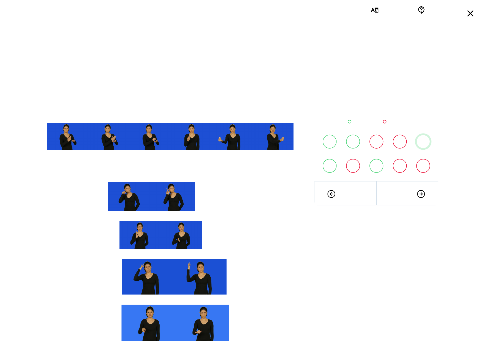 Questão 5 Correta Segundo Choi et al. (2011) uma das formas de se marcar a flexão verbal de tempo em Libras é por intermédio do acréscimo de advérbios de tempo que, indicam se a ação está ocorrendo no presente, passado ou futuro. Considerando esse funcionamento da Libras, analise a frase em Libras representada a seguir: Leia as afirmações a seguir: I. Se inserir o sinal no início da frase em Libras, o tempo do enunciado será marcado no futuro. II. Se inserir o sinal de no início da frase em Libras, o tempo do enunciado será marcado no presente. III. Se inserir o sinal de no início da frase em Libras, o tempo do enunciado será marcado no passado. IV. Se inserir o sinal de no início da frase Prova final Libras - Língua Brasileira de Sinais Acertos 5 de 10 Nota 30 pontos Corretas Erradas 1 2 3 4 5 6 7 8 9 10 Anterior Próxima Correção da prova Tamanho da fonte Dúvidas ao tutor em Libras, o tempo do enunciado será marcado no futuro. V. Se inserir o sinal de no início da frase em Libras, o tempo do enunciado será marcado no presente. Dado o contexto apresentado, estão corretas as afirmações: IV e V. Sua resposta Na frase, temos os sinais CADERNO ENTREGAR-DUAS-PESSOAS. Se acrescentado ao início dessa frase o sinal do item I 'ONTEM"; ou do item II 'Já";, a frase seria marcada no tempo passado. O acréscimo do sinal 'AMANHã"; constante no item III ou 'VAI"; registrado no item IV levam a frase para o tempo futuro. A adição do sinal 'HOJE";, constante no item V, marca a frase no tempo presente.
