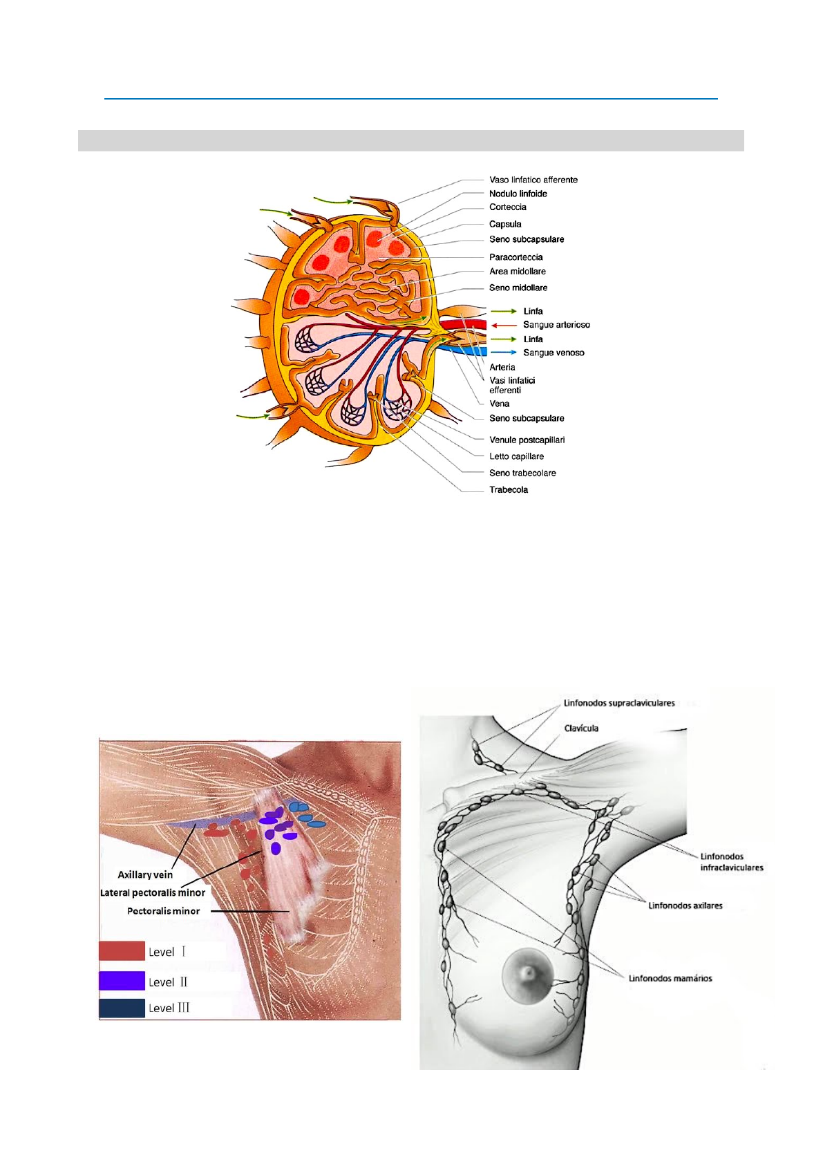 Diagnóstico Diferencial de Linfonodos Axilares Anatomia - A drenagem da porção mamária é predominantemente subcutânea - Os linfonodos são classificados conforme os Níveis de Berg, divididos conforme os músculos peitorais - A drenagem nos gânglios linfáticos ocorrem sempre de forma unilateral - Nas axilas podem ser encontrados os linfonodos axilares e também as massas, sendo necessário estabelecer o diagnóstico diferencial Massa Axilar de Origem Indeterminada - Características Diagnósticas: • Localização: axilar e único • Aspecto: de gânglio, endurecido, ou com pele normal • Tamanho • Evolução: progressão levou meses ou semanas, se é duro ou mole, indolor ou com dor • Idade: pode delimitar se trata-se de um caso de linfonodos aumentados ou neoplasias - Elementos úteis para diagnóstico relativo ao território de drenagem axilar: • Furúnculos, nevus do braço, arranhadura de animais e lesões subungueais • Comprometimento do estado geral, com dor, peso e aumento de temperatura • Exame físico para avaliar territórios de drenagem axilar e sintomas inflamatórios • Fórmula leucocitária, podendo ser Hematosarcoma com polimorfonucleares, monomorfonucleares, linfócitos e eosinófilos • Esfregaço de MO • Prova de função hepática • Trombocitose Diagnósticos Diferenciais - Os principais diagnósticos diferenciais de linfonodos axilares são: • Tumor Não Ganglionar • Linfoadenites Sub-Agudas Crônicas • Metástases Ganglionares de Tumores Sólidos • Linfomas Tumor Não Ganglionar - Benignos: Lipomas, Fibromas e Neurofibromas - Malignos: Rabdomiosarcomas, Fibrosarcoma e Liposarcoma - Tumores de glândulas sudoríparas: Écrinos e Apócrinos - Tumores em fusão: Actinomicose Paracoccidioidomicose - Aneurisma de artéria axilar: não deve ser feita punção Linfadenite Sub Agudas Crônicas - Pós vacina: Varíola é a mais frequente, devendo ser colocado na anamnese - “Rat bite fever”: Streptobacilus monoliformes - Febre Espiralar: Spirilum minor, rash, febre, linfoadenite de evolução rápida - Sífilis Primária: cancro no dedo; Treonema palidum - Pespe bulbônica: frequente nos EUA, causada por roedores domésticos, através da pulga. Apresenta evolução rápida com sepse, coagulação intravascular disseminada, sendo que o acometimento axilar é frequente, com supuração - Tularemia: coelhos e arranhadura , com febre “in grades” - Doença da arranhadura do gato - Sub Agudas Piogênicas: Strepto, Stafilo e Mixto - Infecção Local: normalmente proveniente de dedo e mão - Panafício e Furunculos - Linfangite e Febre - Gânglios duros, vermlehos, com dor, abcesso de instalação rápida - Casos especiais: Sporotrix Schenki; apresentam diagnóstico diferencial com os Nódulos em Rosário, são indolores. - Esporotricose: • Fungo encontrado em plantas • A transmissão ocorre por trauma em espinho de rosas • Há formação de Pústula local, de padrão ascendente de linfadenopatia ulcerosa • Tratamento: Itraconazol ou Iodeto de Potássio - Infecções: • Bartonella hanselae: • Doença da arranhadura do gato • Tratamento com Doxiciclina ou Azitromicina • Francisella tularensis : • Febre do coelho • Transmissão pelo carrapato do coelho • Pode ser aerossolizado, uso em bioterrorismo • Ulcera dolorosa no local da picada • Linfadenopatia regional • Tratamento: Estreptomicina • Infecções de pele por Estafilococcos ou Estrotococcos : • Celulite ou Erisipela • Tratamento: Ceftriaxona, Cefazolina ou Oxacilina / Nafcilina Metástases Ganglionares de Tumores Sólidos de Origem Desconhecida - Os principais tumores que podem fazer metástase na axila são: • Território de drenagem axilar mais frequente: • Mama • Melanoma • Carcinoma Espinocelular • Metástases à distância: • Pulmão • Tireoide • Tumor Digestivo • Ovários • Rim Neoplasias Malignas - Linfomas Hodgkin: • Comumente são bilaterais • Os casos comuns são de: tireoide, pulmão, gastrointestinal, pâncreas • São raros em ovários • Não sofrem metástase • 90% manifestam-se primeiramente nos gânglios linfáticos; Até 80% em gânglios cervicais; 20% nos axilares e 12% nos inguinais • Comuns em Doença de Hodgkin • Apresentam distribuição centrípeta e simétrica (os do tipo Hodgkin Território de drenagem axilar mais frequente) • Acomete primeiro linfáticos periféricos e posteriormente compromete baço, fígado e medula • Evolui para as formas cervical, mediastino, axilar, hilo e ilíaco inguinal • Sintomas: febre, sudorese , dor abdominal pelo aumento do volume das placas de payer, perda de mais de 10% do peso - Linfomas Não Hodgkin: • Distribuição Centrífuga e Assimétrica • Acomete gânglio único, periférico é indolor e endurecido • Apresenta tamanho variável e sem liquefação - Melanoma: • Biópsia de linfonodo sentinela para estadiamento • Bordos irregulares com cores heterogêneas • São lesões assimétricas - Siliconomas Axilares: • Decorre da ruptura e extravasamento de silicone mamário • Mas pode ocorrer também por uso de silicones injetáveis em diferentes porções do corpo Distribuição Linfática das Metástases - Metástases Axilares: • Nível I (abaixo do m. peitoral menor): 91,5% • Nível II (posterior do m. peitoral menor): 62,7% • Nível III (acima do m. peitoral menor): 52,5% • Braquial: 10% • Acromiotoráxicos: 15% • Rotter: 1,7% • Skip metástases: 8% - Metástases Não Axilares: • Mamária interna – 21% • Inter peitoral – 2% • Infra clavicular – 3% • Supraclavicular – 0,4% • Axilar contralateral – 1% Edema - A principal causa de edema nos MMSS é a iatrogenia de remoção de gânglios linfáticos em casos de carcinomas - Nesses casos, é extremamente difícil realizar o tratamento