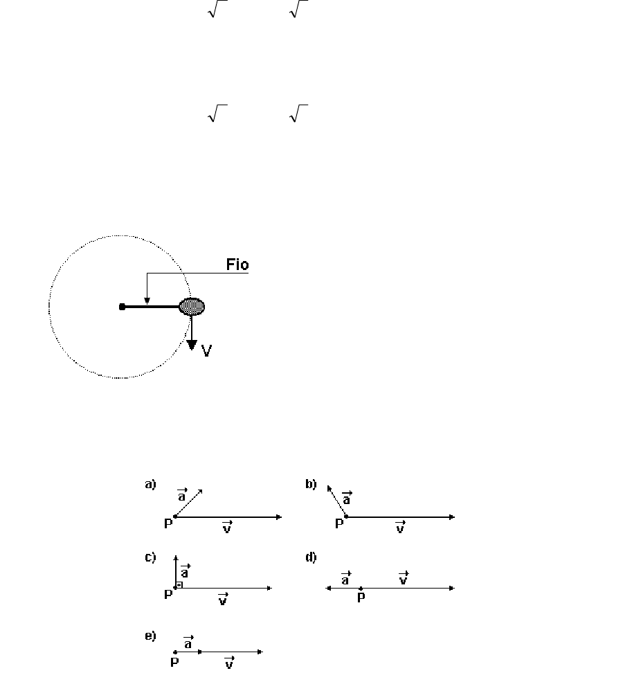 EXERCÍCIOS DE FÍSICA – LISTA 9 PROF. MÁRCIO (Revisão do 1º semestre) O objetivo desses exercícios é fazer uma revisão de alguns tópicos estudados no 1º semestre do curso e relembrar resultados obtidos em alguns exercícios resolvidos. São situações que podem surgir como exercícios em vestibulares e também, em alguns casos, resultados que, se lembrados, podem tornar as resoluções mais rápidas. 1) Duas forças de módulos iguais a F e perpendiculares entre si, agem simultaneamente num mesmo corpo. Qual a intensidade da resultante entre elas? a) zero b) F c) 2F d) F 2 e) F 3 2) Duas forças de módulos iguais a F agem simultaneamente num mesmo corpo fazendo 60° entre si. Qual a intensidade da resultante entre elas? a) zero b) F c) 2F d) F 2 e) F 3 3) (PUCPR-2005) Um corpo gira em torno de um ponto fixo preso por um fio inextensível e apoiado em um plano horizontal sem atrito. Em um determinado momento, o fio se rompe. É correto afirmar: 4) (UFSCAR-2000) Nos esquemas estão representadas a velocidade V r e a aceleração a r do ponto material P. Assinale a alternativa em que o módulo da velocidade desse ponto material permanece constante. a) O corpo passa a descrever uma trajetória retilínea na direção do fio e sentido contrário ao centro da circunferência. b) O corpo passa a descrever uma trajetória retilínea com direção perpendicular ao fio. c) O corpo continua em movimento circular. d) O corpo pára. e) O corpo passa a descrever uma trajetória retilínea na direção do fio e sentido do centro da circunferência. 5) Nos esquemas estão representadas a velocidade V r e a aceleração a r do ponto material P. Assinale a alternativa em que o ponto P está em movimento curvilíneo e retardado. 6) (PUCPR-2005) Complete corretamente a frase a seguir, relativa à primeira lei de Newton: "Quando a força resultante, que atua numa partícula, for nula, então a partícula: a) estará em repouso ou em movimento retilíneo uniforme". b) poderá estar em movimento circular e uniforme". c) terá uma aceleração igual à aceleração da gravidade local". d) estará com uma velocidade que se modifica com o passar do tempo". e) poderá estar em movimento uniformemente retardado". 7) (UEL-2005) Em 21 de junho de 2004, a nave espacial "SpaceShipOne" realizou um fato memorável: foi o primeiro veículo espacial concebido pela iniciativa privada a entrar em órbita em torno da Terra, em uma altura pouco superior a 100 km. Durante o intervalo de tempo em que a nave alcançou sua máxima altitude, e com os motores praticamente desligados, seu piloto abriu um pacote de confeitos de chocolates para vê-los flutuar no interior da nave. Assinale a alternativa que apresenta corretamente a explicação da flutuação dos confeitos. a) A gravidade é praticamente zero na altitude indicada. b) Não há campo gravitacional fora da atmosfera da Terra. c) A força gravitacional da Terra é anulada pela gravidade do Sol e da Lua. d) As propriedades especiais do material de que é feita a nave espacial blindam, em seu interior, o campo gravitacional da Terra. e) Nave e objetos dentro dela estão em "queda livre", simulando uma situação de ausência de gravidade. 8) (UEL-1999) Um observador vê um pêndulo preso ao teto de um vagão e deslocado da vertical como mostra a figura a seguir. Sabendo que o vagão se desloca em trajetória retilínea, ele pode estar se movendo de: 9) Ainda sobre o exercício anterior, considere que na situação descrita o ângulo entre o fio e a vertical seja constante e igual a θ. Desprezando a resistência do ar e considerando que a aceleração local da gravidade seja g, qual a intensidade da aceleração do vagão? a) g b) g.senθ c) g.cosθ d) g.tgθ e) g 2 10) (UNESP-2005) As figuras I e II adiante representam: I - Forças atuando sobre uma partícula de massa m, com velocidade inicial v0 > 0, que pode se deslocar ao longo de um eixo x, em três situações diferentes. II - Gráficos de velocidade e aceleração em função do tempo, associados aos movimentos da partícula. 11) (UNITAU-1995) Analise as afirmações a seguir e assinale a alternativa correta: I - Massa e peso são grandezas proporcionais. II - Massa e peso variam inversamente. III - A massa é uma grandeza escalar e o peso uma grandeza vetorial. a) somente a I é correta. c) I e III são corretas. e) todas são corretas. b) I e II são corretas. d) todas são incorretas. a) A para B, com velocidade constante. b) B para A, com velocidade constante. c) A para B, com sua velocidade diminuindo. d) B para A, com sua velocidade aumentando. e) B para A, com sua velocidade diminuindo. Para cada uma das três situações representadas na figura I, indique o correspondente gráfico de velocidade (A,B ou C) e de aceleração (P,Q ou R) da partícula. 12) Para que um corpo de massa m sofra uma aceleração γ é necessário que fique sujeito a uma resultante de módulo R. Qual será a intensidade da resultante para que um corpo de massa 3m adquira uma aceleração de módulo 4γ? a) R b) 3/4R c) 4/3R d) 7R e) 12R 13) (UERJ-2003) É freqüente observarmos, em espetáculos ao ar livre, pessoas sentarem nos ombros de outras para tentar ver melhor o palco. Suponha que Maria esteja sentada nos ombros de João que, por sua vez, está em pé sobre um banquinho colocado no chão. Com relação à terceira lei de Newton, a reação ao peso de Maria está localizada no: a) chão b) banquinho c) centro da Terra d) ombro de João 14) (UFLAVRAS-2000) Um livro de peso igual a 4 N está apoiado, em repouso, na palma de sua mão. Complete as sentenças abaixo. I. Uma força para baixo de 4 N é exercida sobre o livro pela _____________. II. Uma força para cima de _______________ é exercida sobre o(a) _______________ pela mão. III. A força para cima (item II) é reação à força para baixo (item I)? ___________ a) Mão, 14 N, Terra, Sim. d) Terra, 8 N, Terra, Sim. b) Terra, 4 N, Livro, Sim. e) Terra, 4 N, Livr