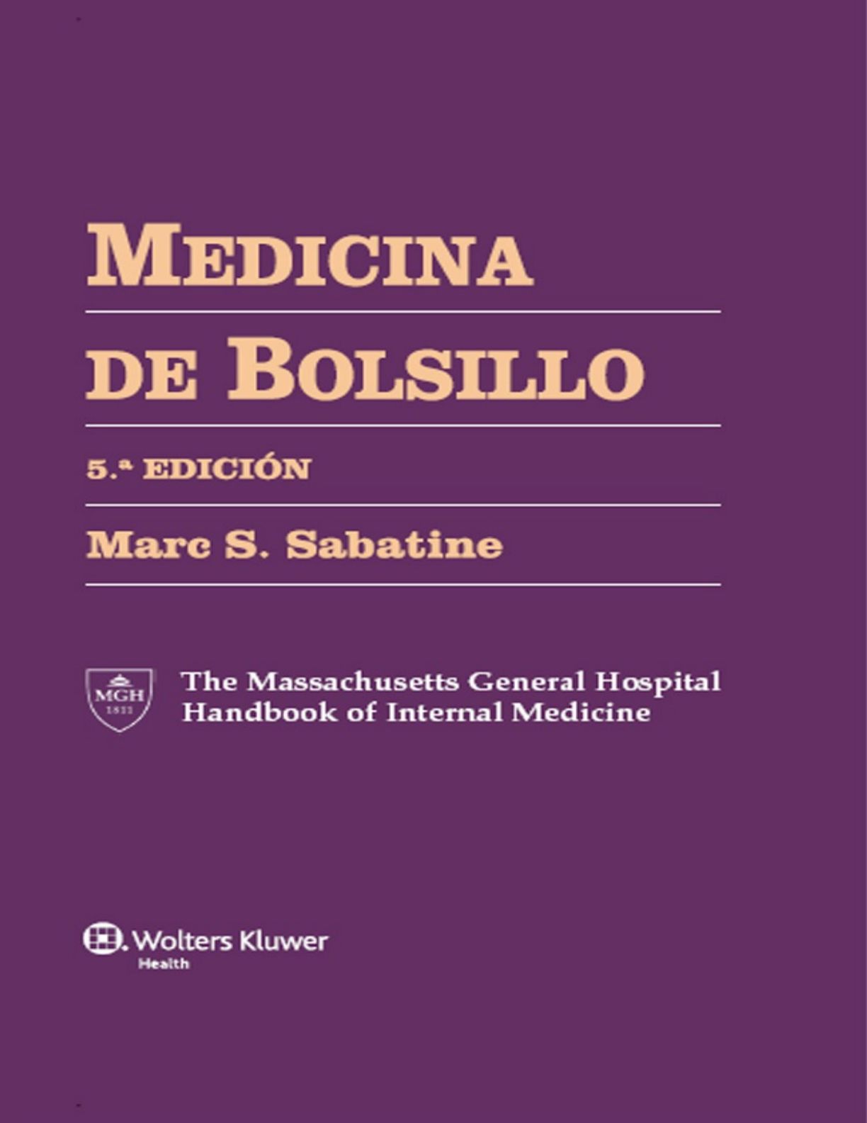 COLAB ORADORES Andrew J. Aguirre, MD, PhD Hematology-Oncology Fellow, Dana-Farber/Partners CancerCare Hematology/Oncology Program Andrew S. Allegretti, MD Internal Medicine Resident, Massachusetts General Hospital Mark M. Awad, MD, PhD Hematology-Ooncology Fellow, Dana-Farber/Partners CancerCare Hematology/Oncology Program Ian J. Barbash, MD Internal Medicine Resident, Massachusetts General Hospital Nesli Basgoz, MD Associate Chief and Clinical Director, Infectious Disease Division, Massachusetts General Hospital Associate Professor of Medicine, Harvard Medical School Hasan Bazari, MD Clinical Director, Nephrology Unit, Massachusetts General Hospital Program Director, Internal Medicine Residency, Massachusetts General Hospital Associate Professor of Medicine, Harvard Medical School Michael P. Bowley, MD, PhD Neurology Resident, Partners Neurology Residency Andrew M. Brunner, MD Internal Medicine Resident, Massachusetts General Hospital Neal A. Chatterjee, MD Internal Medicine Resident, Massachusetts General Hospital Katherine t. Chen, MD, MPH Associate Professor of obstetrics, Gynecology, and Reproductive Science Associate Professor of Medical Education Vice-Chair of ob/Gyn Education, Career Development, and Mentorship Icahn School of Medicine at Mount Sinai, New York Tracey A. Cho, MD Associate Program Director, Partners-Harvard Neurology Residency Assistant Professor of Neurology, Harvard Medical School Assistant Neurologist, Massachusetts General Hospital Andrew S. de Lemos, MD Transplant Hepatology Fellow, Massachusetts General Hospital Daniel J. DeAngelo, MD, PhD Adult Leukemia Program, Dana-Farber Cancer Institute & Brigham and Women’s Hospital Associate Professor of Medicine, Harvard Medical School David M. Dudzinski, MD, JD Cardiology Fellow, Massachusetts General Hospital Robert P. Friday, MD, PhD Attending Physician, Rheumatology Unit, Massachusetts General Hospital Associate Director, Rheumatology Fellowship Program, Massachusetts General Hospital Instructor in Medicine, Harvard Medical School Lawrence S. Friedman, MD Anton R. Fried, MD, Chair, Department of Medicine, Newton-Wellesley Hospital Assistant Chief of Medicine, Massachusetts General Hospital Professor of Medicine, Harvard Medical School Professor of Medicine, Tufts University School of Medicine Todd M. Herrington, MD, PhD Neurology Resident, Partners Neurology Residency Kathryn A. Hibbert, MD Pulmonary and Critical Care Fellow, Harvard Medical School William J. Hucker, MD, PhD Cardiology Fellow, Massachusetts General Hospital Emily P. Hyle, MD Assistant in Medicine, Infectious Disease Division, Massachusetts General Hospital Instructor in Medicine, Harvard Medical School Sheheryar K. Kabraji, BM, Bch Internal Medicine Resident, Massachusetts General Hospital Stella K. Kim, MD Director, Clinical Research in Opthalmology Director, Opthalmology Residency Rotation Program Associate Professor of Opthalmology UT MD Anderson Cancer Center Eyal Y. Kimchi, MD, PhD Neurology Resident, Partners Neurology Residency Kiran H. Lagisetty, MD Surgical Resident, Beth Israel Deaconess Medical Center Kelly B. Lauter, MD, PhD Internal Medicine Resident, Massachusetts General Hospital Andrew L. Lundquist, MD Nephrology Fellow, BWH/MGH Joint Nephrology Fellowship Program Atul Malhotra, MD Associate Physician, Divisions of Pulmonary & Critical Care and Sleep Medicine, Brigham and Women’s Hospital Associate Professor of Medicine, Harvard Medical School Michael Mannstadt, MD Attending Physician, Endocrine Unit, Massachusetts General Hospital Assistant Professor of Medicine, Harvard Medical School Eli Miloslavsky, MD Rheumatology Fellow, Massachusetts General Hospital Michelle O’Donoghue, MD, MPH Investigator, TIMI Study Group and Associate Physician, Cardiovascular Division, Brigham and Women’s Hospital Affiliate Physician, Cardiology Division, Massachusetts General Hospital Assistant Professor of Medicine, Harvard Medical School David P. Ryan, MD Clinical Director, Massachusetts General Hospital Cancer Center Chief of Hematology/Oncology, Massachusetts General Hospital Associate Professor of Medicine, Harvard Medical School Marc S. Sabatine, MD, MPH Chairman, TIMI Study Group and Physician, Cardiovascular Division, Brigham and Women’s Hospital Affiliate Physician, Cardiology Division, Massachusetts General Hospital Associate Professor of Medicine, Harvard Medical School Ada Stefanescu, MD, CM Internal Medicine Resident, Massachusetts General Hospital Jennifer F. Tseng, MD, MPH Chief, Division of Surgical Oncology, Beth Israel Deaconess Medical Center Associate Professor of Surgery, Harvard Medical School Sarah Wahlster, MD Neurology Resident, Partners Neurology Residency Zachary S. Wallace, MD Internal Medicine Resident, Massachusetts General Hospital Ana A. Weil, MD, MPH Internal Medicine Resident, Massachusetts General Hospital Marc N. Wein, MD, PhD Endocrinology Fellow, Massachusetts General Hospital Zachary A. Zator, MD Internal Medicine Resident, Massachusetts General Hospital P RÓLOGO A la primera edición inglesa Tengo el gran placer de presentar la obra Medicina de bolsillo. En esta época de sobreabundancia de información, cabe preguntarse con toda lógica: ¿para qué otro manual dirigido a médicos residentes? Es cierto que, a pesar del gran volumen de información al que se puede acceder consultando numerosos tratados o simplemente pulsando una tecla en el ordenador, muchas veces, el médico, ocupado en el quehacer diario, no dispone de un medio que le proporcione una buena descripción del diagnóstico diferencial y de los distintos tratamientos. Medicina de bolsillo es el fruto del trabajo conjunto de numerosos médicos residentes y profesores universitarios de diversas especialidades médicas. Esta colaboración aporta un abordaje inicial, rápido pero cuidadosamente razonado, de los problemas médicos más frecuentes a los que han de enfrentarse los residentes. Las preguntas que formulan a menudo los médicos de 
