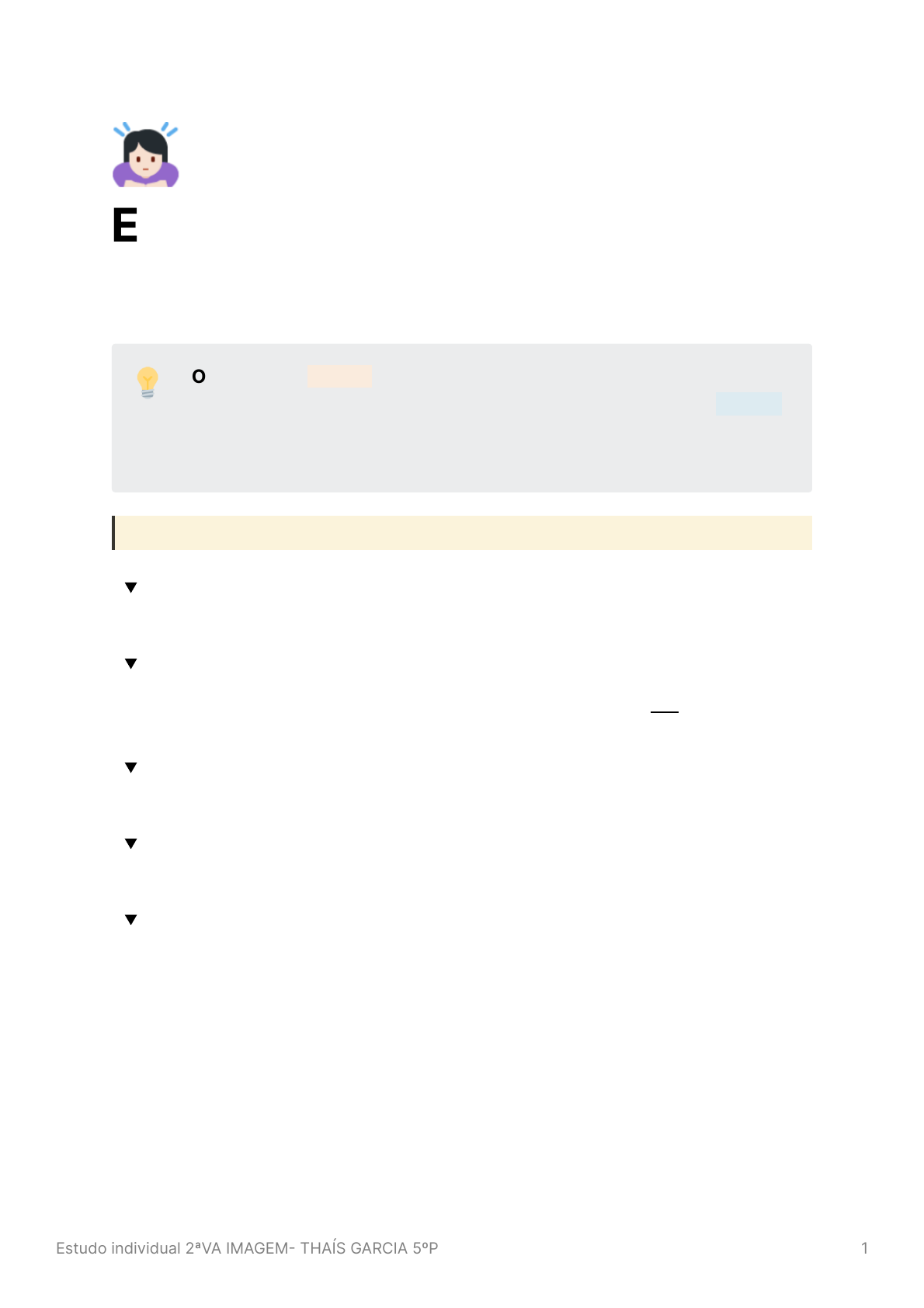 Estudo individual 2ªVA IMAGEM THAÍS GARCIA 5ºP 1 � Estudo individual 2ªVA IMAGEM- THAÍS GARCIA 5ºP 💡 CONTEÚDOS: PEDRO: semiologia radiológica dos ossos e articulações; osteoartrite, artropatias e espondiloartropatias. BRUNO: dx por imagem do abdome; rastreamento e dx por imagem das mamas. SEMIOLOGIA RADIOLÓGICA DE OSSOS E ARTICULAÇÕES Qual o nome da estrutura que separa a epífise da metáfise? PLACA DE CRESCIMENTO/EPIFISÁRIA O que fica dentro do osso esponjoso? A MO, que pode ser vermelha, se tecido hematopoiético, OU amarela, se tecido adiposo (fica dentro do canal medular). Quais são as principais áreas hematopoiéticas no adulto? Epífise de ossos longos; Ossos do crânio; Crista ilíaca; Costelas Qual método de imagem consegue separar os dois tipos de MO? RM Quais os componentes de uma articulação sinovial? Estudo individual 2ªVA IMAGEM THAÍS GARCIA 5ºP 2 Como um músculo é visto na USG? Epimísio → linha hiperecogênica (fundido à fáscia) Fascículos → feixes hipoecóicos Perimísio → linhas hiperecóicas dentro do fascículo Estudo individual 2ªVA IMAGEM THAÍS GARCIA 5ºP 3 Como vemos uma lesão de músculo na USG e na RM? 1ª imagem-USG Descontinuação das fibras musculares representada por uma área escura → HEMATOMA ANECÓICO 2ª imagem-RM mesma lesão do mesmo pcte → HEMATOMA HIPERSSINAL Quais são os métodos usados para avaliar o sistema músculo-esquelético? Radiografia: boa p/ doenças articulares + avançadas, fraturas e tumores ósseos, porém, é limitada para avaliar partes moles (cartilagens, ligamentos, musculos e tendões). TC: boa p/ avaliação de fraturas e tumores ósseos e limitada para avaliar partes moles. USG: bom p/ avaliar partes moles e derrame articular (ex.: tenossinovite= aumenta vascularização). RM: bom p/ para avaliar ossos, articulações, ligamentos, meniscos, cartilagens articulares, músculos e tendões, tumores, alterações da MO, lesões inflamatórias, infecções, malformações e lesões traumáticas. Medicina nuclear: cintilografia (pesquisa metástase) e PET O que vc observa na seguinte imagem? Qual o método usado? MÉTODO radiografia convencional AP (corte coronal) Vemos o joelho E e os ossos correspondentes. Na região medial das partes moles, temos uma bolinha hiperdensa, que corresponde a metal (pcte relata que é um chumbinho). Para avaliar melhor essa estrutura, pedimos uma Estudo individual 2ªVA IMAGEM THAÍS GARCIA 5ºP 4 incidência perpendicular a essa, a de perfil (anterior ao fêmur e superior a patela). Pq a incidência em perfil na mão e no pé não é tão recomendada? Pq temos muita superposição das estruturas (difícil de ver fratura). Qual a melhor incidência usada, além da AP, para avaliar fraturas ósseas na mão e no pé? É incidência oblíqua: Estudo individual 2ªVA IMAGEM THAÍS GARCIA 5ºP 5 Qual a melhor incidência para avaliar a articulação atlantoaxial (entre C1 e C2? INCIDÊNCIA TRANSORAL: feita através da boca aberta (para não ter superposição dos dentes) Quais são os parâmetros a serem avaliados nas imagens? Partes moles: pele, músculos.. Densidade óssea: se está ↑ ou ↓ Integridade da cortical: deve se estender de maneira contínua Trabeculado medulado: aspecto habitual ou rarefeito Articulações: presença de estruturas anormais. O que vc observa na seguinte imagem? Radiografia do pé com uma grande massa de partes moles no hálux e destruição óssea → TOFO GOTOSO (acúmulo de cristais de ácido úrico em partes moles) Estudo individual 2ªVA IMAGEM THAÍS GARCIA 5ºP 6 O que vc observa na seguinte imagem? Mão de uma criança → Ossos íntegros e partes moles com alteração na parte medial com pequenas calcificações (pequenos trombos calcificados no interior do tumor) → HEMANGIOMA ÓSSEO O que vc observa na seguinte imagem? Corpo estranho metálico (densidade maior que a do osso) localizado na falange distal na face medial do 3º dedo Estudo individual 2ªVA IMAGEM THAÍS GARCIA 5ºP 7 O que vc observa na seguinte imagem? CONDROCALCINOSE (calcificação da cartilagem) → calcificação do menisco medial. NÃO é o nome de uma doença, mas ela pode estar presente em uma doença por deposição de cristais de pirofosfato de Ca2 → PSEUDOGOTA O que vc observa na seguinte imagem? Calcificação de partes moles no ombro (tendão supraespinhal) → Deposição de cristais de hidroxiapatita Estudo individual 2ªVA IMAGEM THAÍS GARCIA 5ºP 8 Qual o melhor exame para avaliar a densidade óssea? DENSITOMETRIA ÓSSEA - Geralmente, de rotina, avaliamos a coluna vertebral L1 a L4 e o fêmur (colo) TSCORE: comparado ao grupo controle (jovens) ZSCORE: comparada com indivíduos da mesma faixa etária O que vemos de anormalidade no úmero abaixo? Cortical com aspescto anormal, heterogênea + Trabécula medular também alterada, com heterogeneidade Estudo individual 2ªVA IMAGEM THAÍS GARCIA 5ºP 9 Como é visto o espaço articular na radiografia? Na verdade ele NÃO existe, pois é um espaço virtual ocupada pela cartilagem articular dos ossos Qual a diferença de uma mão normal de uma mão de pcte com artrite reumatoide (acentuada redução dos espaços articulares)? A redução do espaço articular nos diz que houve uma REDUÇÃO DA CARTILAGEM ARTICULAR. Estudo individual 2ªVA IMAGEM THAÍS GARCIA 5ºP 10 Ao contrário da radiografia, em qual método de imagem conseguimos visualizar a cartilagem articular? RM → abaixo uma anormalidade do lado da articulação lateral fêmur-tibial. A área com hiperssinal significa acúmulo de líquido intrarticular/sinovial devido à ausência da cartilagem hialina. Só vemos esse liquido pq o pcte fez o exame deitado, pq se estivesse de pé, provavelmente não veríamos. Qual a possível doença associada ao resultado da imagem a seguir? ARTRITE REUMATOIDE DE LONGA DATA - redução difusa do espaço articular e simétrica Estudo individual 2ªVA IMAGEM THAÍS GARCIA 5ºP 11 O que a imagem abaixo 