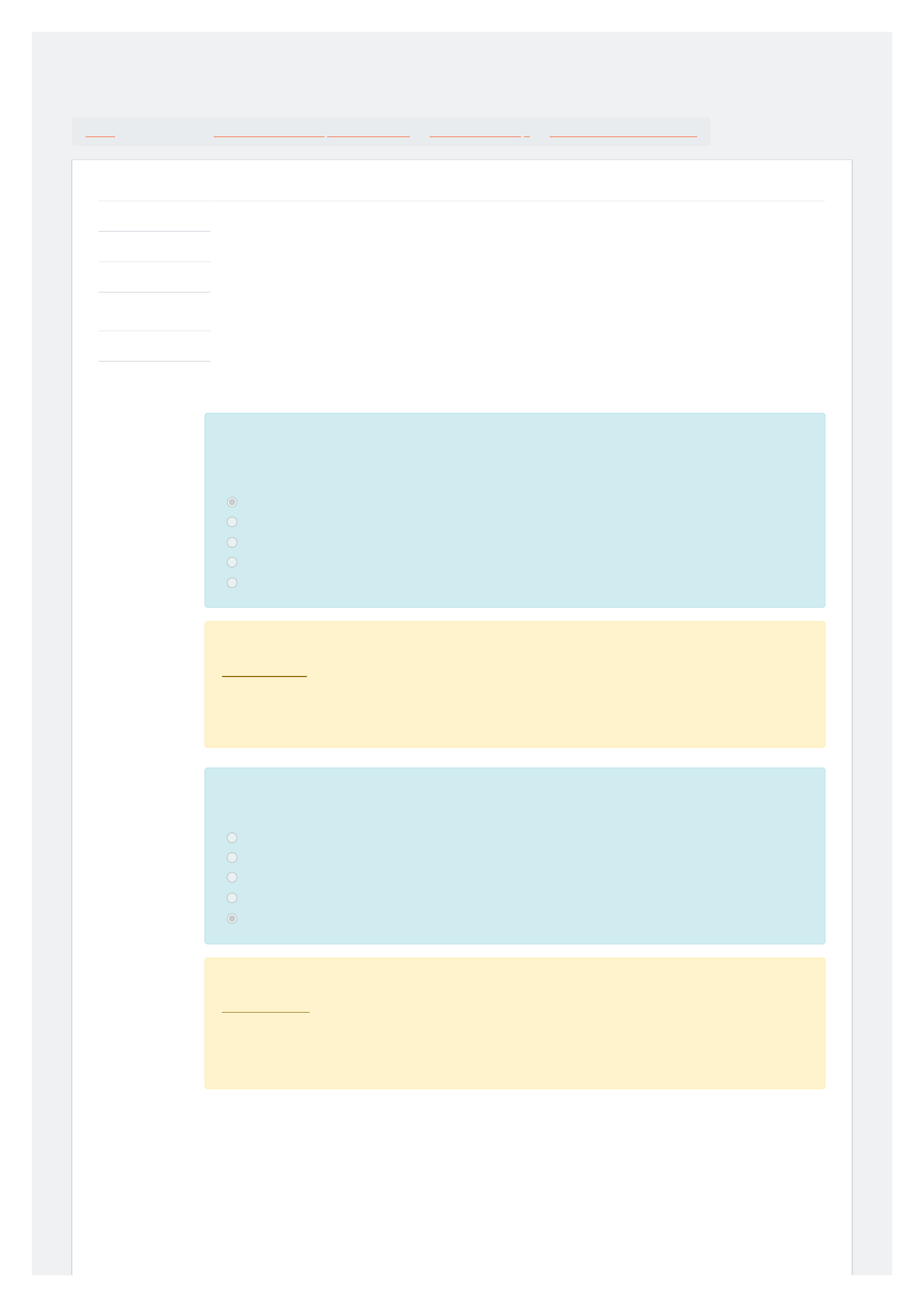 06/06/2022 17:03 Exercício avaliativo - Módulo 3: Revisão da tentativa https://mooc38.escolavirtual.gov.br/mod/quiz/review.php?attempt=5283542&cmid=104882 1/4 Painel / Meus cursos / Habilidades de Resolução de Problemas / Módulo 3: Liderança / Exercício avaliativo - Módulo 3 Questão 1 Incorreto Atingiu 0,00 de 1,00 Questão 2 Correto Atingiu 1,00 de 1,00 Iniciado em segunda, 6 jun 2022, 17:00 Estado Finalizada Concluída em segunda, 6 jun 2022, 17:03 Tempo empregado 3 minutos 21 segundos Notas 7,75/9,00 Avaliar 13,78 de um máximo de 16,00(86%) As seis práticas de liderança prática são: Escolha uma opção: a. Pioneirismo, aperfeiçoamento, incentivar, desafiar, encorajar e mudar. b. Liderar, inspirar, incentivar, mudar, encorajar e apreciar. c. Perseverar, inspirar, permutar, desafiar, apreciar e incentivar. d. Pioneirismo, inspirar, incentivar, desafiar, empoderar e apreciar. e. Liderar, inspirar, incentivar, desafiar, encorajar e apreciar. Sua resposta está incorreta. Gabarito: letra d. Essas seis práticas – pioneirismo, inspirar, incentivar, desafiar, empoderar e apreciar – proporcionam uma excelente liderança e são princípios de grande aprendizagem. O engajamento pro-ativo e proposital nestes comportamentos levará a uma liderança exemplar. As maneiras de liderar através do exemplo são: Escolha uma opção: a. Assuma a responsabilidade. b. Reconheça os fracassos e sucessos. c. Ser parte da solução. d. Seguir suas próprias regras. e. Todos os itens anteriores. Sua resposta está correta. Gabarito: letra e. As maneiras de ser pioneiro ou liderar através do exemplo consistem em andar em sintonia com o que você fala. Para mais informações, veja o vídeo novamente. Além disso, consulte a lista de checagem para outras sugestões práticas. https://mooc38.escolavirtual.gov.br/my/ https://mooc38.escolavirtual.gov.br/course/view.php?id=5483 https://mooc38.escolavirtual.gov.br/course/view.php?id=5483#section-3 https://mooc38.escolavirtual.gov.br/mod/quiz/view.php?id=104882 06/06/2022 17:03 Exercício avaliativo - Módulo 3: Revisão da tentativa https://mooc38.escolavirtual.gov.br/mod/quiz/review.php?attempt=5283542&cmid=104882 2/4 Questão 3 Correto Atingiu 1,00 de 1,00 Questão 4 Parcialmente correto Atingiu 0,75 de 1,00 Questão 5 Correto Atingiu 1,00 de 1,00 Quando você inspira, as seguintes coisas acontecem: Escolha uma opção: a. Você ajuda os outros a verem seus pontos fortes. b. Você ajuda a equipe a ser mais reativa. c. Você ajuda a equipe a ser mais proativa. d. Apenas A e B. e. Apenas A e C. Sua resposta está correta. Gabarito: letra e. Quando você inspira, encoraja-se a equipe a ser mais proativa enquanto você ajuda cada indivíduo a ver seus próprios pontos fortes. Um líder inspiracional incentiva os outros a: Selecione todas aquelas que se aplicam. Escolha uma ou mais: a. Escutar ativamente diversos pontos de vista. b. Criar equipes e relações cooperativas. c. Envolver as pessoas em decisões que afetam diretamente seu desempenho profissional. d. Não dar liberdade às pessoas na forma como trabalham. e. Garantir que as pessoas cresçam em seus empregos. Sua resposta está parcialmente correta. Você selecionou corretamente 3. Gabarito: letras a, b, c, e. Os líderes precisam permitir que as pessoas tenham liberdade para decidir como fazem seu trabalho. Esta autonomia é importante para permitir o sucesso dos outros. Portanto, a alternativa D está incorreta. Celebrar vitórias e valores cria um senso comum de realização e reforça os valores da organização. Escolha uma opção: Verdadeiro Falso Gabarito: Verdadeiro. Esta é uma das maneiras pelas quais um líder pode apreciar os funcionários. 06/06/2022 17:03 Exercício avaliativo - Módulo 3: Revisão da tentativa https://mooc38.escolavirtual.gov.br/mod/quiz/review.php?attempt=5283542&cmid=104882 3/4 Questão 6 Correto Atingiu 1,00 de 1,00 Questão 7 Correto Atingiu 1,00 de 1,00 Questão 8 Correto Atingiu 1,00 de 1,00 Os dois principais tipos de competências são: Escolha uma opção: a. Pessoal e profissional. b. Individual e grupo. c. Individual e profissional. d. Negócios e executivo. e. Pessoal e executivo. Sua resposta está correta. Gabarito: letra e. Competências pessoais e executivas. Existem cinco competências pessoais e duas competências executivas principais. As cinco competências pessoais são: Escolha uma opção: a. Curiosidade inteligente, conscientização, empatia, motivação e tomada de riscos. b. Inteligência, autoconsciência, habilidades sociais, motivação e integridade. c. Curiosidade intelectual, consciência social, soft skills, motivação e integridade. d. Curiosidade intelectual, autoconsciência, empatia, motivação e integridade. e. Inteligência, consciência social, autenticidade, motivação e integridade Sua resposta está correta. Gabarito: letra d. Curiosidade intelectual, autoconsciência, empatia, motivação e integridade são as 5 competências pessoais. Essas são as competências que permitem que uma pessoa atue em uma variedade de situações e são essenciais para o sucesso pessoal. As competências executivas são: Escolha uma opção: a. Assumir riscos e consciência de riscos. b. Construção de relações e consciência de riscos. c. Construção de relações e assumir riscos. d. Pensamento racional e assumir riscos. e. Pensamento racional e consciência de riscos. Sua resposta está correta. Gabarito: letra c. Construção de relações e assumir riscos são as duas principais competências executivas. Elas se referem às habilidades necessárias aos indivíduos para se destacarem em uma organização. 06/06/2022 17:03 Exercício avaliativo - Módulo 3: Revisão da tentativa https://mooc38.escolavirtual.gov.br/mod/quiz/review.php?attempt=5283542&cmid=104882 4/4 Questão 9 Correto Atingiu 1,00 de 1,00 A construção de relações contém as seguintes competências menores: Escolha uma opção: a. Energização, negoci