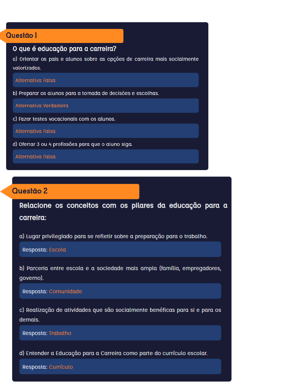 Curso Processos de Orientação Educacional e Profissional com respostas corretas de todas as unidades 1 a 6 Complete o texto arrastando e soltando as palavras: te stando e soltando as palavras: desenvolvimento de as competências socioemocionais.