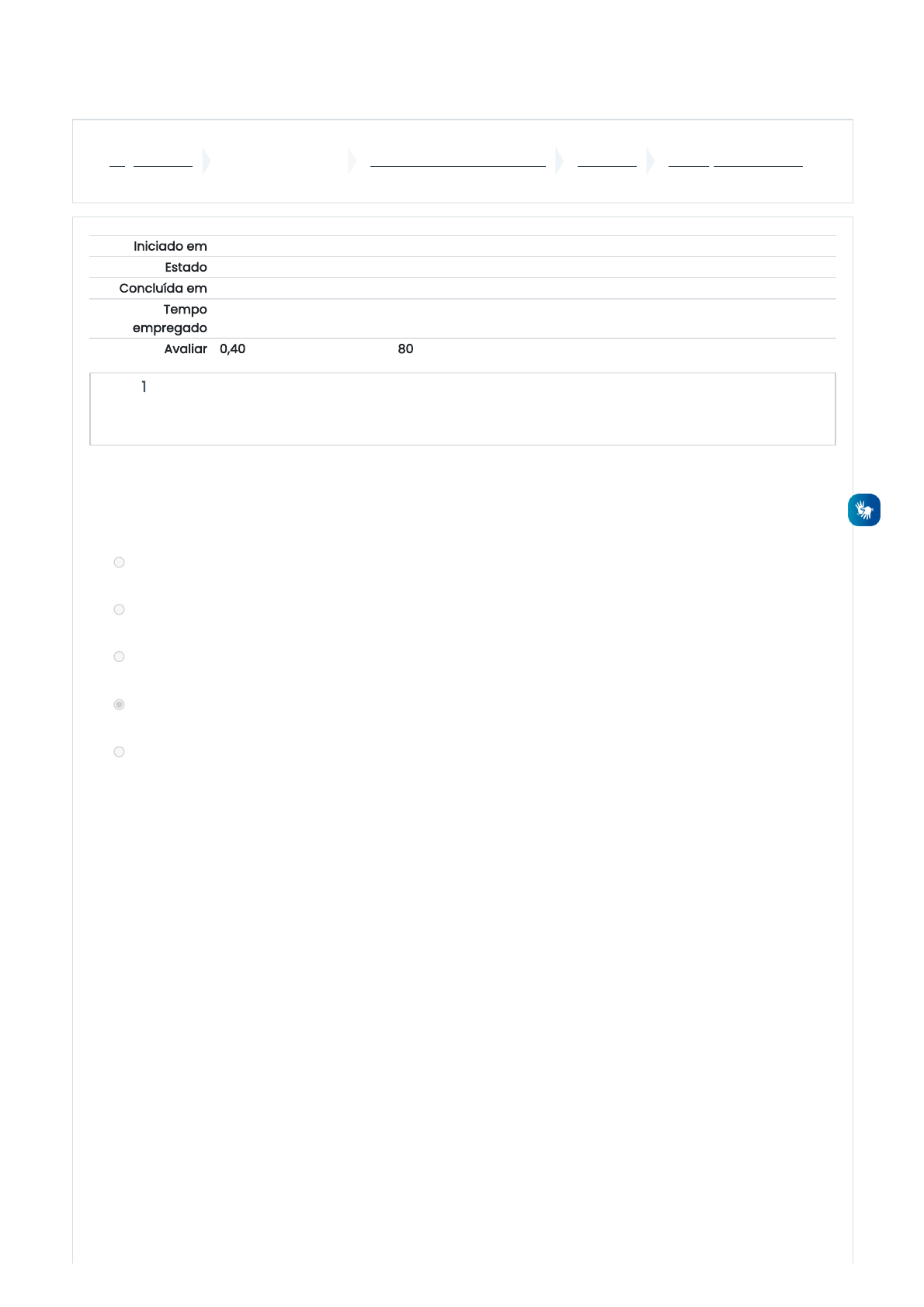 01/07/2022 14:00 Avaliação - Unidade I: Revisão da tentativa https://ambienteonline.uninga.br/mod/quiz/review.php?attempt=1427102&cmid=303330 1/6 Página inicial Minhas disciplinas 2022/2 - Anatomia Humana UNIDADE I Avaliação - Unidade I Iniciado em sexta, 1 jul 2022, 13:53 Estado Finalizada Concluída em sexta, 1 jul 2022, 13:59 Tempo empregado 5 minutos 59 segundos Avaliar 0,40 de um máximo de 0,50(80%) Questão 1 Completo Atingiu 0,05 de 0,05 A osteoartrite é caracterizada por uma perda progressiva da cartilagem articular e pela incapacidade de reparo. É comum afetar os pés, coluna vertebral, quadril e as mãos. Considerando os locais mais frequentes desta alteração, assinale a alternativa correta. a. Na articulação entre os corpos de vértebras há um disco de cartilagem fibrosa, e com o comprometimento deixado pela osteoartrite o indivíduo apresenta perda funcional na articulação sinovial envolvida. b. Na coluna cervical é comum o aparecimento de osteoartrite, o indivíduo perde a mobilidade do pescoço, pois a sínfise intervertebral foi alterada. c. Caso a alteração atinja a cartilagem articular entre os ossos carpais, o indivíduo pode perder o movimento do tornozelo. d. Alterações na cartilagem articular do quadril comprometem o movimento do membro inferior. Neste caso, o tipo de articulação afetada é sinovial e apresenta nexos (ligamentos). e. Caso a osteoartrite afete as articulações das mãos e dos pés, é possível que a articulação do tipo sindesmose perca a mobilidade. A resposta correta é: Alterações na cartilagem articular do quadril comprometem o movimento do membro inferior. Neste caso, o tipo de articulação afetada é sinovial e apresenta nexos (ligamentos). https://ambienteonline.uninga.br/ https://ambienteonline.uninga.br/course/view.php?id=12363 https://ambienteonline.uninga.br/course/view.php?id=12363§ion=4 https://ambienteonline.uninga.br/mod/quiz/view.php?id=303330 01/07/2022 14:00 Avaliação - Unidade I: Revisão da tentativa https://ambienteonline.uninga.br/mod/quiz/review.php?attempt=1427102&cmid=303330 2/6 Questão 2 Completo Atingiu 0,05 de 0,05 Questão 3 Completo Atingiu 0,05 de 0,05 Acadêmicos da área da saúde prestam trabalho voluntário junto ao Programa de Ajuda às Famílias Carentes de Maringá. Em uma das visitas observaram que uma criança de três meses era desnutrida, apresentava fenda palatina e não havia fechamento da comunicação da cavidade oral com a cavidade nasal. Essa alteração no palato trata-se de uma variação anatômica? Pode-se afirmar, que: a. Não, essa alteração anatômica gera prejuízos funcionais, portanto é uma condição anormal. b. Não, esse tipo de alteração gera complicações e por isso é um caso de monstruosidade. c. Sim, trata-se de variação anatômica, pois a alteração representa uma assimetria. d. Sim, pois a variação não causa prejuízos ao organismo. e. Sim, toda e qualquer variação pode aparecer e ser corrigida. A resposta correta é: Não, essa alteração anatômica gera prejuízos funcionais, portanto é uma condição anormal. As articulações fibrosas são caracterizadas pela: I. Presença de cartilagem fibrosa. II. Subdivisão em sutura, sindesmose e gonfose. III. União de todos os ossos da cabeça. É correto o que se afirma em: a. Apenas III. b. II e III. c. Apenas I d. I e II. e. Apenas II. A resposta correta é: Apenas II. 01/07/2022 14:00 Avaliação - Unidade I: Revisão da tentativa https://ambienteonline.uninga.br/mod/quiz/review.php?attempt=1427102&cmid=303330 3/6 Questão 4 Completo Atingiu 0,05 de 0,05 Questão 5 Completo Atingiu 0,05 de 0,05 Questão 6 Completo Atingiu 0,05 de 0,05 As descrições anatômicas devem ser expressadas com base na posição anatômica. Para estudar a anatomia do corpo é necessário compreender os planos de secção corporal. Assinale a alternativa que divide ou separa a face anterior da face posterior. a. Plano oblíquo. b. Plano transversal. c. Plano horizontal. d. Plano sagital. e. Plano frontal. A resposta correta é: Plano frontal. Baseado no estudo da anatomia humana e respeitando a terminologia oficial, qual região do corpo compõe a pelve óssea? a. Cavidade pélvica. b. Quadril. c. Bacia. d. Cíngulo escapular. e. Lombar. A resposta correta é: Quadril. Integrando os conhecimentos de introdução ao estudo da anatomia humana e sistema esquelético, é correto afirmar que: a. O fêmur é considerado o maior osso longo do corpo e está localizado na coxa. b. Nenhuma das alternativas está correta. c. A coluna vertebral representa o eixo dorsal do corpo e compõe somente o tronco. d. A maxila é um osso pneumático, localizado na face e pertence ao neurocrânio. e. Um exemplo de osso plano encontrado no esqueleto axial é a escápula. Este osso representa a parte radicular fixa ao tronco. A resposta correta é: O fêmur é considerado o maior osso longo do corpo e está localizado na coxa. 01/07/2022 14:00 Avaliação - Unidade I: Revisão da tentativa https://ambienteonline.uninga.br/mod/quiz/review.php?attempt=1427102&cmid=303330 4/6 Questão 7 Completo Atingiu 0,00 de 0,05 Questão 8 Completo Atingiu 0,05 de 0,05 Na organização do músculo observa-se envoltórios de tecido conjuntivo. Qual estrutura o perimísio envolve? a. Cada fibra muscular. b. O ventre muscular. c. Cada feixe muscular. d. O tendão de origem. e. Substância compacta. A resposta correta é: Cada feixe muscular. O aparelho Locomotor é formado por três sistemas para realizar a movimentação corporal. Analise as afirmativas a seguir: I. O componente ativo do aparelho locomotor é o sistema nervoso, pois controla e coordena todas as funções corporais. II. As articulações unem os ossos para formar o esqueleto e auxiliam ativamente os outros componentes do aparelho locomotor durante a locomoção. III. O sistema muscular é o único componente ativo da locomoção, pois apresenta capacidade de contração muscular. IV. Os 20
