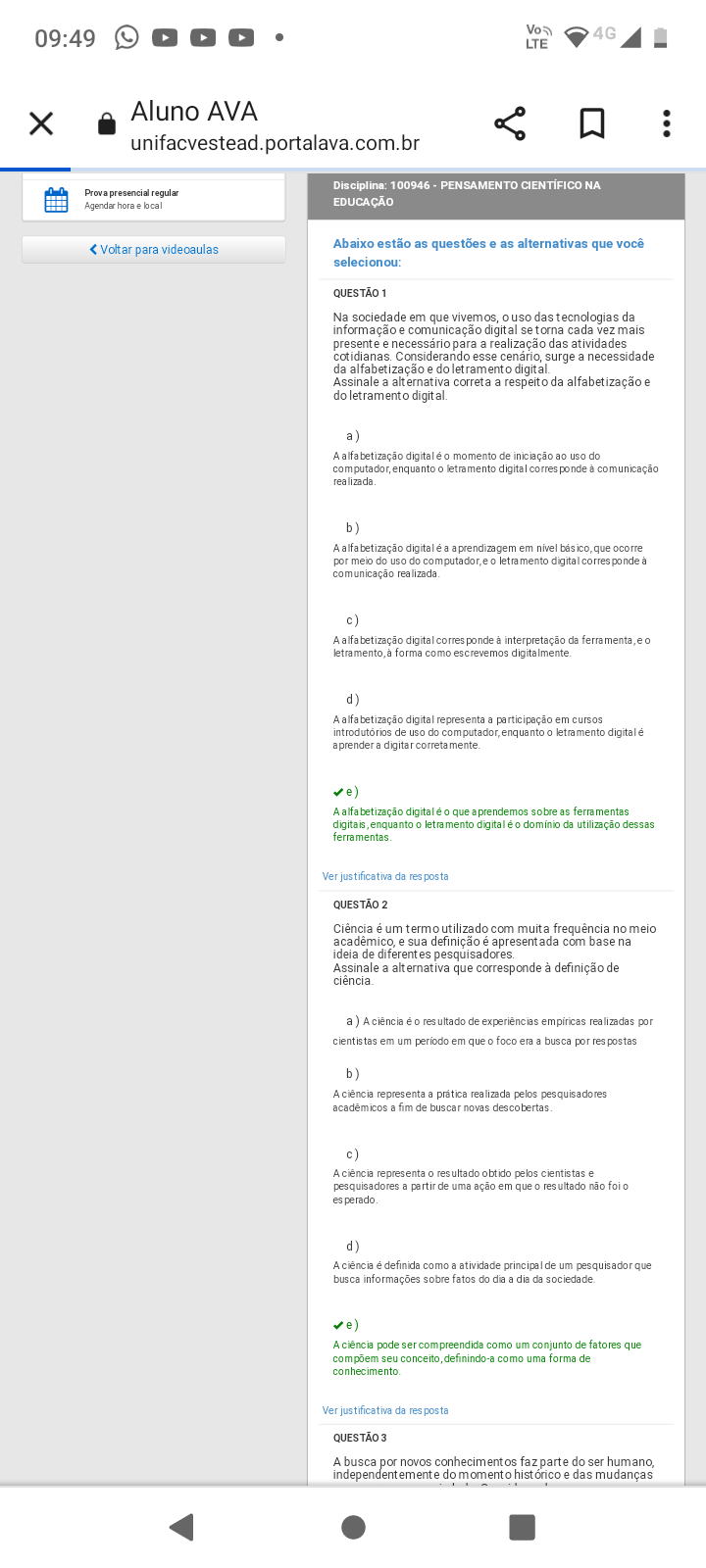 Ciência é um termo utilizado com muita frequência no meio acadêmico, e sua definição é apresentada com base na ideia de diferentes pesquisadores. Assinale a alternativa que corresponde à definição de ciência. a) A ciência é o resultado de experiências realizadas por cientistas em um contexto em que o foco era a busca por respostas. b) A ciência representa a prática realizada pelos pesquisadores acadêmicos a fim de buscar novas descobertas. c) A ciência representa o resultado obtido pelos cientistas e pesquisadores a partir de uma ação em que o resultado não foi o esperado. d) A ciência é definida como a atividade principal de um pesquisador que busca informações sobre fatos do dia a dia da sociedade. e) A ciência pode ser compreendida como um conjunto de fatores que compõem seu conceito, definindo-a como uma forma de conhecimento.