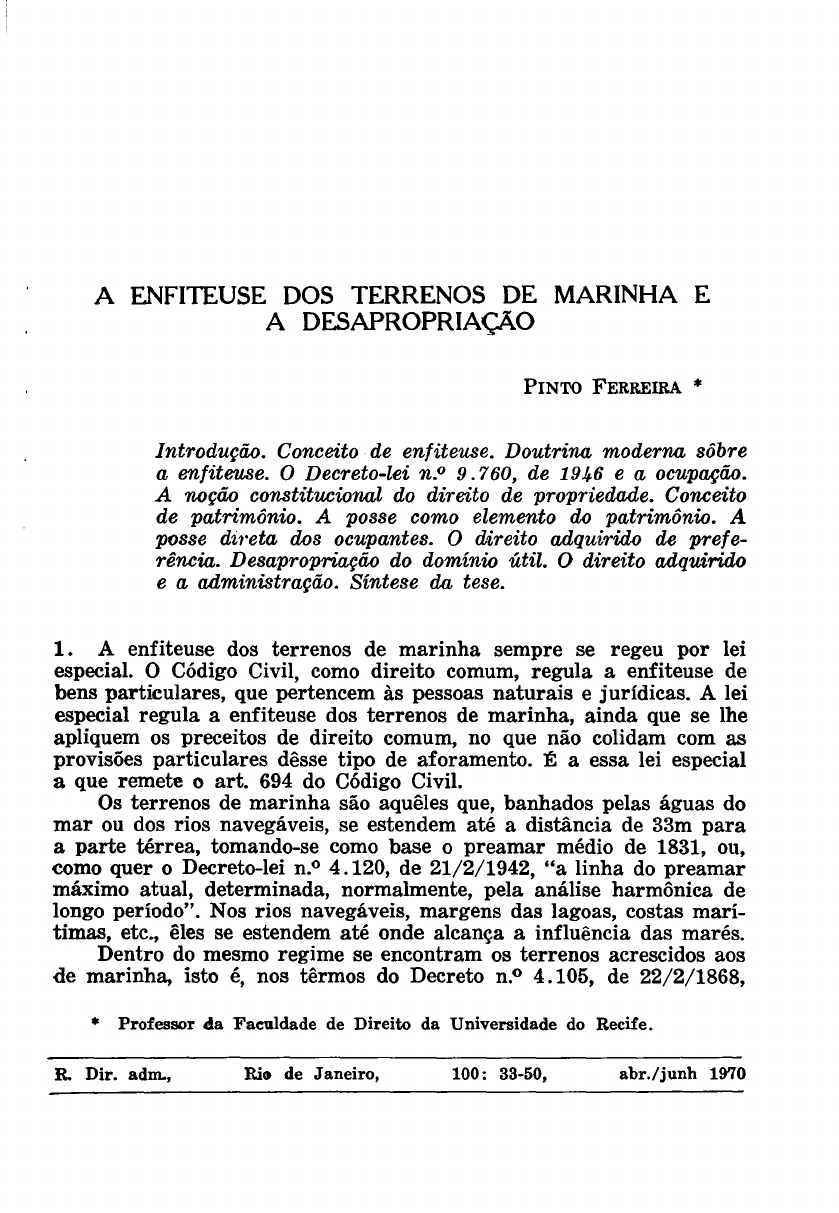 R. Dir. adm., RiG de Janeiro, 100: 33-50, abr./junh 1970