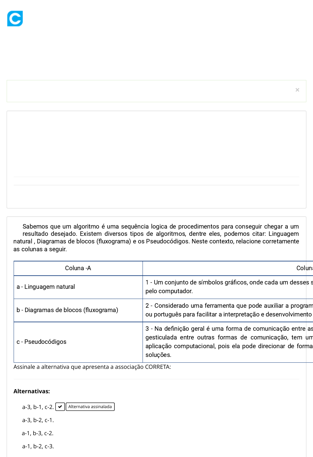 natural , Diagramas de blocos (fluxograma) e os Pseudocódigos. Neste contexto, relacione corretamente