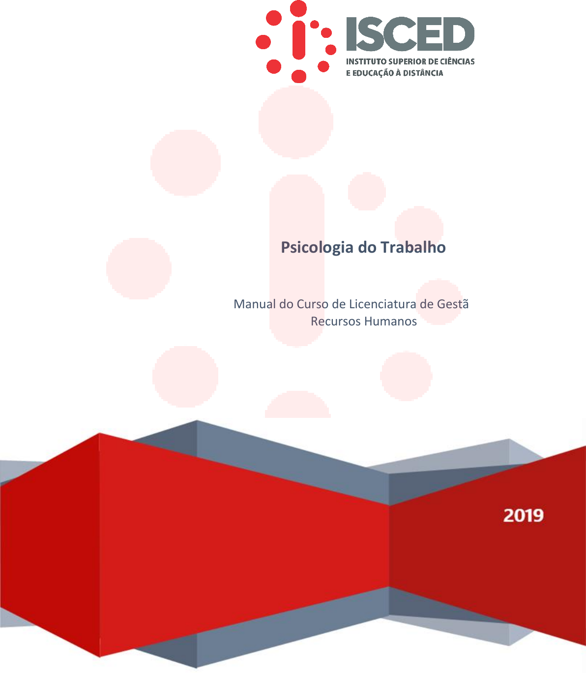 1 Psicologia do Trabalho Manual do Curso de Licenciatura de Gestão de Recursos Humanos ENSINO ONLINE. ENSINO COM FUTURO 2 Direitos de autor (copyright) Este manual é propriedade do Instituto Superior de Ciências e Educação a Distância (ISCED), e contêm reservados todos os direitos. É proibida a duplicação ou reprodução parcial ou total deste manual, sob quaisquer formas ou por quaisquer meios (electrónicos, mecânico, gravação, fotocópia ou outros), sem permissão expressa de entidade editora (Instituto Superior de Ciências e Educação a Distância (ISCED). A não observância do acima estipulado, o infractor é passível a aplicação de processos judiciais em vigor no País. 3 Instituto Superior de Ciências e Educação a Distância (ISCED) Direcção Rua Dr. Almeida Lacerda, No 212 Ponta - Gêa Académica Beira Telefone: +258 23 323501 Cel: +258 82 3055839 Moçambique Fax: 23323501 E-mail: Website: www.isced.ac.mz isced@isced.ac.mz Agradecimentos O Instituto Superior de Ciências e Educação a Distância (ISCED) agradece a colaboração dos seguintes indivíduos e instituições na elaboração deste manual: Autor Celso Velemo Jossias Miambo Coordenação Direcção Académica do ISCED Design Instituto Superior de Ciências e Educação a Distância (ISCED) Financiamento e Logística Instituto Africano de Promoção da Educação a Distancia Revisão Científica (IAPED) Revisão Linguística XXXXX Ano de Publicação XXXXX Local de Publicação ISCED – BEIRA XXXXX 4 VISÃO GERAL ................................................................................................................................................. 8 Benvindo à Disciplina/Módulo de Psicologia do Trabalho ....................................................................... 8 Propósito central do Módulo ................................................................................................................ 8 Objectivos ............................................................................................................................................. 8 Quem deveria estudar este módulo ......................................................................................................... 9 Como está estruturado este módulo ........................................................................................................ 9 Páginas introdutórias ............................................................................................................................ 9 Conteúdo desta Disciplina / módulo ................................................................................................... 10 Outros recursos ................................................................................................................................... 10 AUTO-AVALIAÇÃO E TAREFAS DE AVALIAÇÃO ........................................................................................ 10 Comentários e sugestões ........................................................................................................................ 11 Ícones de actividade ............................................................................................................................... 11 Habilidades de estudo............................................................................................................................. 11 Precisa de apoio? .................................................................................................................................... 14 Tarefas (avaliação e auto - avaliação) ..................................................................................................... 14 Avaliação ................................................................................................................................................. 15 CONSIDERAÇÕES GERAIS DA DISCIPLINA – CONTEXTUALIZAÇÃO .............................................................. 16 INTRODUÇÃO .............................................................................................................................................. 17 Tema 1 ........................................................................................................................................................ 18 O conceito de trabalho e trabalhador ........................................................................................................ 18 Unidade Temática 1.1 Trabalho .............................................................................................................. 19 Unidade Temática 1.2 Trabalhador ........................................................................................................ 22 Resumo ................................................................................................................................................... 24 Exercício de Avaliação ............................................................................................................................. 25 Exercicios de auto-avaliação ................................................................................................................... 26 Referências Bibliográficas ....................................................................................................................... 27 Tema 2 ........................................................................................................................................................ 28 O Campo da Psicologia do Trabalho ........................................................................................................... 28 Unidade Temática 2.1 Campo da Psicologia do Trabalho ....................................................................... 29 Unidade Temática 2.2 A emergência da psicologia do trabalho ............................................................ 31 Unidade Temática 2.3 Psicologia do trabalho e a psicolog