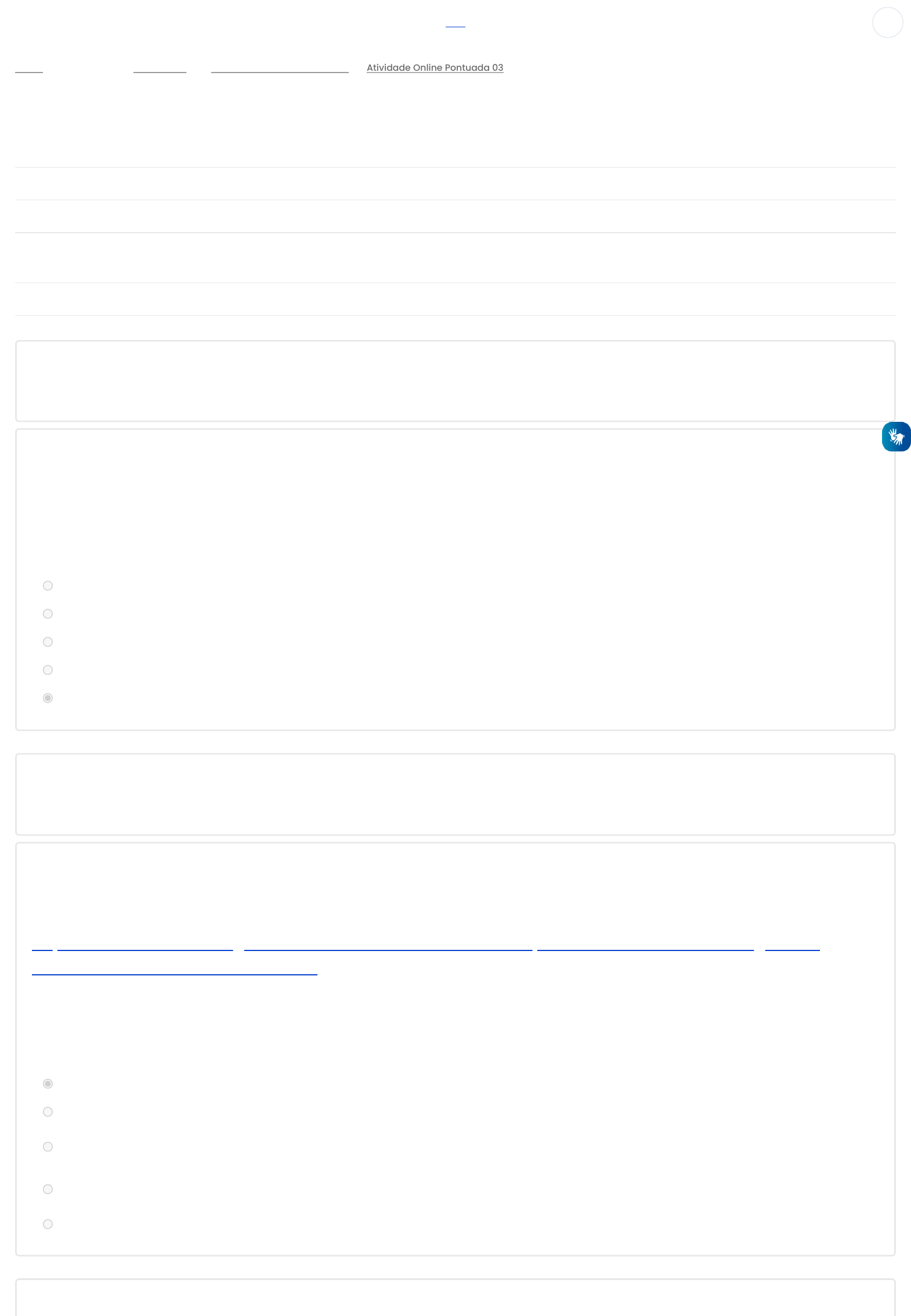 - Meus cursos - - - Painel mkt_marDig Atividades Pontuadas e Prova Atividade Online Pontuada 03 Iniciado em terça, 24 mai 2022, 13:56 Estado Finalizada Concluída em terça, 24 mai 2022, 14:08 Tempo empregado 11 minutos 39 segundos Avaliar 1,00 de um máximo de 1,00(100%) Questão 1 Completo Atingiu 0,20 de 0,20 O monitoramento das campanhas de um e-commerce é constante, bem como todos os seus processos de marketing digital. Ajustes em tempo real, análises diárias (ou numa frequência até maior, como a cada hora) são realidade, e as métricas são bem definidas, mas, também, inúmeras. Podemos destacar algumas das principais métricas para que seja possível compreender a dimensão do comércio on-line, que são:: Escolha uma opção: a. Visitas ao site; Tempo de permanência; Volume de compra; Valor total gasto. b. Avaliação dos itens tangíveis, avaliação dos itens intangíveis, avaliação de preço, negociação e compra. c. Volume, Preço, Disposição, Taxa de retorno. d. Avaliação do site, avaliação do produto, avaliação do preço, negociação, compra e recompra. e. Tráfego no site; Fontes do tráfego; Visitantes únicos X visitantes recorrentes; Taxa de conversão específica para e-commerce.. Questão 2 Completo Atingiu 0,20 de 0,20 “Ambientes digitais aos quais as pessoas dedicam boa parte de seu tempo diário, as redes sociais já se tornaram, há tempos, importantes ferramentas na composição de estratégias de comunicação de anunciantes de diferentes portes Bárbara Sacchitiello - ) Sobre a presença das marcas nas redes sociais, podemos afirmar como correto: Escolha uma opção: a. As marcas precisam ter consciência de que redes sociais são uma plataforma de conteúdo e um canal de comunicação oficial. b. As marcas devem trabalhar com comunicação de massa: comunicação especifica fora das redes sociais. c. As marcas devem buscar gerar confiabilidade via mídias clássicas, e posteriormente introduzir suas mensagens nas redes sociais, menos confiáveis d. As marcas precisam marcar presença apenas nas redes sociais que são tendência e precisam se comunicar em cada uma delas, de acordo com o formato da plataforma; e. As marcas precisam marcar presença em todas as redes sociais; Questão 3 https://www.meioemensagem.com.br/home/midia/2019/01/14/quais-redes-sociais-devem-ganhar- atencao-das-marcas-em-2019.html UVV https://ceadgraduacao.uvv.br/my/ https://ceadgraduacao.uvv.br/course/view.php?id=216 https://ceadgraduacao.uvv.br/course/view.php?id=216§ion=2 https://ceadgraduacao.uvv.br/mod/quiz/view.php?id=17724 https://www.meioemensagem.com.br/home/midia/2019/01/14/quais-redes-sociais-devem-ganhar-atencao-das-marcas-em-2019.html https://ceadgraduacao.uvv.br/ Completo Atingiu 0,20 de 0,20 As métricas do funil de vendas mostram de forma rápida e objetiva quanto o investimento no marketing digital oferece de retorno para o negócio. Para manter um funil saudável e que gere resultado, é necessário que você analise sempre os resultados das ações em todas as etapas, desde o topo do funil até o pós-venda. (FONTE: /saladeaula/conteudo.php?aula=analise-de-resultados-digitais-e-consideracoes-sobre-o-novo-marketing&dcp=marketing-digital&topico=8) Com base no contexto acima, analise as afirmativas abaixo e a relação proposta entre elas. I - O valor médio e ideal de conversões entre as etapas do funil é variável de acordo com o segmento da sua marca/produto/serviço/experiência PORQUE II - as análises de resultados no marketing digital devem ser feitas em conjunto, visto que todas as estratégias e ações estão interligadas. A respeito dessas asserções, marque a resposta correta. Escolha uma opção: As asserções I e II são proposições verdadeiras, e a II é uma justificativa da I. As asserções I e II são proposições falsas. A asserção I é uma proposição verdadeira, e a II é uma proposição falsa. A asserção I é uma proposição falsa, e a II é uma proposição verdadeira. As asserções I e II são proposições verdadeiras, mas a II não é uma justificativa da I. Questão 4 Completo Atingiu 0,20 de 0,20 Desenvolver uma estratégia de comunicação em uma empresa nem sempre é fácil. Envolve decisões em vários níveis. Sempre que chegamos nesse ponto da discussão duas palavras se apresentam: Inbound Marketing e Outbound Marketing. Inbound e Outbound são duas formas diferentes de trabalhar as estratégias de marketing de uma empresa. Com relação a essas duas formas de trabalhar as estratégias, podemos afirmar como correta: Escolha uma opção: a. A ideia principal do Outbound Marketing não é ir atrás do cliente, e sim despertar o interesse dele para que ele venha até você e se interesse pelo que a sua empresa oferece. b. Inbound Marketing e Outbound Marketing buscam estreitar as relações entre empresa e fornecedores, pois nesse ponto reside o diferencial competitivo da organização c. O principal objetivo do Inbound Marketing é atrair e fidelizar clientes. Em português livre, Inbound Marketing quer dizer “marketing de atração”. d. O principal objetivo do Outbound Marketing é entender relações fora do âmbito comercial da empresa. e. O Inbound Marketing é mais tradicional, com o uso de propagandas físicas e digitais. Questão 5 Completo Atingiu 0,20 de 0,20 https://cead.uvv.br UVV https://cead.uvv.br/ https://ceadgraduacao.uvv.br/ A comunicação compõe um dos elementos primordiais no desenvolvimento das empresas, visto a transformação de analógica para digital. Tal sua importância que se desenvolveu um conceito de comunicação integrada, e sua importância nas estratégias de marketing digital. Endentemos a comunicação integrada como: Escolha uma opção: a. Entendemos comunicação integrada como a busca pelo atendimento integral das demandas das empresas ofertantes b. Entendemos comunicação integrada como conjunto de ações mercadológicas com o intuito de declara preço bai