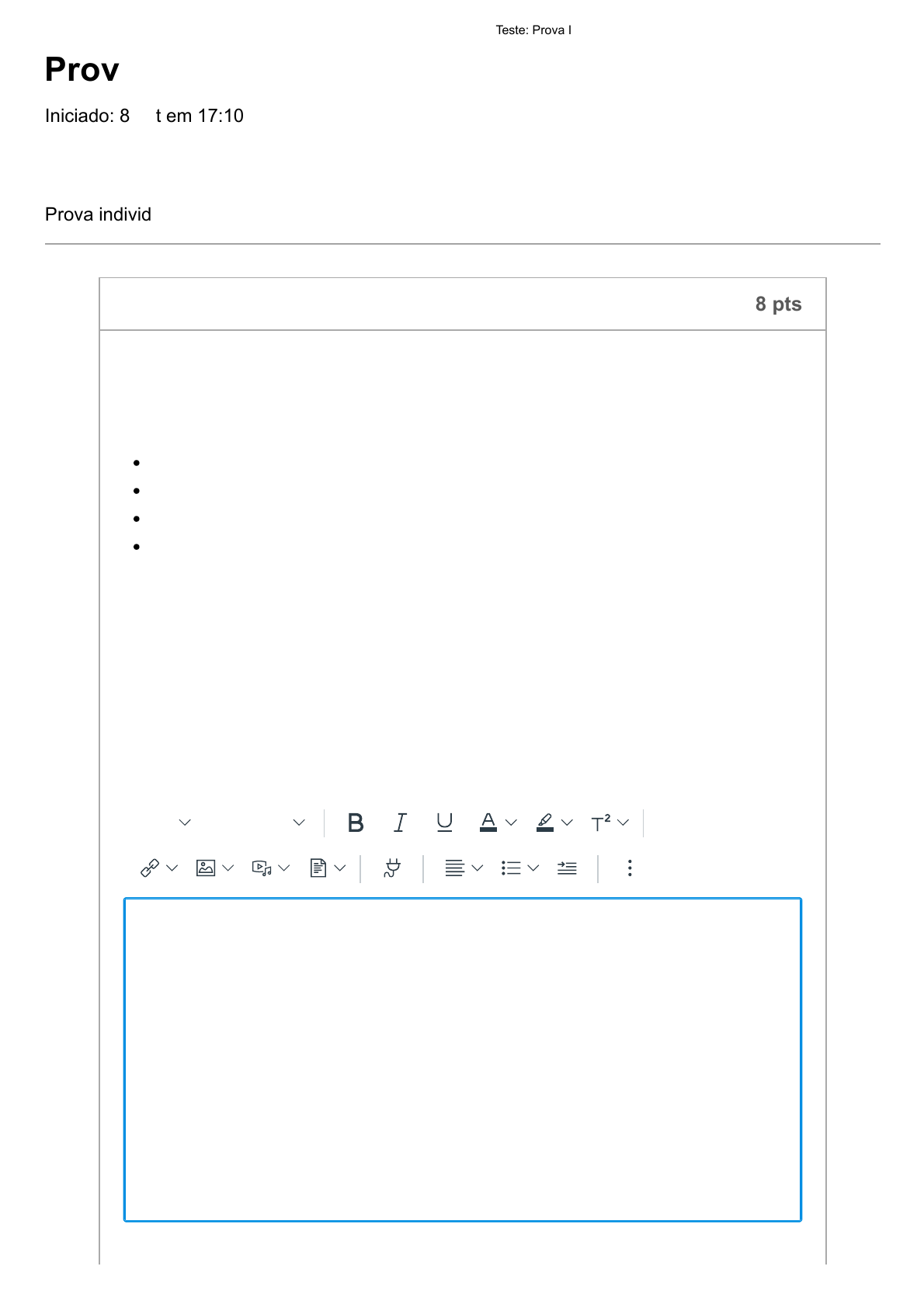 08/10/2021 17:20 Teste: Prova I https://pucminas.instructure.com/courses/72123/quizzes/259542/take 1/7 Prova I Iniciado: 8 out em 17:10 Instruções do teste Prova individual 8 ptsPergunta 1 Um distribuidor de cestas, compra três produtos P1, P2 e P3, e prepara caixas com esses produtos. Observações anteriores mostram que: A quantidade de P1 e P2 deve ser pelo menos 22% do total; A cesta deve ter pelo menos 12 de P3; Cada item deve concorrer com pelo menos 12% do total da cesta; Do recurso R1, o P2 gasta 2 vezes o que P1 precisa e o P3 3 vezes, existem disponível 3000 deste recurso. Os custos de P1, P2 e P3 são: R$ 96,00, R$ 50,00 e R$ 13,00 respectivamente. Construa, o modelo do sistema descrito que minimize os custos. Editar Visualizar Inserir Formato Ferramentas Tabela 12pt Parágrafo Free Hand Free Hand Free Hand Free Hand Free Hand 08/10/2021 17:20 Teste: Prova I https://pucminas.instructure.com/courses/72123/quizzes/259542/take 2/7 p 0 palavras </> Se precisar do arquivo em Word para fazer a prova. BaseGrafico.docx (https://pucminas.instructure.com/courses/72123/files/4625826/download? download_frd=1) 8 ptsPergunta 2 Resolver graficamente modelo de programação linear: A solução deve explicitar, ou seja conter, pelo menos, as seguintes etapas: Cálculo das regiões se solução das inequações Cálculo das retas das funções objetivas A região de solução O ponto de solução Min z = 4x + 4x 4x + 8x >= 24 8x + 4x <= 32 -4x + 4x <= 4 2x <= 10 x >= 0 x >= 0 Se precisar foi incluído um arquivo em word para ajudar na construção do gráfico 1 2 1 2 1 2 1 2 1 1 2 https://pucminas.instructure.com/courses/72123/files/4625826?wrap=1 https://pucminas.instructure.com/courses/72123/files/4625826/download?download_frd=1 Free Hand Free Hand Free Hand 08/10/2021 17:20 Teste: Prova I https://pucminas.instructure.com/courses/72123/quizzes/259542/take 3/7 p 0 palavras </> 8 ptsPergunta 3 Resolver usando Simplex. Fazer um passo, ou seja, parar depois do primeiro pivotamento Indicar: - O Pivô e porque ele foi selecionado. - Quais operações foram efetuadas. - Indicar se a resposta, depois de um passo é ótima e quais são os valores das variáveis. Só será considera a resposta que atender os itens acima. Max z = 5x + 2x + 3x 2x + 4x + 2x <= 12 1 2 3 1 2 3 Editar Visualizar Inserir Formato Ferramentas Tabela 12pt Parágrafo Free Hand 08/10/2021 17:20 Teste: Prova I https://pucminas.instructure.com/courses/72123/quizzes/259542/take 4/7 p 0 palavras 6x -6x <= 6 4x + 8x + 6x <= 18 x >= 0 x >= 0 x >= 0 1 2 1 2 3 1 2 3 </> 8 ptsPergunta 4 Montar o Quadro, não é resolver. Usar o método da função auxiliar, se for o caso; O procedimento usado deve ser explicitado, ou seja, todas as etapas devem estar descritas; Editar Visualizar Inserir Formato Ferramentas Tabela 12pt Parágrafo Free Hand Free Hand 08/10/2021 17:20 Teste: Prova I https://pucminas.instructure.com/courses/72123/quizzes/259542/take 5/7 p 0 palavras Min z = 5x + 9x + 7x 3x + 5x + 8x <= 40 8x + 1x + 5x = 11 9x + 3x + 2x >= 9 x >= 0 x >= 0 1 2 3 1 2 3 1 2 3 1 2 3 1 2 </> 1 ptsPergunta 5 Verdadeiro Falso Para obter uma solução básica de um sistema de equações lineares, basta escolher as variáveis que estão em excesso e zerá-las. Editar Visualizar Inserir Formato Ferramentas Tabela 12pt Parágrafo Free Hand Free Hand 08/10/2021 17:20 Teste: Prova I https://pucminas.instructure.com/courses/72123/quizzes/259542/take 6/7 Não se pode afirmar 1 ptsPergunta 6 Verdadeiro Falso Não se pode afirmar Quanto o valor de uma variável não básica é alterado de zero para um, o valor da função objetiva é prejudicado 1 ptsPergunta 7 Verdadeiro Falso Não se pode Os componentes dos modelos usados em PO: Variáveis descontroladas ou de decisão; Função objetiva e Restrições 0 ptsPergunta 8 Carregar Se quiser enviar a prova por arquivo use esta questão Escolher um arquivo Free Hand Free Hand 08/10/2021 17:20 Teste: Prova I https://pucminas.instructure.com/courses/72123/quizzes/259542/take 7/7 Nenhum dado novo para salvar. Última verificação às 17:20 Enviar teste Free Hand