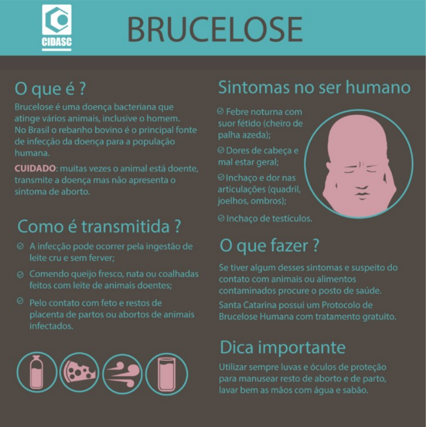 Brucelose A brucelose é uma doença causada pela bactéria Brucella abortus e pode ocasionar aborto e queda na produção de leite. Ela ataca animais machos e fêmeas. Muitos animais contraem a doença quando comem ou lambem restos de placentas no pasto, visto que, quando a vaca sofre o aborto, a Brucella pode permanecer viva por cerca de seis meses no solo e pastagem. A transmissão também pode acontecer durante a monta natural, ou na inseminação com material ou sêmen contaminado. O ser humano pode contrair a brucelose, assim como os animais, quando entra em contato direto com os restos de aborto ou placenta. Além disso, o consumo de leite cru e derivados contaminados pela bactéria também podem acometer o homem. Como perceber Alguns sintomas podem auxiliar o produtor na identificação da doença entre os animais da propriedade, entre eles: Aborto no 7º mês de gestação, principalmente nas primeiras crias; Queda de produção de leite; Nas fêmeas pode ocorrer retenção de placenta, repetição de cio e até infertilidade; Nos machos, observa-se o inchaço dos testículos. Contudo, animais doentes podem não apresentar os sintomas listados acima. Portanto, é importante realizar exames em todos os animais da propriedade. Prevenção Ações conjuntas e alguns cuidados básico podem, a longo prazo, auxiliar na erradicação da brucelose dos rebanhos catarinenses. – É importante comprar apenas animais que tenham exame negativo para brucelose, ou de rebanhos lives da doença e com a Guia de Trânsito Animal – GTA. – Utilizar touros de monta que tenham exame negativo para brucelose. – Realizar a inseminação artificial somente com material de locais que garantam a segurança contra a doença. – Fazer testes periódicos no rebanho, para conhecer a saúde dos animais. – Lavar as mãos após manejar os animais. – Sempre usar luvar para mexer nos fetos abortados e placentas com infecção. – Queimar o feto abortado e a placenta, em seguida, desinfetar o local do aborto. – Sempre ferver o leite antes de beber. Programa Nacional de Controle e Erradicação da Brucelose e Tuberculose O objetivo do Programa é diminuir ou até mesmo erradicar a incidência de casos de Brucelose e Tuberculose bovina e bubalina e certificar propriedades que ofereçam ao consumidor produtos de baixo risco sanitário. É realizada investigação de possíveis focos, por vigilância ativa, mediante a parceria com Agroindústrias do Setor Leiteiro (Laticínios). O Certificado de Propriedade Livre de Brucelose e Tuberculose certifica a propriedade que cumpre o que estabelece o Artigo 57 do regulamento Técnico do PNCEBT. De acordo com o Mapa, a proposta do Programa foi elaborada com a participação de especialistas e pesquisadores em epidemiologia, em medicina veterinária preventiva, e em Serviços de Inspeção e Defesa Sanitária Animal.