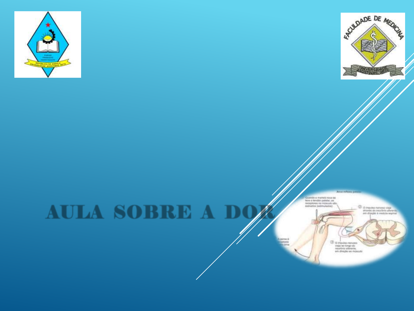 UNIVERSIDADE AGOSTINHO NETO FACULDADE DE MEDICINA D.E.I- MEDICINA INTERNA UNIDADE CURRICULAR - SEMIOLOGIA E FISIOPATOLOGIA MÉDICA AULA SOBRE A DOR João Pascoal/2021 Geral 1. Conhecer e descrever os principais mecanismos fisiopatológicos e caractertistcas semioogicas envolvidas na dor. Especificos a) Descrever o conceito de dor segundo a OMS b) Descrever as principais vias de transmissão e integração da Dor c) Descrever os tipos de Dor e suas características d) Abordagem semiológica da Dor e) Avaliação do Doente e objectivos do tratamento da Dor OBJECTIVOS EDUCACIONAIS Introdução Historial Conceito fundamentais Dor Nocicepção Estudo da Dor Conceito Factores envolvidos : sociais – psicoemocionais Mecanismos da Dor e vias de condução da dor Classificação da dor Caracteres semiológicos da Dor ( anamnese, exame Físico ) Abordagem do Doente com Dor SUMÁRIO Pinto ,Anabela ,Fisiopatologia-Fundamentos e Aplicação,LIDEL,Lisboa,2ªed,2013 Soares, Ducla, Semiologia Médica,Lidel,lisboa,1ªedição, 2007 Porto,celmo, Semiologia Medica,mcgrawhill RJ 2ª dição,2000 Mcphee,Stephen;Ganong,Willian,Fisiopatologia da Doença,MCGrawHill,RJ 5. J.Portela,I.Neto, Dor e Cuidados Paliativos ,Permanyer,l isboa 1ªedição 1999 BIBLIOGRAFIA 400 AC (aprox.)Hipócrates utiliza água fria e fisioterapia para alívio da dor, introduz o ópio e o ácido salisílico . 175 - Galeno estabelece diferenças entre tipos de nervos e classifica diferentes formas de dor. 2600 AC China acumpultura no tto da Dor 1500 -Paracelso- uso de subs quimicas no tto da dor 1662- R Descartes- Dor ( da pele ao cerebro ) 1803- Morfina no tto da Dor 1842- 1ª anestesia Cirurgica 1882- Casca de salgueiro – ASA 1884- Surgimento da Anastesia Local INTRODUÇÃO 1ª Causa e queixa na Consulta ! 1ª Causa de Visita ao Médico ! 1º Motivo de Triagem no atendimento ! 1º Motivo para uso de fármacos ! 1º Causa de desconforto do doente ! DOR !!! “ Experiência sensitiva e emocional desagradável, associada a lesão tecidular residual ou potêncial ou Descrita em termos de lesão “ International association for the study of pain CONCEITO 1. É um sintoma e não um diagnostico 2. É sempre Subjectiva 3. Na maior parte das Vezes traduz lesão Orgânica 4. É uma sensação Desagradável 5. Tem interferência marcante na qualidade de vida do individuo 6. É mais temido pelo doente em relação a morte 7. Mecanismo de defesa/ sinal de alerta 8. É um Fenómeno Neurológico Reflexo : a) Vias Aferentes (terminações nervosas periféricas e simpáticas) b) Vias Condutoras ( feixes Nervosos ) c) Centros de integração (talámo e Córtex ) d) Vias Eferentes e) Vias Colaterais CONSIDERAÇÕES GERAIS SOBRE A DOR FORMAÇÃO DA DOR Adaptado de Netter, Medicina Interna RECEPTORES CUTANÊOS DA DOR VIAS DE TRANSMISSÃO E MODULADORES DA DOR VIAS DA CONDUÇÃO DA DOR AGENTES CAUSAIS DA DOR I. Mecânicos: Traumas, contusões II. Agentes químicos: Vernizes, fumos, Substâncias Químicas III. Agentes Físicos : Calor IV.Agentes Biologicos: Virus,Bacterias,Fungo V. Psicogénicas: Emoções LESÕES ORGÂNICAS E TECIDULARES ESTRUTURAS SENSÍVEIS E NÃO SENSÍVEIS A DOR SENSIVEIS INSENSÍVEIS • Pele • Mucosas Superficiais • Periósteo • Tecidos Perivasculares • Pleura Parietal • Pericárdio Parietal • Miocárdio • Mesentério • Ureteres • Fígado ,baço , Rim OSSOS DURAMATER, ARACNOIDE PARENQUIMA CEREBRAL PULMAO PLEURA VISCERAL PERICARDIO VISCERAL PERITONEU Visceral CLASSIFICAÇÃO DA DOR NOCICEPTIVA NEUROPATICA MISTA PSICOGENICA Espontânea Evocada Constante Intermitente Evocada Sem lesão orgânica Segundo a Fisiopatologia CARACTERISTICAS: NOCICEPTIVA # NEUROPÁTICA DIFERENÇAS: NOCICEPTIVAS # NEUROPÁTICAS SOMÁTICA SUPERFICIAL PROFUNDA VISCERAL REFERIDA IRRADIADA Segundo a Topografia AGUDA CRÔNICA SEGUNDO A DURAÇÃO CARACTERISTICAS DA DOR AGUDA # DOR CRÔNICA MECANISMO DA DOR AGUDA ABORDAGEM SEMIOLOGICA DA DOR HISTÓRIA CLINICA 1) ANAMESE 2) EXAME FISICO 3) AVALIAÇÃO DA ESCALA DA DOR AVALIACÃO DA DOR Acredite Na Dor Do Doente ! A Experiencia Da Dor É Individual Historia Clinica Completa ! Exames Clínicos E Neurológico Cuidadosos ! OBJECTIVOS DO DO TRATAMENTO DA DOR Aliviar O Sofrimento Do Doente ELIMINAR O FACTOR CAUSAR Prevenir Recidiva Reabilitação Analgésicos Anti-inflamatórios Sedativos Etc... http://www.google.com/url?sa=i&rct=j&q=&esrc=s&source=images&cd=&cad=rja&uact=8&ved=&url=http://www.endonline.com.br/bookline/medsist/antiinflamatorios.htm&ei=fg44VZOrEs6xad_KgbgM&bvm=bv.91427555,d.d2s&psig=AFQjCNFlncPnTLrC4_RZMgRo03XcfI-5eQ&ust=1429823487086623 http://www.google.com/url?sa=i&rct=j&q=&esrc=s&source=images&cd=&cad=rja&uact=8&ved=&url=http://www.endonline.com.br/bookline/medsist/antiinflamatorios.htm&ei=fg44VZOrEs6xad_KgbgM&bvm=bv.91427555,d.d2s&psig=AFQjCNFlncPnTLrC4_RZMgRo03XcfI-5eQ&ust=1429823487086623 ABORDAGEM DO TIPO DE DOR E CONDUTA TERAPEÛTICA Sir Willian Osler CONSOLAR: Sempre ALIVIAR: Com Frequência CURAR: AS VEZES PERANTE A DOR: http://www.google.com/url?sa=i&rct=j&q=&esrc=s&source=images&cd=&cad=rja&uact=8&docid=GxdMDVdomKyZ3M&tbnid=0jZQdD1VopwciM:&ved=0CAUQjRw&url=http://historicalmedicalart.com/cart/index.php?cPath=25&ei=k_pIU6ToFfP20gX4rYDIBw&bvm=bv.64542518,d.ZGU&psig=AFQjCNFBAWMqgx7DtusU8ermZgzNoxrmqg&ust=1397378029219468 http://www.google.com/url?sa=i&rct=j&q=&esrc=s&source=images&cd=&cad=rja&uact=8&docid=GxdMDVdomKyZ3M&tbnid=0jZQdD1VopwciM:&ved=0CAUQjRw&url=http://historicalmedicalart.com/cart/index.php?cPath=25&ei=k_pIU6ToFfP20gX4rYDIBw&bvm=bv.64542518,d.ZGU&psig=AFQjCNFBAWMqgx7DtusU8ermZgzNoxrmqg&ust=1397378029219468 http://www.google.com/url?sa=i&rct=j&q=&esrc=s&source=images&cd=&cad=rja&uact=8&docid=N7XD94R9NVtEZM&tbnid=GAO-VUYbWUW4CM:&ved=0CAUQjRw&url=http://en.wikipedia.org/wiki/William_Osler&ei=6vpIU4nnJMKf0QXz2YCwBg&bvm=bv.64542518,d.ZGU&psig=AFQjCNFBAWMqgx7DtusU8ermZgzNoxrmqg&ust=1397378029219468 MUITO OBRIGADO !