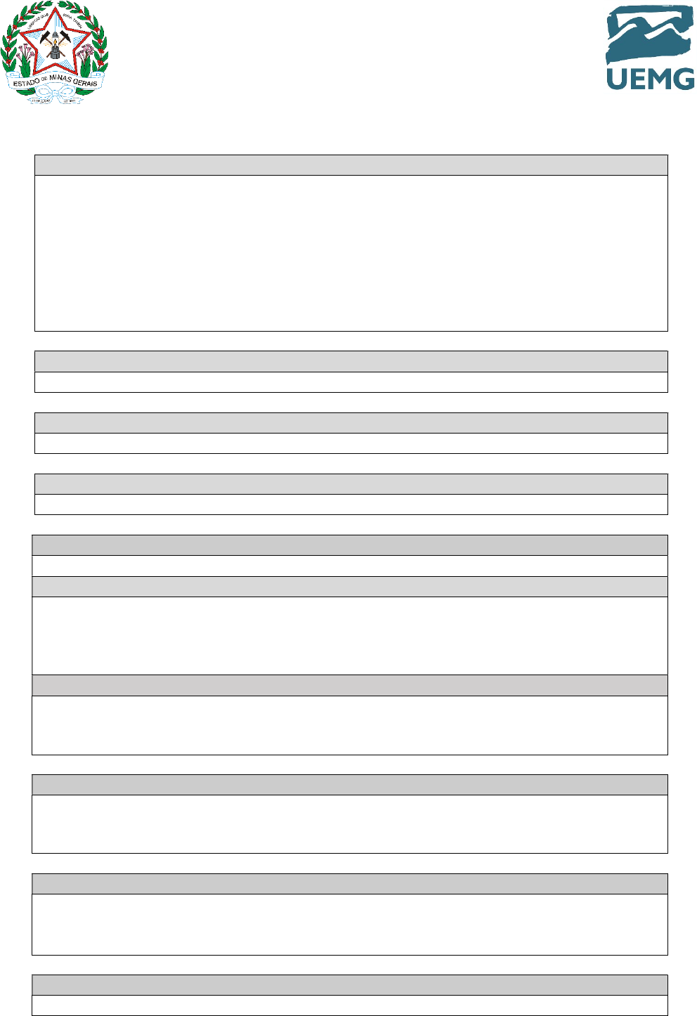 GOVERNO DO ESTADO DE MINAS GERAIS UNIVERSIDADE DO ESTADO DE MINAS GERAIS UNIDADE ITUIUTABA CURSO DE LICENCIATURA EM CIÊNCIAS BIOLÓGICAS 1 PLANO DE AULA 1. CONTEXTO: As angiospermas são um subgrupo do Reino Plantae, que carrega em si características únicas que o diferem de todos os outros. Essas plantas são, evolutivamente, as últimas, sendo precedidas pelas briófitas, pteridófitas e gimnospermas, respectivamente. A flor é a estrutura reprodutora característica das plantas angiospérmicas. Sua função basicamente é produzir sementes através da reprodução sexuada. Compreender a importância dessa reprodução, polinização e suas estruturas responsáveis é de extrema importância para estabelecer relações com seu conhecimento cientifico além de facilitar o modelo de ensino/aprendizagem dos alunos. 2. SÉRIE: 2° Ano do Ensino Médio 3. UNIDADE TEMÁTICA E TEMA: Tema: Angiospermas 4. OBJETO DE CONHECIMENTO E ASSUNTO: Assunto: Reconhecendo as estruturas das angiospermas: Flores 5. OBJETIVO DE APRENDIZAGEM: Identificar as estruturas morfológicas das flores. 5.1. OBJETIVOS ESPECÍFICOS: -Aprender sobre a estrutura e morfologia das flores; -Reconhecer a importância dessa estrutura; -Classificação geral das angiospermas; - Identificação das estruturas (aula prática). HABILIDADES A SEREM DESENVOLVIDAS: Identificar as estruturas morfológicas de uma angiosperma além de apresentar a função desempenhada por cada uma delas, analisando também sua relação com os seres vivos e meio ambiente. 6. PROCEDIMENTOS DIDÁTICOS: Serão usadas metodologias ativas: canva (para apresentação de conteúdo), a plataforma wordwall (jogo para fixação) e a experimentação prática (vídeo com reconhecimento das estruturas florais). 7. AVALIAÇÃO: Os critérios de avaliação serão: Participação no jogo (wordwall); Entrega do roteiro de aula prática com as respostas do experimento. 8. RECURSOS DIDÁTICOS: Na aula serão utilizados o notebook/celular, acesso ao canva e o jogo Wordwall. GOVERNO DO ESTADO DE MINAS GERAIS UNIVERSIDADE DO ESTADO DE MINAS GERAIS UNIDADE ITUIUTABA CURSO DE LICENCIATURA EM CIÊNCIAS BIOLÓGICAS 2 Na prática serão usados: lamina, papel A4, cola e 2 especies distintas de flores. 9. BIBLIOGRÁFIA BÁSICA: LOPES, S; ROSSO, S; Bio. 3° Edição. Editora Saraiva, São Paulo, p. 106-110, 2016. BIZZO, N.; Novas Bases Da Biologia. Diversidade v.2. Editora Ática, São Paulo, p. 276, 279, 2013. 10. BIBLIOGRÁFIA COMPLEMENTAR SUGERIDA: LINHARES S.; GEWANDSZNAJDER F.; PACCA H.; Biologia hoje. Os seres vivos 3 edição. Editora Ática, São Paulo. p. 75-79, 2016.