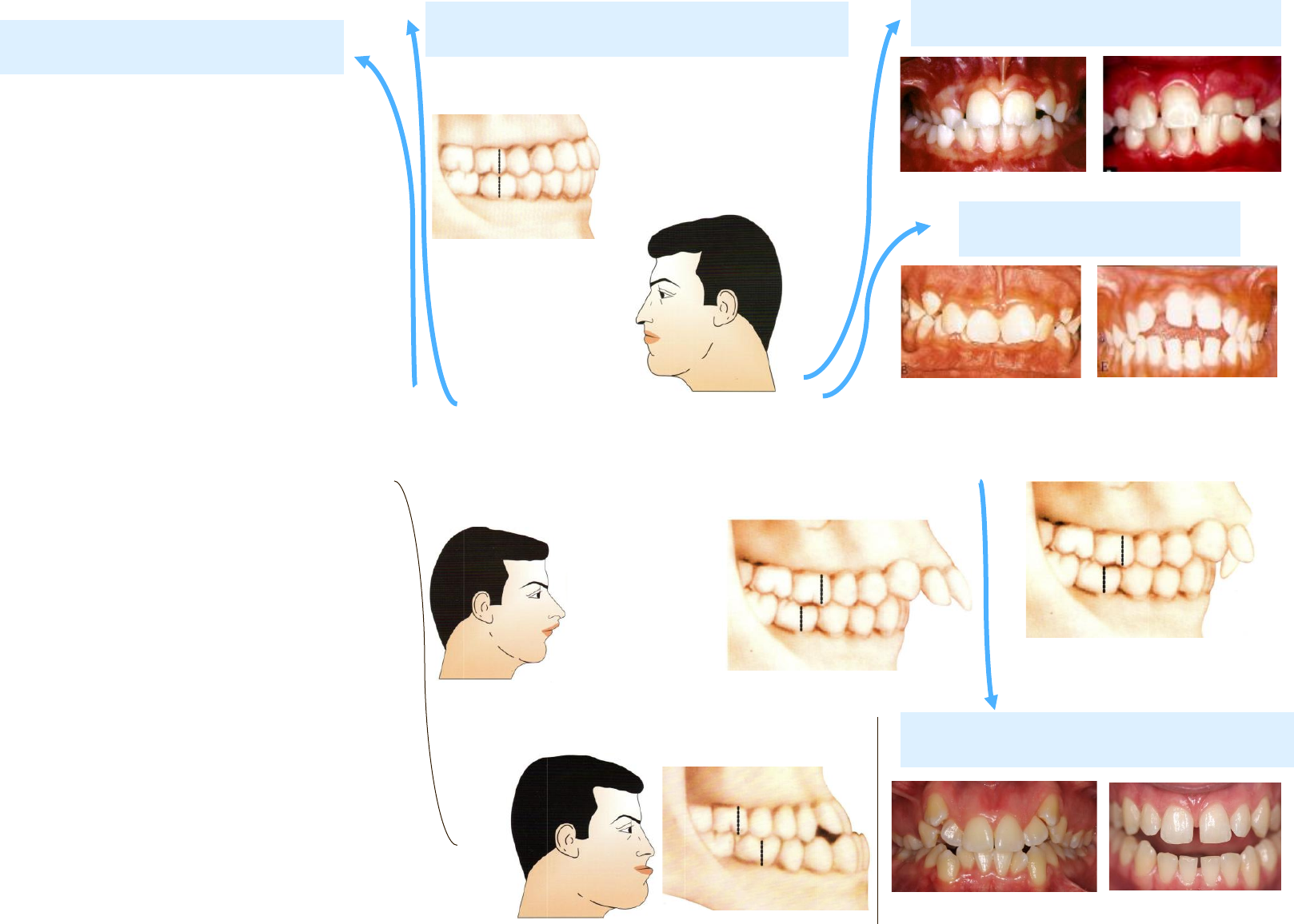Oclusão e Maloclusões CHAVES DE OCLUSÃO CHAVE I – RELAÇÃO INTERARCOS ✓ Cúspides MV dos 1MS (16 e 26) ocluem nos sulcos MV dos 1MI (36 e 46); ✓ Cristas marginais distais dos 1MS (16 e 26) ocluem com as cristas marginais mesiais dos 2MI; ✓ Cúspides MP dos 1MS (16 e 26) ocluem nas fossas centrais dos 1MI (36 e 46); ✓ Cúspides V dos prés superiores devem ter relação cúspide-ameia com os prés inferiores e 1MI. ✓ Cúspides P dos prés superiores ocluem com as fossas distais dos prés inferiores; CHAVE II – ÂNGULAÇÃO DAS COROAS ✓ Caninos superiores devem ter chave perfeita com relação cúspide-ameia com os caninos inferiores e primeiros prés inferiores (33, 34, 43 e 44). ✓ Incisivos superiores sobrepõem aos incisivos inferiores, de preferencia com coincidência das linhas medianas entre os arcos. ✓ A angulação das coroas de todos os dentes se apresenta inclinada mesialmente. CHAVE III – INCLINAÇÃO DAS COROAS ✓ Incisivos superiores possuem inclinação positiva; ✓ Incisivos inferiores, pré-molares e molares inclinação -. CHAVE IV – AUSÊNCIA DE ROTAÇÕES ✓ Arcos dentários com ausência de rotações apresentam um perímetro normalizado, sem espaços interdentários. CHAVE V – PONTO DE CONTATOS JUSTOS ✓ As relações interproximais devem ser as mais justas possíveis. CHAVE VI – CURVA DE SPEE ✓ Profundidade da curva é ausente ou levemente côncava (até 2,5mm). CLASSIFICAÇÃO DE ANGLE Angle não classificou TRANSVERSALMENTE e nem VERTICALMENTE, apenas HORIZONTALMENTE. CLASSE I - Neutroclusão Cúspide MV do 1MS oclui no sulco MV do 1MI (chave molar). Perfil facial reto e equilíbrio das funções da musculatura peribucal, mastigadora e da lingua. CLASSE II – Distoclusão Sulco MV do 1MI situa-se distalmente à cúspide MV do 1MS. CLASSE II – divisão 1 Vestibularização dos incisivos sup. CLASSE II – divisão 2 Lingualização ou verticalização dos incisivos sup. CLASSE III – Mesioclusão Sulco MV do 1MI situa-se mesialmente à cúspide MV do 1MS. DESVIOS TRANSVERSAIS DESVIOS VERTICAIS DESVIOS DE PERÍMETRO Mordida cruzada anterior Mordida cruzada posterior Sobremordida Mordida aberta Apinhamento Diastema