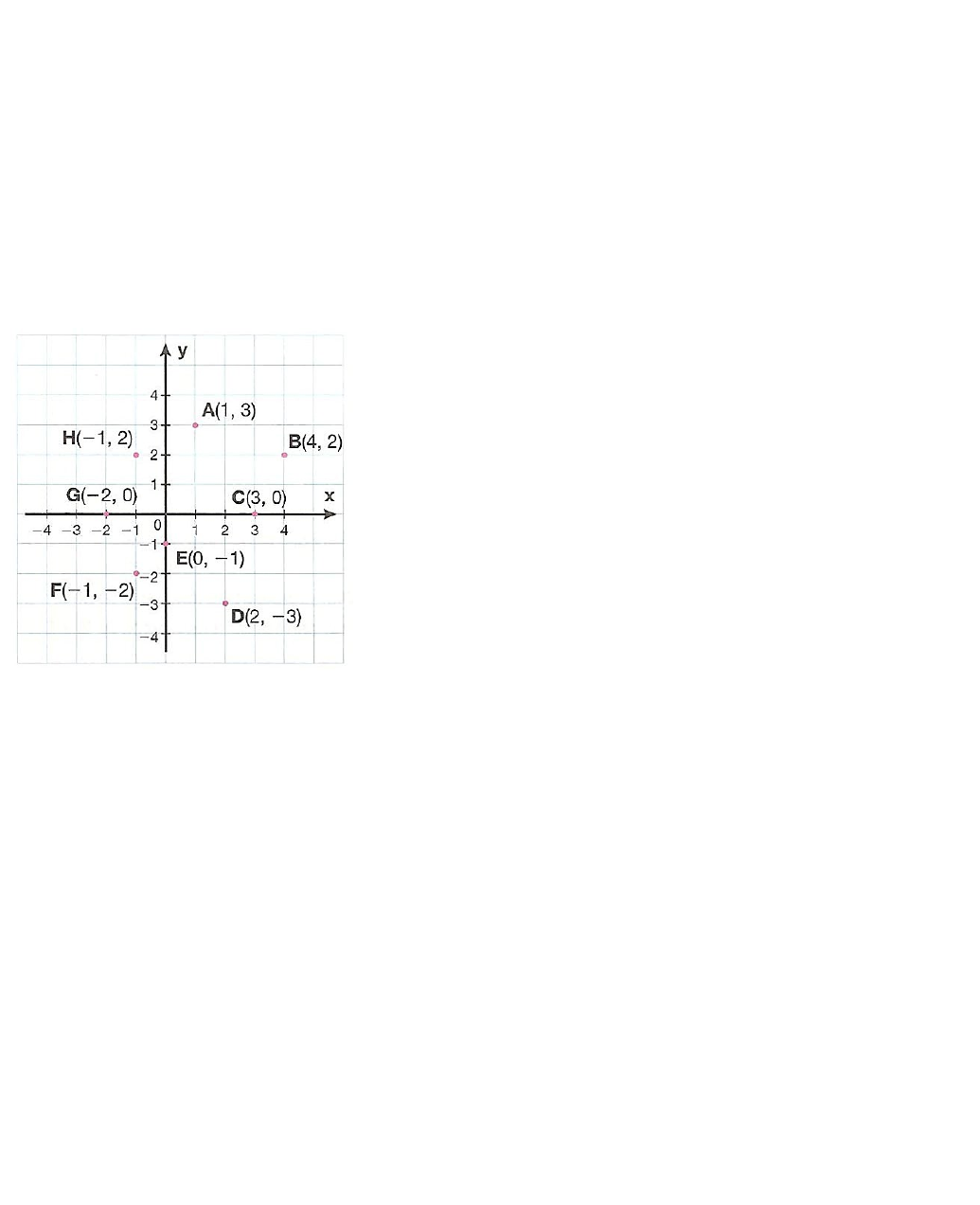 1. Desenvolva as expressões abaixo, utilizando as regras dos produtos notáveis. a. (x + 5)2 = b. (y – 3)2 = c. (3x + 4)(3x – 4) = 2. Resolva as seguintes equações literais (x é a incógnita) a. 3( ax – 4) = 2( x – a) – 5 b. 2( 2a + 3x) – 3( 3a + x) = 4a 3. Analise o gráfico abaixo e responda as perguntas: a) Qual a ordenada do ponto E?_____________ b) E a abscissa do ponto H?________________ c) Que ponto que tem como abscissa o número 3? _________ d) Que ponto ou pontos pertencem ao terceiro quadrante? __________ e) que pontos possuem somente coordenadas positivas? ____________ 4. Na compra de duas canetas e um caderno, Joana gastou R$ 13,00. Carlos comprou quatro canetas e três cadernos e gastou R$ 32,00. Determine o valor de uma caneta e um caderno. 5. Determine a solução do sistema 6. Um retângulo tem de perímetro 188 m. Calcula as suas dimensões sabendo que a diferença das duas é de 20m. 7. Uma costureira foi até a loja de aviamentos e comprou 3 metros de forros e 2 zíperes, pagando R$ 9,00. No dia seguinte, ela voltou na mesma loja e comprou 5 metros do mesmo forro e 4 zíperes do mesmo tipo e tamanho, gastando um total de R$ 16,00. Sabendo que o preço de 1 metro do forro é representado por x e o preço de 1 zíper por y, nessas circunstâncias, escreva o sistema de equações que modela o problema e resolva.