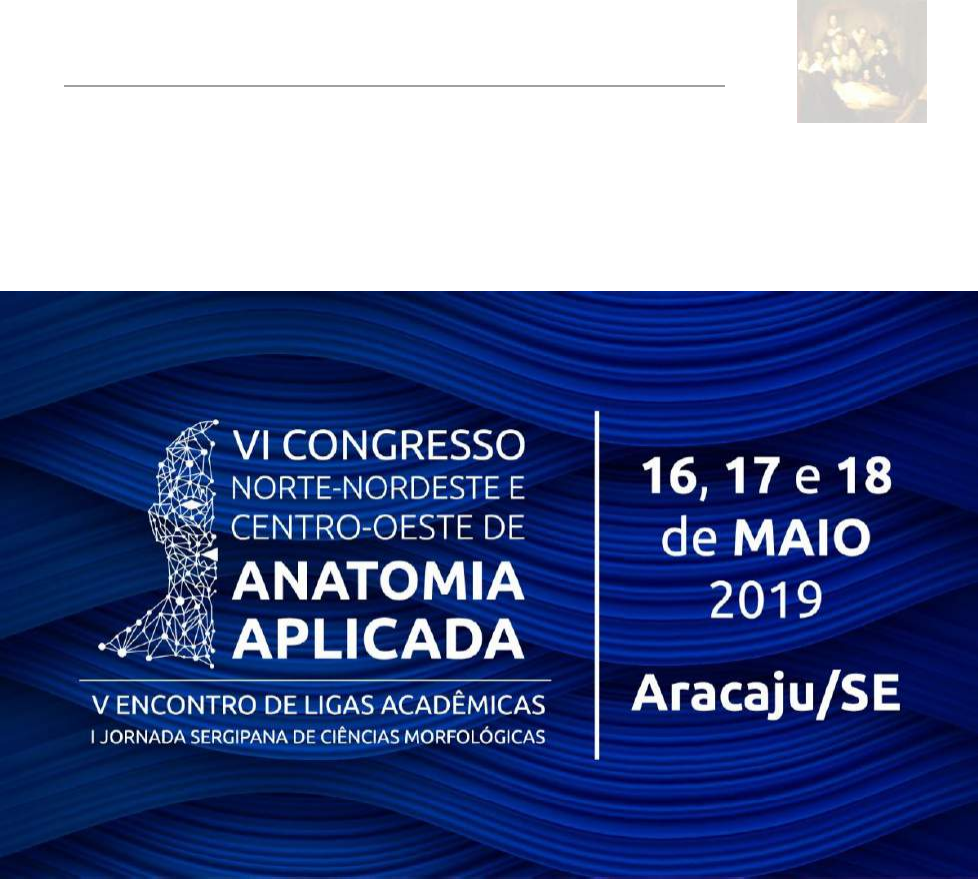 REVISTA SAÚDE & CIÊNCIA ONLINE ISSN 2317-8469 VI Congresso Norte-Nordeste e Centro-Oeste de Anatomia Aplicada. Revista Saúde e Ciência online, v. 9, n. 2, (Suplemento, maio a agosto de 2020), p 308-650. 308 ANAIS REVISTA SAÚDE & CIÊNCIA ONLINE ISSN 2317-8469 VI Congresso Norte-Nordeste e Centro-Oeste de Anatomia Aplicada. Revista Saúde e Ciência online, v. 9, n. 2, (Suplemento, maio a agosto de 2020), p 308-650. 309 APRESENTAÇÃO Há dez anos realizamos o I Simpósio Norte–Nordeste de Anatomia Aplicada na capital sergipana. Por conta da grandiosidade do evento e da adesão de amplo número de participantes da área da saúde, optamos por realizar uma solenidade de maior porte e ainda mais majestosa. E é com esse mesmo espírito que escolhemos a nossa tranquila e acolhedora cidade de Aracaju para sediar o VI Congresso Norte-Nordeste e Centro-Oeste de Anatomia Aplicada, o V Encontro de Ligas Acadêmicas e a I Jornada Sergipana de Ciências Morfológicas VI Congresso Norte-Nordeste e Centro-Oeste de Anatomia Aplicada, o V Encontro de Ligas Acadêmicas e a I Jornada Sergipana de Ciências Morfológicas, concentrando, num evento multidisciplinar, várias áreas do saber. Teremos minicursos, apresentação de trabalhos científicos, entrega de premiações e a realização do encontro das Ligas Acadêmicas das Áreas da Saúde do Brasil. Esperamos você para partilhar experiências! Prof. Dr. José Aderval Aragão Presidente do VI Congresso Norte-Nordeste e Centro-Oeste de Anatomia Aplicada REVISTA SAÚDE & CIÊNCIA ONLINE ISSN 2317-8469 VI Congresso Norte-Nordeste e Centro-Oeste de Anatomia Aplicada. Revista Saúde e Ciência online, v. 9, n. 2, (Suplemento, maio a agosto de 2020), p 308-650. 310 PRESIDENTE DO CONGRESSO PROF. DR. JOSÉ ADERVAL ARAGÃO VICE-PRESIDENTES DO CONGRESSO PROF. DR. ERASMO DE ALMEIDA JÚNIOR PROF. DR. FRANCISCO PRADO REIS COMISSÃO ORGANIZADORA AC. ANA CRISTINA DE ALMEIDA TELES AC. ANA LETÍCIA SIQUEIRA FRANÇA GOMES SILVA AC. CÁSSIA LORENA DANTAS RODRIGUES AC. CLEÍSE SOUZA GOMES AC. ELISA RIBEIRO CARVALHO SILVA AC. FELIPE MATHEUS SANT’ANNA ARAGÃO AC. IAPUNIRA CATARINA SANT’ANNA ARAGÃO AC. JOANA GLÓRIA ARAGÃO SANTOS AC. JOÃO EDUARDO ANDRADE TAVARES DE AGUIAR AC. JOÃO VITOR SANTANA SOUZA AC. JULIANA PEREIRA DE LUCENA MENEZES AC. LHAIS BARBOSA DE ANDRADE AC. LUAN MATEUS RODRIGUES SOUSA AC. MARCOS ANTÔNIO LIMA CARVALHO AC. OTÁVIO SANTIAGO ROCHA AC. TALLES ANTÔNIO COELHO DE SOUSA DRA. LUCIANA CABRAL DE ALMEIDA PROF. DR. JEISON SATURNINO DE OLIVEIRA PROF. DR. JOSÉ ADERVAL ARAGÃO PROF. MSC. CARLOS EDUARDO DE ANDRADE PROFA. DRA. CAMILA GOMES DANTAS PROFA. DRA. TASSIA VIRGINIA OLIVEIRA PROFA. MSC. LUANA GODINHO MAYNARD TEC. ANTÔNIO ANDRADE FERREIRA TEC. EUFRÁSIO DOS SANTOS CARDOSO TEC. MAX WESLEY SANTOS HORA COMISSÃO CIENTÍFICA PROF. DR. ANDERSON CARLOS MARÇAL PROF. DR. CÉLIO FERNANDO DE SOUSA RODRIGUES PROF. DR. CLÁUDIO SILVA TEIXEIRA PROF. DR. DANILO RIBEIRO GUERRA PROF. DR. ERASMO DE ALMEIDA JÚNIOR PROF. DR. FRANCISCO PRADO REIS PROF. DR. JOSÉ ADERVAL ARAGÃO PROF. DR. JOSÉ ROBERTO PIMENTA DE GODOY PROF. DR. MÁRCIO ANTÔNIO BABINSKI PROF. DR. MARCOS VINICIUS DA SILVA PROF. DR. PAULO SÉRGIO FLORES CAMPOS PROF. MSC. HESMONEY RAMOS DE SANTA ROSA PROF. SYDNEY CORREIA LEÃO REVISTA SAÚDE & CIÊNCIA ONLINE ISSN 2317-8469 VI Congresso Norte-Nordeste e Centro-Oeste de Anatomia Aplicada. Revista Saúde e Ciência online, v. 9, n. 2, (Suplemento, maio a agosto de 2020), p 308-650. 311 PROFA. DRA. CATARINA ANDRADE GARCEZ CAJUEIRO PROFA. DRA. SUZANA PAPILE MACIEL CARVALHO PALESTRANTES ESP. DR. EDUARDO YUJI MINOMO ESP. DR. LUCIO ANTÔNIO PRADO DIAS ESP. DR. RODRIGO VASCONCELOS E CARMO PROF. DR. CÉLIO FERNANDO DE SOUSA RODRIGUES PROF. DR. GUILHERME BENJAMIN BRANDÃO PITTA PROF. DR. JEFERSON SAMPAIO D’AVILA PROF. DR. JOSÉ TELES DE MENDONÇA PROF. DR. MÁRCIO ANTÔNIO BABINSKI PROF. DR. MARCOS GUIMARÃES DE SOUZA CUNHA PROF. DR. PAULO SÉRGIO FLORES CAMPOS PROF. ESP. ANDRÉ DE ABOIM MACHADO PROF. ESP. AUGUSTO CESAR SANTOS ESMERALDO PROF. ESP. DIEGO PROTÁSIO DE VASCONCELOS PROF. ESP. EMMANOEL ARAGÃO SAMPAIO PROF. ESP. LUCAS CELESTINO GUERZET AYRES PROF. MSC. EDUARDO TELES DE OLIVEIRA PROF. MSC. HENRIQUE PEREIRA BARROS PROF. MSC. JOSÉ JEOVÁ DE OLIVEIRA FILHO PROF. MSC. PAULO VICENTE DOS SANTOS FILHO PROFA. DRA. ANDREA OXLEY DA ROCHA PROFA. DRA. LETÍCIA SILVA MATOS SOBRINHO PROFA. DRA. SONIA OLIVEIRA LIMA PROFA. DRA. SUZANA PAPILE MACIEL CARVALHO PROFA. DRA. VALÉRIA PAULA SASSOLI FAZAN REVISTA SAÚDE & CIÊNCIA ONLINE ISSN 2317-8469 VI Congresso Norte-Nordeste e Centro-Oeste de Anatomia Aplicada. Revista Saúde e Ciência online, v. 9, n. 2, (Suplemento, maio a agosto de 2020), p 308-650. 312 PARALISIA OBSTÉTRICA DE PLEXO BRAQUIAL E SUAS REPERCUSSÕES NA CRIANÇA *Carolina Basílio Lucchesi 1 ; Victor Ravel Santos Macedo 2 ; Larissa de Araújo Correia Teixeira 3 ; Erasmo de Almeida Júnior 4 1 Graduanda do Curso de Medicina, Universidade Tiradentes- UNIT. 2 Graduando do Curso de Medicina, Universidade Federal de Sergipe- UFS 3 Graduanda do Curso de Medicina, Universidade Tiradentes (UNIT-SE) 4 Professor Titular de Anatomia, Universidade Tiradentes (UNIT-SE) * carolbasluc@gmail.com INTRODUÇÃO: Paralisia Obstétrica é uma lesão do plexo braquial, que pode variar desde neuropraxia até axonotemese ou avulsão da raiz nervosa ao se realizar manobras para o desprendimento do ombro, que se prende na sínfise púbica, na hora do parto. OBJETIVOS: Realizar uma revisão sistemática sobre a repercussão da Paralisia Obstétrica de Plexo Braquial em crianças. MÉTODOS: Foi realizada uma busca na base de dados SCIELO com os descritores “Paralisia obstétrica” e “Plexo Braquial”. Foram escolhidos 5 artigos dentre os 7 achados durante o período de 2012 a 2017. RESULTADOS: Crianças com lesões no tronco superior e médio (C5-C7) recuperam a função se o tratamento ocorrer nos primeiros anos de vida. Caso isso não ocorra, podem apresenta
