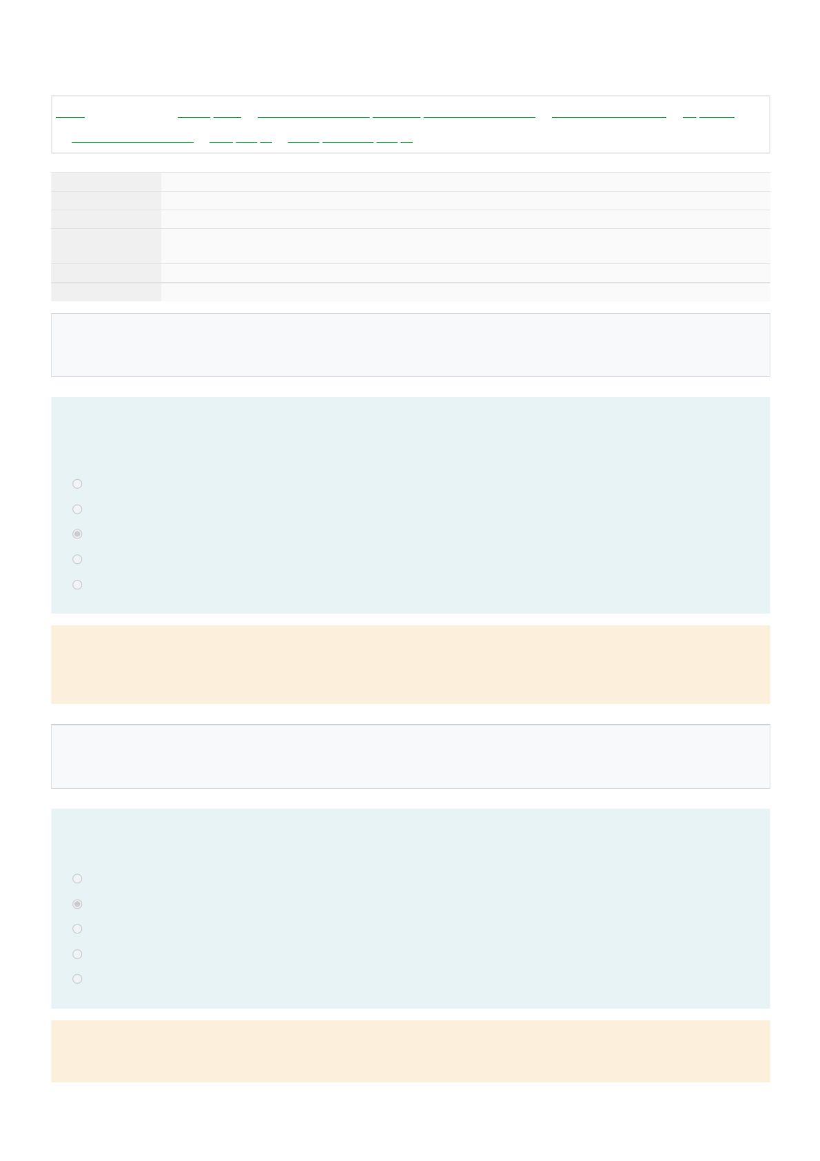 12/08/2022 10:14 Avaliação de recuperação: Revisão da tentativa https://cursos.ead.ifro.edu.br/mod/quiz/review.php?attempt=388898&cmid=107306 1/5 Painel / Meus cursos / Subsequente / Técnico em Administração Subsequente ao Ensino Médio / Turma: 20211.1.0719.1E / 3º período / 20221.3.0719.1E UB.0038 / Recuperação / Avaliação de recuperação Iniciado em quinta, 24 mar 2022, 07:44 Estado Finalizada Concluída em quinta, 24 mar 2022, 07:49 Tempo empregado 4 minutos 44 segundos Notas 5/10 Avaliar 50 de um máximo de 100 Questão 1 Incorreto Atingiu 0 de 1 Questão 2 Correto Atingiu 1 de 1 Não existe uma definição fechada que expresse o significado da qualidade e o que ocorre, segundo Miguel (2000, p. 18), na realidade, “é um conjunto de atributos, propriedades ou características relacionadas a um produto”. Ou seja: Escolha uma opção: a. qualidade não existe. b. todas as alternativas estão corretas. c. tudo é qualidade. d. qualidade não é importante. e. não há uma resposta definitiva para o conceito de qualidade, pois está diretamente relacionada à percepção das pessoas. Sua resposta está incorreta. A resposta correta é: não há uma resposta definitiva para o conceito de qualidade, pois está diretamente relacionada à percepção das pessoas. Aplicado de forma cíclica: planejar(P–plan), executar(D–do), controlar(C–check), agir(A–act) Escolha uma opção: a. DEMING b. PDCA c. SWOT d. PARETO e. JURAN Sua resposta está correta. A resposta correta é: PDCA https://cursos.ead.ifro.edu.br/my/ https://cursos.ead.ifro.edu.br/course/index.php?categoryid=2 https://cursos.ead.ifro.edu.br/course/index.php?categoryid=266 https://cursos.ead.ifro.edu.br/course/index.php?categoryid=336 https://cursos.ead.ifro.edu.br/course/index.php?categoryid=420 https://cursos.ead.ifro.edu.br/course/view.php?id=3904 https://cursos.ead.ifro.edu.br/course/view.php?id=3904#section-5 https://cursos.ead.ifro.edu.br/mod/quiz/view.php?id=107306 12/08/2022 10:14 Avaliação de recuperação: Revisão da tentativa https://cursos.ead.ifro.edu.br/mod/quiz/review.php?attempt=388898&cmid=107306 2/5 Questão 3 Correto Atingiu 1 de 1 Questão 4 Incorreto Atingiu 0 de 1 Ferramenta gerencial na produção de bens e serviços, visando atender as necessidades dos clientes Escolha uma opção: a. Pesquisa b. Ensino c. AVA d. Extensão e. Qualidade Sua resposta está correta. A resposta correta é: Qualidade Senso de manter somente o necessário na quantidade certa, pois o que não é útil ocupa espaço e atrapalha Escolha uma opção: a. Senso de autodisciplina b. Senso de higiene c. Senso de limpeza d. Senso de ordenação e. Senso de utilização Sua resposta está incorreta. A resposta correta é: Senso de utilização 12/08/2022 10:14 Avaliação de recuperação: Revisão da tentativa https://cursos.ead.ifro.edu.br/mod/quiz/review.php?attempt=388898&cmid=107306 3/5 Questão 5 Correto Atingiu 1 de 1 Questão 6 Correto Atingiu 1 de 1 É holística (global) e só pode ser concebida com o envolvimento de todos: Escolha uma opção: a. brainstorming b. ferramentas c. qualidade total d. gestão e. ISO Sua resposta está correta. A resposta correta é: qualidade total Norma que estabelece critérios para gerenciamento do negócio com foco na satisfação do cliente Escolha uma opção: a. ISO 9000 b. 5S c. PDCA d. SWOT e. ISO 14000 Sua resposta está correta. A resposta correta é: ISO 9000 12/08/2022 10:14 Avaliação de recuperação: Revisão da tentativa https://cursos.ead.ifro.edu.br/mod/quiz/review.php?attempt=388898&cmid=107306 4/5 Questão 7 Incorreto Atingiu 0 de 1 Questão 8 Incorreto Atingiu 0 de 1 Podemos dizer que a qualidade para um gestor é como Escolha uma opção: a. uma utopia b. uma ferramenta c. uma qualidade d. uma opção e. uma invenção Sua resposta está incorreta. A resposta correta é: uma ferramenta Significa senso de ambientação, higiene, conservação, asseio Escolha uma opção: a. Senso de saúde b. Senso de autodisciplina c. Senso de coordenação d. Senso de ordenação e. Senso de utilização Sua resposta está incorreta. A resposta correta é: Senso de saúde 12/08/2022 10:14 Avaliação de recuperação: Revisão da tentativa https://cursos.ead.ifro.edu.br/mod/quiz/review.php?attempt=388898&cmid=107306 5/5 IFRO Campus Porto Velho Zona Norte Questão 9 Correto Atingiu 1 de 1 Questão 10 Incorreto Atingiu 0 de 1 Veja o conceito de Deming sobre qualidade: “A qualidade é a perseguição às necessidades dos clientes e homogeneidade dos resultados do processo. A qualidade deve visar às necessidades atuais do usuário, bem como identificar suas necessidades futuras.” Podemos dizer que conceito de qualidade para Deming tem como enfoque: Escolha uma opção: a. o produto. b. o cliente. O conceito de qualidade para Deming tem como enfoque o cliente. c. as necessidades. d. as expectativas. e. a conformidade. Sua resposta está correta. A resposta correta é: o cliente. Princípio cujo primeiro passo é achar as causas que provocam as consequências mais danosas Escolha uma opção: a. Ciclo do PDCA b. Diagrama de Ishikawa c. Fluxograma d. Brainstorming e. Princípio de Pareto Sua resposta está incorreta. A resposta correta é: Princípio de Pareto ◄ CONVOCAÇÃO: Edital de Recuperação Seguir para... CONVOCAÇÃO: Edital de Exame ► https://cursos.ead.ifro.edu.br/mod/forum/view.php?id=107199&forceview=1 https://cursos.ead.ifro.edu.br/mod/forum/view.php?id=107200&forceview=1