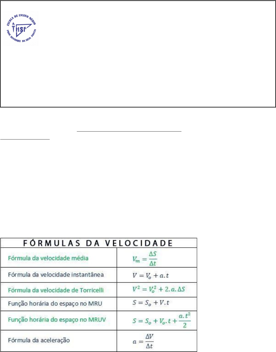 ESCOLA DE EDUCAÇÃO BÁSICA HENRIQUE DA SILVA FONTES NOME:_________________________________________________________________ TURMA: 200 PROFESSORA: URSULA GARCIA BETT COMPONENTE CURRICULAR: FÍSICA NOTA:______________ TRABALHO AVALIATIVO DE FÍSICA OBSERVAÇÕES: - Cada questão tem peso 1,00. - Todas as questões deverão ter o seu desenvolvimento anexado na atividade, lembrando de que o cálculo poderá ser feito a lápis, mas a resposta final deverá ser feita a caneta. - Caso não sejam respeitadas as orientações acima, irei descontar pontos respectivos da atividade. -Lembrando do principal, esta atividade mesmo que seja tempo casa, ela é individual, com consulta ao seu caderno e a sua pessoa, caso eu analise sua atividade e perceba qualquer atividade suspeita de cópia, desconta pontos da sua atividade e a atividade da qual eu achei semelhança, lembrando que plágio é crime, e está previsto em lei. BOA SORTE A TODOS!!! Questão: 1 Uma ave migratória consegue voar a enormes distâncias. Suponha que ela consiga voar com velocidade constante de 10 m/s durante o período de uma semana. Qual terá sido a distância, em quilômetros, percorrida pela ave durante esse período? a) 2056 km b) 6048 km c) 7512 km d) 8600 km Questão: 2 Um navio cargueiro completamente carregado tem uma massa de 1,5. 105 kg. Sabendo que esse navio percorre uma distância de 4000 km em 30 dias com velocidade constante, calcule o valor da força resultante sobre o navio durante o percurso. a) 400.000 N b) 150.000 N c) 0 N d) 3000 N e) 1.200.000 N Questão: 3 No instante de tempo t0, um corpo encontra-se na posição 3 m com relação a um sistema de referência, movendo-se com uma velocidade de 10 m/s. A alternativa que representa corretamente a função horária da posição desse móvel é: a) S = 3 + 10t b) S =10 + 3t c) S = 3t + 5t2 d) S = 10t + 3t2 Questão: 4 Com relação a um corpo que descreve um movimento retilíneo e uniforme, assinale a alternativa correta. a) Um corpo em MU percorre espaços cada vez maiores a cada intervalo de tempo posterior. b) Um corpo em MU percorre distâncias iguais em intervalos de tempos iguais. c) Um corpo em MU move-se com aceleração constante. d) Um corpo em MU permanece em uma posição constante em todos os instantes de tempo. Questão: 5 Sobre dois móveis A e B cujas funções horárias são SA = 15 + 20t e SB = 20 – 5t, são feitas as seguintes afirmações: I – O móvel A descreve um movimento acelerado. II – O móvel B descreve um movimento retrógrado. III – A velocidade de A é 10 m/s. IV – Nos instantes iniciais, A e B se aproximam a cada segundo. São verdadeiras: a) I e IV. b) II e III. c) II e IV. d) III e IV. Questão: 6 Dois carros, A e B, movem-se em uma pista retilínea com velocidades constantes de 20 m/s e 30 m/s, respectivamente. Sabendo que o carro A encontra-se 100 m à frente do carro B, analise as afirmativas a seguir: I – A cada instante de tempo, o carro A se afasta do carro B. II – A velocidade relativa entre os carros é de 10 m/s. III –Em 10 s o carro B terá alcançado o carro A. Está(ão) correta(s): a) I. b) II. c) III. d) II e III. Questão: 7 Dois móveis, A e B, movem-se de acordo com as funções horárias SA = 5 + 3t e SB = 15 + 2t, em unidades do Sistema Internacional. O instante em que esses móveis se encontram é: a) 10 s. b) 20 s. c) 5 s. d) 15 s. Questão: 8 Em um dia normal, um veículo gasta 5 minutos para atravessar uma ponte, movendo-se a uma velocidade de 20 m/s. Com base nos dados apresentados, calcule a extensão dessa ponte, em km. a) 10 km b) 100 km c) 6 km d) 10 km Questão: 9 (UFTPR) Um navio de pesquisa equipado com SONAR está mapeando o fundo do oceano. Em determinado local, a onda ultrassonora é emitida e os detectores recebem o eco 0,6 s depois. Sabendo que o som se propaga na água do mar com velocidade aproximada de 1500 m/s, assinale qual é a profundidade, em metros, do local considerado. a) 450 m b) 380 m c) 620 m d) 280 m e) 682 m Questão: 10 (Famema) De dentro do ônibus, que ainda fazia manobras para estacionar no ponto de parada, o rapaz, atrasado para o encontro com a namorada, a vê indo embora pela calçada. Quando finalmente o ônibus para e o rapaz desce, a distância que o separa da namorada é de 180 m. Sabendo que a namorada do rapaz se movimenta com velocidade constante de 0,5 m/s e que o rapaz pode correr com velocidade constante de 5 m/s, o tempo mínimo para que ele consiga alcançá-la é de: a) 10 s. b) 45 s. c) 25 s. d) 50 s. e) 40 s.