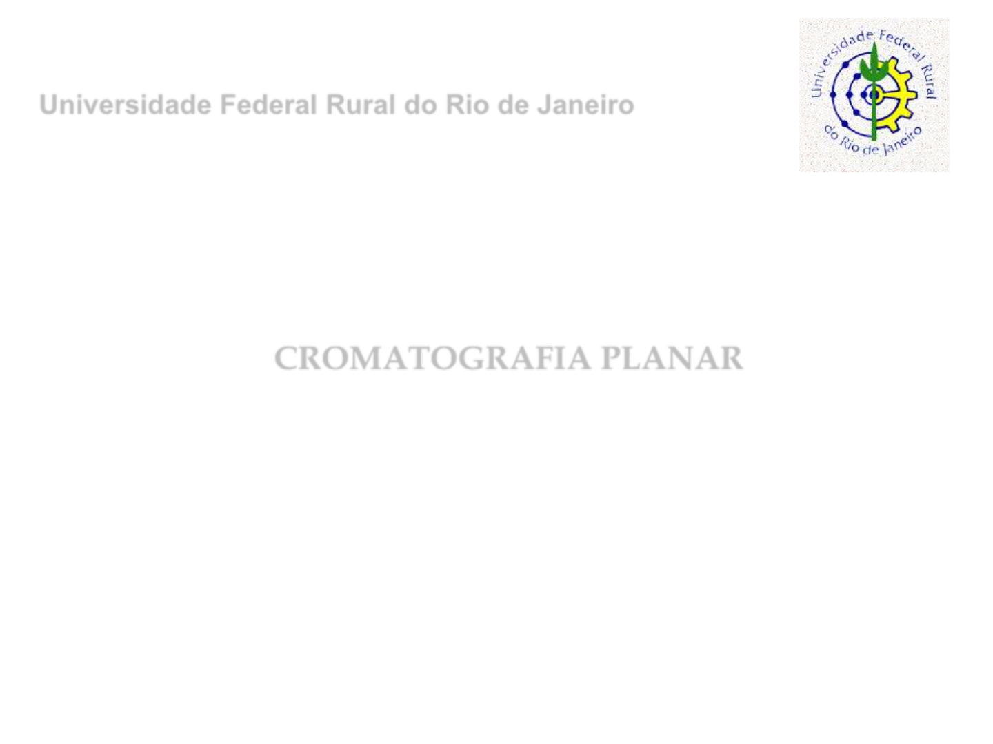 DISCIPLINA IC -363 - CROMATOGRAFIA Departamento de Química Orgânica Instituto de Química Universidade Federal Rural do Rio de Janeiro CROMATOGRAFIA PLANAR Profa Rosane Nora Castro Bibliografia básica: COLLINS, C.H.; BRAGA, G.L.; BONATO,P.S. Fundamentos de Cromatografia. Campinas: Unicamp, 2006 Rosane Nora-2022 1 bruno Realce Rosane Nora-2022 2 Cromatografia CCD CP Líquida CSC Planar Coluna Centrifuga ( Chromatotron) Clássica CLAE CG CGAR Gasosa Fonte: DEGANI et al, 1998 Classificação da Cromatografia bruno Realce bruno Realce bruno Realce bruno Realce bruno Realce 3 • Surgiu em 1941, desenvolvida por Martin e Synge e lhes rendeu o prêmio Nobel de 1952, a mais a simples de todas as técnicas cromatográficas. • Compostos polares hidrossolúveis: açúcares e aminoácidos • Princípio: partição (solubilidade) • Pouca quantidade de amostra • Tipos: ascendente, descendente, bidimensional, circular • F.M. - Sistema de solventes diferentes e miscíveis (água usada) • F.E. - Água retida no polímero da celulose (papel Whatman) • Métodos de detecção: físico-químicos • Análise qualitativa:Rf(fator de retenção) - problema : reprodutibilidade • Análise quantitativa: densitômetro, extração dos solutos 1. Cromatografia em papel (CP)- líquido-líquido Cromatografia Planar Rosane Nora-2022 bruno Realce bruno Nota - Analítico -> analisar bruno Realce bruno Realce bruno Realce bruno Realce bruno Realce bruno Realce 4 A cromatografia em papel (CP) é uma técnica de partição, utiliza dois líquidos (FM e FE) sendo um fixado em um suporte sólido (papel de filtro). Um bom exemplo é a separação da tinta verde. Com o processo de cromatografia é possível verificar que a cor verde é uma mistura de tintura azul e amarela. Fase estacionária líquida suportada na celulose. Fase móvel Separação Rosane Nora-2022 bruno Realce bruno Realce bruno Realce bruno Realce bruno Realce 5 Análise pigmentos de pimentões por CP Cromatogramas dos extratos de pimentões amarelos (1), verdes (2) e vermelhos (3). FM:Hexano:5% Acetona Análise de pigmentos de pimentão por cromatografia em papel. Ribeiro e Nunes, QN Escola, 29, 34-37, 2008 Rosane Nora-2022 bruno Nota Cromóforos = ligações múltiplas em serie. - cor bruno Realce bruno Realce bruno Realce bruno Nota mais polar bruno Nota menos polar Rosane Nora-2022 6 2. Cromatografia Centrifuga . Chromatotron é uma cromatografia de camada fina preparativa (isolar) acelerada centrifugamente Pode substituir pequenas colunas e HPLC. Princípio de operação: A amostra a ser separada é aplicada, como uma solução, na área central de um disco giratório revestida com uma fina camada de adsorvente. A eluição por solvente forma bandas circulares dos componentes separados, que são giradas para fora em conjunto com o solvente. Um sistema de recolhimento traz novamente o eluato para um tubo de saída simples. bruno Realce bruno Realce bruno Nota - separação por difusão radial. bruno Nota - FE , pode ser sólida ou liquida. 7 • Início em 1938 com Izailov e Shraiber, mas começou a ser largamente utilizada na década de 1960. • Técnica simples e barata, separação de uma mistura através da migração por capilaridade diferencial de seus componentes sobre uma camada delgada de adsorvente retido sobre uma superfície plana. • A fase móvel (líquido) ascende por ação de capilaridade por uma camada fina da fase estacionária (adsorvente) aplicada sobre um suporte plano (vidro, alumínio ou filme plástico). 3. Cromatografia em Camada Delgada Analítica- CCDA Okumura et al, Quim. Nova, Vol. 25, No. 4, 680-683, 2002 Rosane Nora-2022 bruno Realce bruno Realce bruno Realce bruno Nota Analítico - analisar Preparativa - isolar Rosane Nora-2022 8 Aplicações de CCDA Determinar a pureza do composto Identificar componentes em uma mistura comparando-os com padrões, Determinar o n de componentes de uma mistura. Determinar o solvente apropriado para a separação por CC, Monitorar uma separação realizada por CC, Verificar a eficiência de uma separação, Acompanhar o curso de uma reação pelo aparecimento dos produtos e desaparecimento dos reagentes. CCD de óleos essenciais reveladas com anisaldeído sulfúrico CCD das frações de P. oleacoides da coluna sephadex LH20 - Hex/AcOEt 1:1; revelador: vanilina sulfúrica bruno Realce bruno Realce bruno Realce bruno Realce bruno Realce bruno Realce bruno Realce 9 Cromatografia em Camada Delgada (CCD ou TLC) Armin F. Isenmann, CEFER-MG Vantagens: fácil compreensão e execução, separações em breve espaço de tempo, versatilidade, grande reprodutibilidade e baixo custo. Rosane Nora-2022 bruno Realce bruno Realce bruno Realce bruno Realce bruno Nota Solvente abaixo da linha. bruno Realce Rosane Nora-2022 10 MEDIDA DO FATOR DE RETENÇÃO ( Rf) ANÁLISE QUALITATIVA: A análise qualitativa com CCD, consiste na determinação do Rf e sua comparação com Rf de padrões Variáveis que influenciam Rf: • espessura da FE • composição da FM, • temperatura ambiente, • grau de saturação da cuba • quantidade da amostra. • Ativação e estocagem das placas bruno Realce bruno Realce bruno Realce bruno Realce bruno Realce bruno Realce bruno Realce bruno Realce bruno Realce bruno Nota Corrida única, assertiva. - ponto mais concentrado da amostra. bruno Nota Medida adimensional, não é um valor tabelado. Rosane Nora-2022 11 Revelação sob luz ultravioleta (254/363 nm): indicado para substâncias com cromóforos (sistemas conjugados), pois absorvem radiação UV e tornam-se fluorescentes. Revelação com vapores de iodo (semidestrutivo): revelador universal para qualquer substância orgânica. Forma manchas marrons. Métodos químicos (destrutivo): a solução do revelador é borrifada com ar comprimido. Após aquecimento ocorre a reação da substância com o revelador formando manchas coloridas. Ex. CeSO4 (Universal) Métodos biológicos: quando há procura por uma subs
