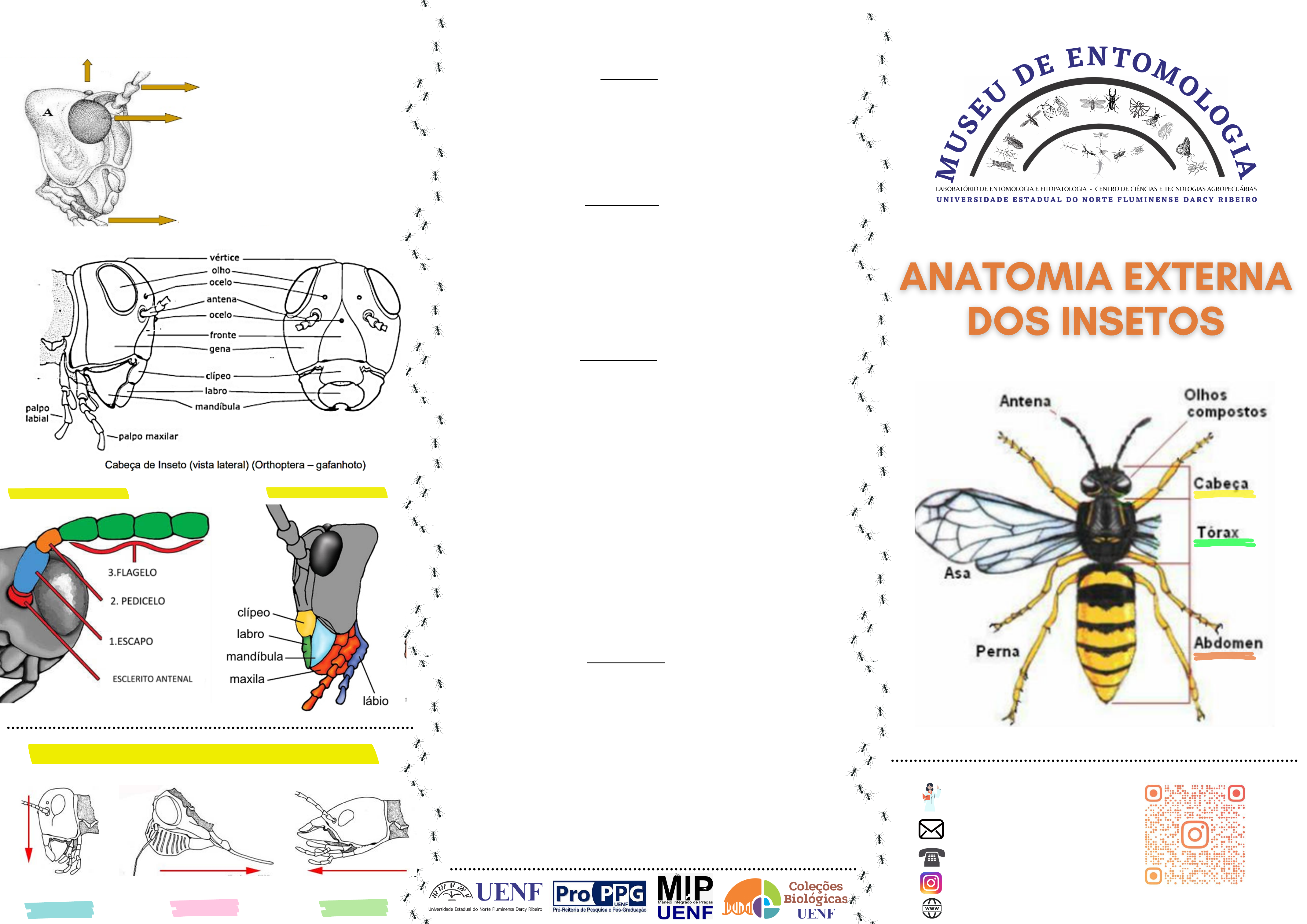 Contatos: Renata C Pereira melef.uenf@gmail.com (22) 2739-7187 @insetoscomciencia https://collectory.sibbr.gov.br/collectory/public/show/co279 Posicionamento da cabeça em relação às peças bucais Hipognata Opistognata Prognata Ocelos Olhos compostos 1 par Antenas 1 par Aparelho bucal variável - mais comum 3 dorsais Infraclasse: Neoptera - dobram as asas sobre o corpo, com articulação por escleritos móveis na base da asa. Todos insetos alados fazem parte da divisão. Existem dois grupos: Divisão: Paraneoptera Hemimetábolos: metamorfose incompleta Ordens Plecoptera Isoptera Blattodea (Blattaria) Mantodea Grylloblattodea* Mantophasmatodea* Phasmatodea (Phasmida) Embioptera (Embiidina) Orthoptera Dermaptera Zoraptera Psocoptera Phthiraptera Thysanoptera Hemiptera Divisão: Endopterygota Holometábolos: metamorfose completa Ordens Neuroptera Megaloptera Raphidioptera* Coleoptera Strepsiptera Diptera Mecoptera Siphonaptera Trichoptera Lepidoptera Hymenoptera Subclasse: Pterygota Infraclasse: Palyneoptera - não dobram as asas sobre o corpo. Hemimetábolos: metamorfose incompleta Ordens Ephemeroptera Odonata Subclasse: Apterygota Insetos mais primitivos Ametábolos: não tem metamorfose Ordens Archaeognatha Thynarura (Zygentoma) * nã o te m re gi st ro n o Br as il Do m ín io : E uk ar yo ta - Re in o: A ni m al ia - Su pe rf ilo : P ro to st om ia - Fi lo : A rth ro po da - Su bf ilo : H ex ap od a - C la ss e: In se ct a CABEÇA Estruturas da antena Estruturas aparelho bucal Aparelhos bucais 3. Ápteros AristadaLameladaSerreadaFlabeladaMoniliformeSetácea GeniculadaPlumosaPectinadaClavadaAristada Tipos de antenas Protórax se une à cabeça 1º par de pernas. Mesotórax segmento mediano 2º par de pernas 1º par de asas. Metatórax se liga ao abdome 3º par de pernas 2º par de asas. Séssil Livre Pendunculado Tipos de pernas 1. ambulatorial 2. saltatorial 3. fossorial 4. natatorial 5. raptorial 6. coletora A. Pseudopodes; B. Brânquias; C. Cercos D. Sinfúnculo; E. Filamento caudal ; F. Estilos CABEÇA Tipos de asas 1. Membranosa 2. Membranosa com escama 3. Élitro 4. Hemiélitro 5. Tégmina 6. Halter ou balancin 1. 2. 4. 5. 6. TÓRAXABDOME Apêncides abdominais Tipos de olhos Olhos compostos Olhos simples Não tem asas Alados Tem asas Dimorfismo sexual Quando o macho e a fêmea de uma mesma espécie são morfologicamente diferentes Hymenoptera: Tiphilidae BrenthidaePhasmatodea LucanidaeDermaptera