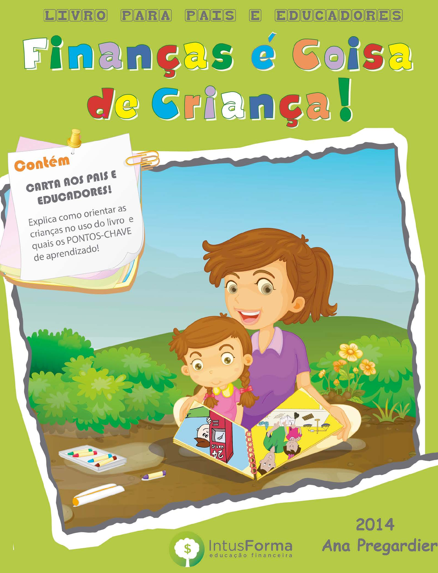 Guia prático 1 “Um país se faz com homens e livros” – Monteiro Lobato Guia prático 1 “Um país se faz com homens e livros” – Monteiro Lobato Seja bem vindo ao livro Finanças é coisa de Criança! Este é um livro prático e foi pensado com muito carinho para ser usado por pais ou educadores que queiram ensinar sobre educação financeira para as suas crianças. Se você quiser, pode já “colocar a mão na massa” e ir direto para o capítulo 3. Lá você encontrará 16 atividades de educação financeira para fazer com as crianças; mas sugerimos que antes de começar, leia pelo menos as informações a seguir. Quando for realizar as atividades com as crianças, é realmente muito importante que leia o texto que está antes da figura para imprimir. Essa leitura dá dicas de como conduzir a atividade para que atinja o objetivo. O livro é dividido em 4 partes, e elas têm objetivos diferentes. Para facilitar o uso e otimizar o tempo que você Aqui você fará um tour pelo livro, e poderá em 5 minutos conhecer o livro de forma prática e rápida. Veja no resumo o que cada capítulo traz e escolha por onde começar. 2 Seja bem vindo ao livro Finanças é coisa de Criança! Este é um livro prático e foi pensado com muito carinho Este é um livro prático e foi pensado com muito carinho para ser usado por pais ou educadores que queiram ensinar sobre educação financeira para as suas crianças. Se você quiser, pode já “colocar a mão na massa” e ir direto para o capítulo 3. Lá você encontrará 16 atividades de educação financeira para fazer com as crianças; mas sugerimos que antes de começar, leia pelo menos as informações a seguir. Quando for realizar as atividades com as crianças, é realmente muito importante que leia o texto que está antes da figura para imprimir. Essa leitura dá dicas de como conduzir a atividade para que atinja o objetivo. O livro é dividido em 4 partes, e elas têm objetivos diferentes. Para facilitar o uso e otimizar o tempo que você Aqui você fará um Aqui você fará um tour pelo livro, e tour pelo livro, e tour poderá em 5 minutos conhecer o livro de forma prática e rápida. Veja no resumo o que cada capítulo traz e escolha por onde começar. 2 tem para ler o livro, vamos colocar um resumo do que trata cada capítulo: - Capítulo 1 - Guia prático Traz informações gerais sobre o livro, uso e manuseio. Aqui você poderá em 5 minutos conhecer o livro. - Capítulo 2 - Um passe de mágica? Esse capítulo mostra como foi o processo de criação e desenvolvimento das atividades. É uma leitura útil para compreender como foi construído o livro e, de que maneira a educação financeira para crianças se evidencia. Até porque, educação financeira é muito mais que dinheiro. - Capítulo 3 - Mãos à obra! Aqui temos 16 atividades práticas que pais e educadores podem realizar com seus filhos ou alunos. Cada atividade conta com um texto de apoio, com dicas pedagógicas e roteiro de aplicação. A leitura do texto de apoio antes da realização da atividade é importantíssima, isso devido o fato de que você poderá ajudar a criança a desenvolver as habi l idades de pensamento responsável e sustentável. - Capítulo 4 - Planejando os sonhos. Nesse capítulo você encontrará uma atividade que poderá fazer com seu filho ou filha para planejar e realizar algum sonho. É importante que o sonho seja algo possível de se fazer em cerca de até 6 meses (o 3 tem para ler o livro, vamos colocar um resumo do que trata cada capítulo: - Capítulo 1 - Guia prático Traz informações gerais sobre o livro, uso e Traz informações gerais sobre o livro, uso e manuseio. Aqui você poderá em 5 minutos conhecer o livro. - Capítulo 2 - Um passe de mágica? Esse capítulo mostra como foi o processo de criação Esse capítulo mostra como foi o processo de criação e desenvolvimento das atividades. É uma leitura útil para compreender como foi construído o livro e, de que maneira a educação financeira para crianças se evidencia. Até porque, educação financeira é muito evidencia. Até porque, educação financeira é muito mais que dinheiro. - Capítulo 3 - Mãos à obra! Aqui temos 16 atividades práticas que pais e Aqui temos 16 atividades práticas que pais e educadores podem realizar com seus filhos ou educadores podem realizar com seus filhos ou alunos. Cada atividade conta com um texto de apoio, com dicas pedagógicas e roteiro de aplicação. A com dicas pedagógicas e roteiro de aplicação. A leitura do texto de apoio antes da realização da leitura do texto de apoio antes da realização da atividade é importantíssima, isso devido o fato de atividade é importantíssima, isso devido o fato de que você poderá ajudar a criança a desenvolver as que você poderá ajudar a criança a desenvolver as habi l idades de pensamento responsável e habi l idades de pensamento responsável e sustentável. - Capítulo 4 - Planejando os sonhos. Nesse capítulo você encontrará uma atividade que Nesse capítulo você encontrará uma atividade que poderá fazer com seu filho ou filha para planejar e realizar algum sonho. É importante que o sonho seja realizar algum sonho. É importante que o sonho seja algo possível de se fazer em cerca de até 6 meses (o 3 que já é longo prazo para uma criança). A sugestão é que comece essa fase depois que passar pelas primeiras três atividades propostas. A licença desse livro permite que você imprima todo o livro ou parte dele, por isso, fique à vontade. Apenas indicamos que siga a ordem das atividades, pois elas foram construídas de forma gradativa e com links entre os assuntos. Agora é só começar! Esperamos que aproveitem e se divirtam com a Educação Financeira. 4 que já é longo prazo para uma criança). A sugestão é que comece essa fase depois que passar pelas primeiras três atividades propostas. A licença desse livro permite que você imprima todo o livro ou parte de