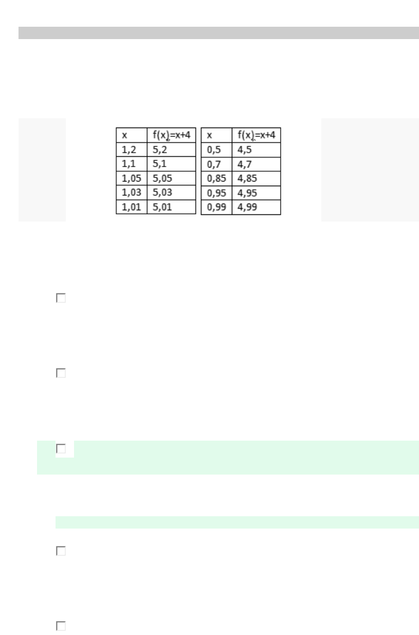 AOL 3 - Cálculo Conteúdo do exercício 1. Pergunta 1 0/0 Um pesquisador, durante o experimento, após análise da interação entre duas proteínas, era dado por f(x) = x + 4. X = tempo em segundos. Que gerou a seguinte tabela. Usando a noção intuitiva, qual o valor de f(x) quando x tende 1? Ocultar opções de resposta 1. 6 2. 7 3. 5 Resposta correta 4. 9 5. 4,5 2. Pergunta 2 0/0 Um estudo ambiental realizado em um lago próximo a uma mineradora, mostrou que a taxa de mercúrio em t(anos) será igual Q(t) = 0,05t2 + 0,1t + 3,4 milímetros de mercúrio. Qual será a taxa de variação no primeiro ano? Ocultar opções de resposta 1. 3,4 milímetros de mercúrio. 2. 0,8 milímetros de mercúrio. 3. 0,15 milímetros de mercúrio. Resposta correta 4. 3,55 milímetros de mercúrio. 5. 0,6 milímetros de mercúrio. 3. Pergunta 3 0/0 Qual o valor de b para que a função abaixo seja contínua em x=2 ? Ocultar opções de resposta 1. 5 2. 10 3. 2 4. 96 5. 1 Resposta correta 4. Pergunta 4 0/0 Sabemos que uma população cresce na taxa de P(x) = x2 + 20x +800, com x dado em meses. Qual será a taxa de variação em 20 meses? Ocultar opções de resposta 1. Incorreta: 60 habitantes por mês. 2. 2000 habitantes por mês. 3. 300 habitantes por mês. 4. 1600 habitantes por mês. 5. 80 habitantes por mês. Resposta correta 5. Pergunta 5 0/0 Ocultar opções de resposta 1. 390 2. 420 3. 380 4. 500 5. 300 Resposta correta 6. Pergunta 6 0/0 Sendo a quantidade de um medicamento medida em relação à função C=C(t) pelo tempo em dias, e a quantidade de pessoas consumidoras do medicamento dada por H=H(t). Qual a expressão que determina a quantidade de comprimidos que é consumido diariamente? Ocultar opções de resposta 1. II 2. IV 3. I Resposta correta 4. V 5. III 7. Pergunta 7 0/0 O crescimento de uma população de bactéria se dá pela seguinte equação N(t)=150.e^(t/3). Qual era a quantidade de bactéria no tempo inicial ? Ocultar opções de resposta 1. 100 2. 300 3. 430 4. 150 Resposta correta 5. 200 8. Pergunta 8 0/0 Um jogador de futebol lança a bola para seu parceiro com deslocamento é dada pela seguinte função s(t)=16t2 em metros. Qual a velocidade e distância percorrida da bola entre os intervalos de 2-2,5s? Ocultar opções de resposta 1. 40m e 30 seg 2. 56m e 80 seg 3. 40m e 30 seg 4. 36m e 72m/seg Resposta correta 5. 70m e 80 seg 9. Pergunta 9 0/0 A temperatura da terra varia de acordo com a altitude. Essa variação é dada por T=59-0,0356h (h=altitude em pés e temperatura em °C). Qual a taxa de variação instantânea? Ocultar opções de resposta 1. IV 2. III 3. II 4. V 5. I Resposta correta 10. Pergunta 10 0/0 Considerando os limites abaixo, qual deles não apresenta solução ? Ocultar opções de resposta 1. III 2. II 3. I 4. IV 5. V Resposta correta