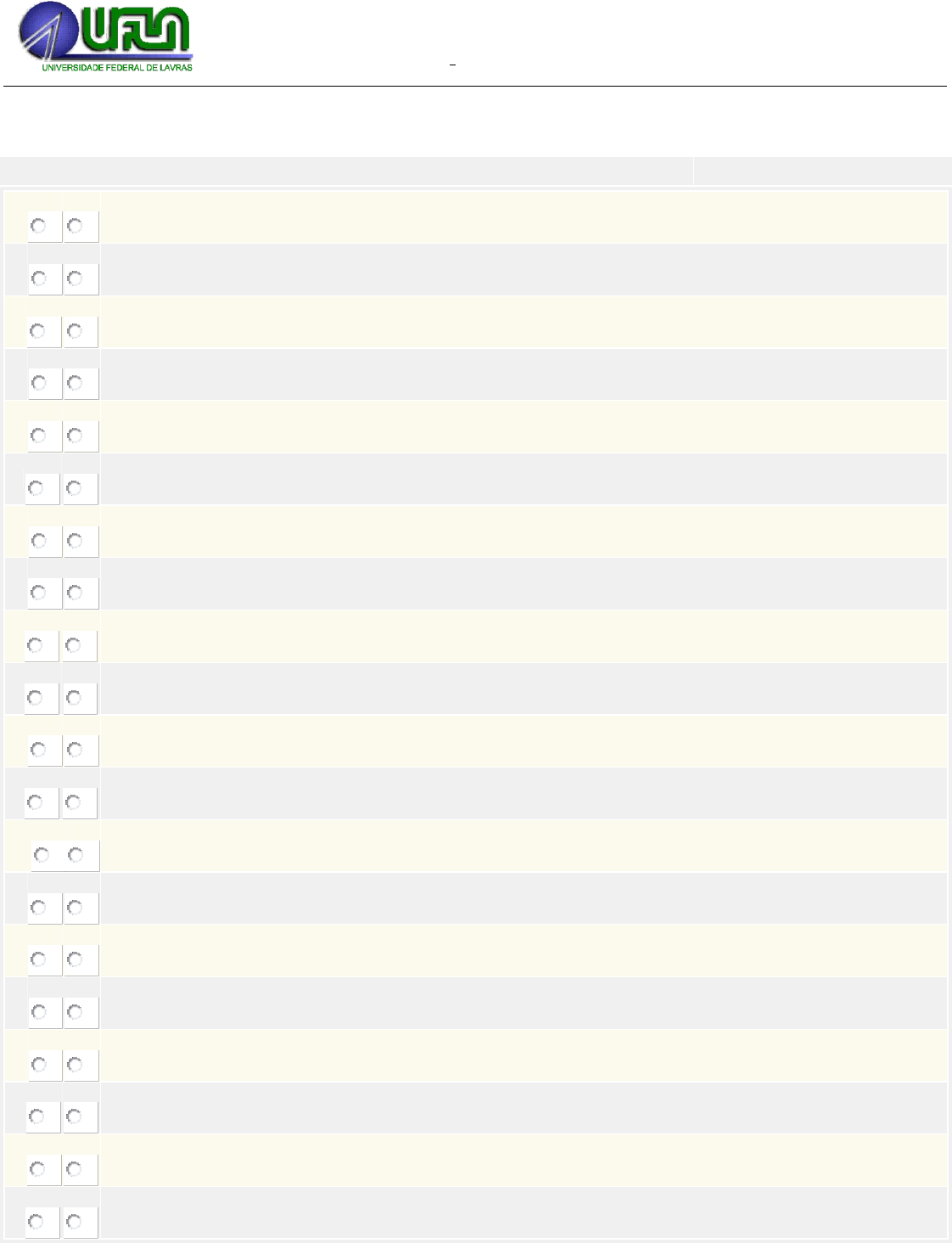 UNIVERSIDADE FEDERAL DE LAVRAS DEPTO DE CIÊNCIA DO SOLO GCS 102 - PEDOLOGIA Profa. Adélia Aziz Alexandre Pozza Exercícios para treinamento Aluno:............................................................................................................................Matric.....................Turma......... 1) Leia as alternativas abaixo e assinale V para verdadeiro e F para falso. a) V F As rochas são materiais naturais formados pela associação de minerais que, após sofrerem intenso desgaste, darão origem aos solos. b) V F As rochas ígneas são originadas do resfriamento do magma. c) V F As rochas plutônicas o resfriamento do magma ocorre na superfície. d) V F As rochas metamórficas são originadas pela transformação de rochas preexistentes. e) V F São exemplos de rochas sedimentares o mármore e ardósia. f) V F A variação de temperatura é o principal agente do intemperismo físico. g) V F A água é o principal agente do intemperismo químico. h) V F Perfil do solo é o corte horizontal feito no solo sendo possível a distinção dos horizontes. i) V F O solo é constituído por minerais, ar, água, e material orgânico. Sendo que o ar e a água ocupam o espaço poroso, e o húmus o principal mineral do solo. j) V F As partículas de maiores diâmetro são as matações e as menores são as argilas. k) V F As areias são as partículas mais ativas do solo com alta capacidade de retenção de cátions. l) V F As argilas são divididas em silicatadas e oxídicas. m) V F As argilas silicatadas indicam um estádio mais avançado de intemperismo do que as oxídicas. n) V F A união do agregados formam a estrutura do solo, podem ser laminar, prismática, blocos ou granular. o) V F A variação da intensidade das forças de coesão e adesão sob influência da oxigenação forma a consistência. p) V F Quando o solo está úmido e quebra com facilidade ele encontra-se na consistência friável. q) V F O solo deve ser arado quando a consistência for plástica ou pegajosa. r) V F Um solo que apresenta estrutura bem definida possui maior capacidade de infiltração e retenção de água. s) V F As argilas oxídicas 1:1 possuem maior capacidade de contração e expansão do que as argilas silicatadas 2:1. t) V F O solo é variável tridimensionalmente e está em constante modificação provocada pelos agentes do intemperismo. 2. Assinale (V) para verdadeiro e (F) para falso: ( ) Solos que possuem alto teor de argilas silicatadas 2:1 apresentam menor rachaduras que solos com maior teor de argilas oxídicas. ( ) As argilas oxídicas, após sofrerem a atuação do intemperismo, darão origem às argilas silicatadas 1:1. ( ) Em regiões onde as chuvas são escassas há maior possibilidade de ocorrências nos solos de argilas silicatadas 2:1. ( ) Quanto maior a CTC de um solo, maior a capacidade de reter nutrientes para as plantas. 3. A adubação baseia-se na devolução dos nutrientes perdidos ao solo. Uma forma de perder esses nutrientes é através das plantas, que os absorvem durante a fotossíntese. Outra forma de o solo perder os nutrientes é por: erosão. Com base no que você acabou de aprender, por que devemos entender a CTC para fazermos adubação nos solos? 4. Como você avalia, em campo, a consistência do solo? 5. Se o solo estiver pegajoso, quais são suas características? Identifique, nas opções a seguir, quais são elas: 1. ( ) Ao esfregar o solo entre os dedos indicador e polegar você sentirá a sensação de vidro moído entre os dedos. 2. ( ) Ao esfregar o solo entre os dedos indicador e polegar você sentirá a sensação de talco entre os dedos. 3. ( ) Ao tentar moldar uma porção de solo, você não conseguirá, pois ele fcará aderido aos seus dedos. 6. É aconselhável trabalhar um solo pegajoso? Por quê? 7.Antônio foi passar um final de semana na fazenda de seus avós. Numa bela tarde de domingo, após o almoço, com a família reunida na varanda da casa, chega o seu primo Júnior, com um pedaço de rocha na mão, e fala: “Esta é uma rocha sedimentar. Eu a peguei lá no alto do morro.” Você acha que a rocha encontrada por Júnior pode ser uma rocha sedimentar? 8. Enumere os eventos que constituem a pedogênese: ( ) Pequenos vegetais e animais colonizam fissuras úmidas da rocha, aumentando sua deterioração. ( ) A rocha se torna exposta aos diversos agentes do intemperismo. ( ) Substâncias químicas acumuladas na rocha tornam a água acumulada ácida, acelerando o processo de degradação da rocha. ( ) A água se dilata e contrai, aumentando pequenas rachaduras da rocha. 9.Todas as rochas podem passar por essa sequência de eventos. Isso significa que os solos são todos iguais, já que são formados pelos mesmos eventos? Discuta. 10.Agora que você viu como utilizar um triângulo textural, vamos praticar. Qual a classe textural de um solo que possui 10% de argila, 10% de silte e 80% de areia? Utilize o triângulo a seguir para a resolução do problema. 11.Veja a conversa de Antônio com um ajudante do sítio de seu avô: Ô, Antônio! Um dia eu estava fazendo uma cerca e percebi que conforme eu furava o chão iam aparecendo umas camadas de cor diferente. O solo se torna diferente conforme a profundidade? Esta diferença em profundidade tem nome? O que você acha? Ajude Antônio a esclarecer a dúvida. Formule uma resposta com base nos conceitos de perfil e horizontes de solo que você estudou. 12.Agora que vimos sobre cada uma das classes de textura dos solos, relacione as colunas: Solos arenosos ( ) apresentam equilíbrio entre os teores de areia, silte e argila; normalmente apresentam boa drenagem, boa capacidade de retenção de água e nutrientes. Solos argilosos ( ) possuem teores de areia superiores a 70% e o de argila inferior a 15%, são permeáveis, leves, com baixa capacidade de retenção de água e nutrientes e de baixo teor de matéria orgânica. Solos textura média ( ) são solos com teores de argila superiores a 35%, po