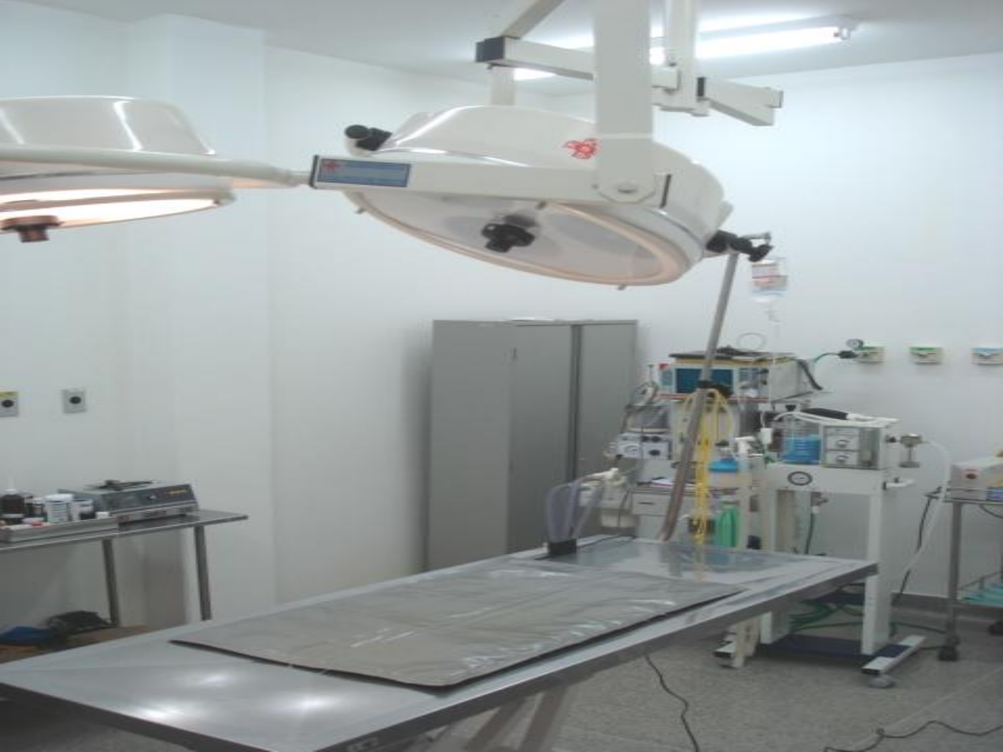 Centro e Equipamentos Cirúrgicos Paciente e Equipe Cirúrgica UNIVERSIDADE FEDERAL DA BAHIA ESCOLA DE MEDICINA VETERINÁRIA DEPARTAMENTO DE PATOLOGIA E CLÍNICAS •Docentes •Carlos Humberto Almeida Ribeiro Filho •Deócles Teixeira da Silva •João Moreira da Costa Neto •Doutorando Emanoel Ferreira Martins Filho •Mestrandos •Vinícius de Jesus Moraes •Deusdete C. Gomes Junior •Acadêmicos •George Willane M. S. Mercês •Joelma Silva de Jesus Diana Mello Teixeira Centro Cirúrgico • Objetivo • Instalações e equipamentos – Portas – Paredes – Piso – Limpeza •Isolamento •Movimentação Centro Cirúrgico Ambientes de Circulação • Zona contaminada ou área irrestrita • Zona mista ou área semi-restrita • Zona limpa ou área restrita Zona Contaminada • Área onde se pode utilizar roupas comuns • Área de recepção do paciente • Sala de pré-operatório • Sala de anestesia • Vestiários Zona Mista • Pijama cirúrgico • Corredores entre as salas do centro cirúrgico • Área de processamento de instrumentos Zona Limpa • Pijama cirúrgico + gorro + máscara + propé • Sala de paramentação • Salas de materiais esterilizados • Salas cirúrgicas • Paciente • Equipe Cirúrgica • Material Cirúrgico Protocolo de Circulação • Fluxo em único sentido • Ao sair da área mista para a contaminada deve- se cobrir as roupas antes de sair e descartar esses itens ao retornar • Portas entre áreas devem ser mantidas fechadas • Roupas sujas e o lixo devem ser mantidos numa área específica do centro cirúrgico enquanto esperam sua saída Instalações • Vestiário • Sala de pré-operatório e anestesia • Sala de suprimentos de anestesia • Sala de suprimentos estéreis • Sala de material de limpeza • Farmácia • Sala de paramentação • Sala de cirurgia • Sala de pós-operatório • Sala cirúrgica para pequenos procedimentos • Central de gases Vestiários • Acesso restrito • Funcionalidade • Armários • Descarte Sala de Pré-operatório • Objetivo • Aço inoxidável – Mesa, Pia, Balcão, Superfícies, Macas – Maquina de tosquia, laminas de barbear, aspirador • Iluminação • Lixo Sala de Pré-operatório – UCC UFBA Sala de Anestesia • Objetivo • Equipamento – Fluidos, Cateteres, Agulhas – Sondas, Xilocaina, Laringoscopio, Desfibrilador, Gases, Medicamentos – Lixo UCC Unime UCC Unime •Novo C. C. EMEV •Novo C. C. EMEV Sala de Suprimentos de Anestesia • Deve-se encontrar o equipamento necessário para a anestesia – sondas endotraqueais – cateteres – equipamentos de monitoração anestésica – tanques de oxigênio portáteis – mangueiras – conectores de vias aéreas – agentes anestésicos não gasosos • Deve ser adjacente à sala de anestesia Sala de Material de Limpeza • Onde são guardados os materiais usados para limpar e descontaminar a sala de cirurgia e o centro cirúrgico Sala de Suprimentos Estéreis • Instrumentos e materiais esterilizados e embalados – Aventais – Toalhas – Panos de campo – Panos Fenestrados – Panos de mesa – Compressas • Gaze, Fralda – Kits cirúrgicos Farmácia • Objetivo • Controle de medicamentos – Retorno de ampolas vazias – Responsabilização dos profissionais envolvidos Farmácia - UCC UFBA Sala de Paramentação • Objetivo – Pias equipadas com ativadores – Limpadores de unha e escovas esterilizadas – Obs. Sala de Paramentação – UCC Unime Sala de Paramentação Antiga UCC UFBA Sala de Paramentação Antiga UCC UFBA Sala de Cirurgia • Espaço Físico • Ventilação • Temperatura e Umidade • Mobiliário e Equipamentos • Iluminação Sala de Cirurgia – Espaço Físico • Espaço • Limpeza • Pisos e paredes Sala de Cirurgia - Ventilação • Ventilação – Exaustão • remoção de odores, calor e gases anestésicos voláteis – Controle bacteriológico – Pressão positiva no interior da sala Sala de Cirurgia - Ventilação • É recomendável que a sala de cirurgia, tenha portas de correr não embutidas – Evita turbulência do ar • Visores de vidro nas portas – Evita aberturas desnecessárias Sala de Cirurgia – Temperatura e Umidade • A temperatura e umidade devem ser mantidas constantes, em torno de 21ºC a e 50% de umidade – Evita hipotermia • animais normotérmicos – Evita desidratação – Evita sudorese – Atuação de fármacos Sala de Cirurgia – Mobiliário e Equipamentos – Mínimo – Armários (embutidos) • Materiais de sutura • Substâncias/Instrumentos de uso comum – Equip. anestesia + monitores – Lixo – Suportes – Emergência – Aspirador de fluidos orgânicos – Focos Sala de Cirurgia - Iluminação Eliminação das sombras Conforto para o cirurgião Lâmpadas fluorescentes - Cuidado Focos de teto Foco auxiliar Sala de Pós-operatório • Objetivo • Monitoramento • A temperatura desta sala deve ser maior do que as das salas cirúrgicas, variando entre 21,1°C a 25°C • Gaiolas individuais, providas de fonte de oxigênio e com possibilidade de aquecimento Sala de Pós-operatório • Deve-se encontrar disponíveis equipamentos, materiais e medicamentos que possam ser necessários em uma emergência • A sala de pós-operatório deve ser adjacente à sala cirúrgica Sala de Pós-operatório – UCC UFBA Sala de Pós-operatório – UCC Unime Novo C. C. EMEV Sala Cirúrgica para Pequenos Procedimentos • Procedimentos contaminados – Biópsias – Procedimentos dentários – Retirada de drenos e suturas • Deve estar equipada com equipamentos similares e possuir as mesmas características físicas da sala cirúrgica Central de Gases • Instalação – Devido ao risco de explosão – Facilitar a recarga • Padronização Equipe Cirúrgica Equipe Cirúrgica • Composta por: – Cirurgião chefe – Cirurgião auxiliar – Anestesista – Instrumentador – Enfermeiros • Tamanho da equipe varia de acor