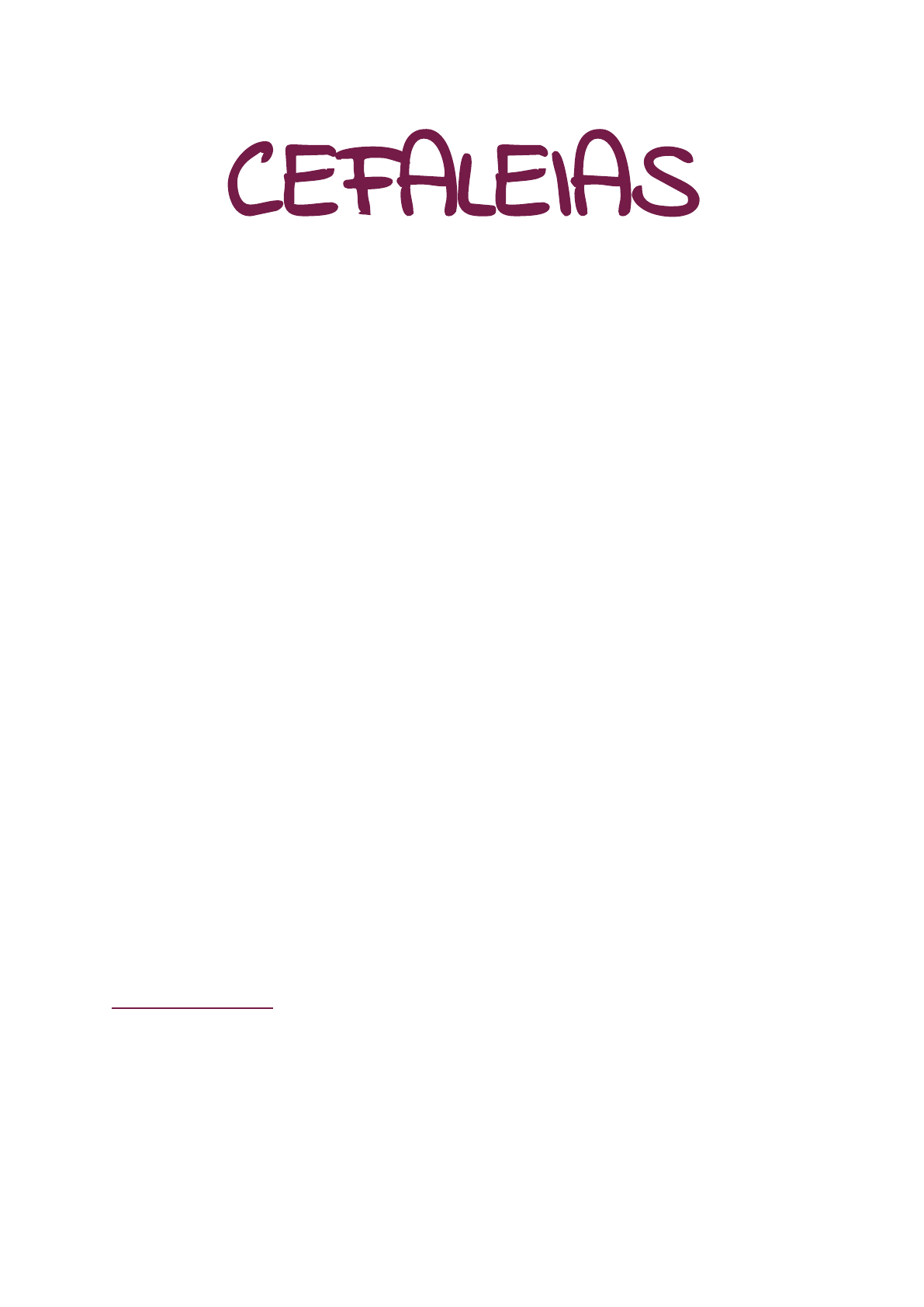 CEFALEIAS Primeiro passo: "Definir se a cefaleia é primária ou secundária" Primária: ● História de recorrência; ● Exame físico normal. Secundária: ● Sinais de alarme: ○ Início após os 50-55 anos; ○ Pior cefaleia da vida; ○ Cefaleia de início súbito; ○ Cefaleia de cárter progressivo; Sugestivo de expansão em SNC. ○ Sinal neurológico focal; ○ Achados sistêmicos associados; ○ Doenças sistêmicas; HIV;Neoplasias. ○ História de queda ou TCE recente; ○ Edema de papila. Exames complementares: "Dependem da sua suspeita diagnóstica" Cefaleias primárias: Enxaqueca (migrânea): Tipos: ● Clássica ou com aura; ● Comum ou sem aura (80% dos casos). Epidemiologia: ● 2ª mais comum; ● Mais comum em mulheres; ● História familiar. Clínica: ● Dor pulsátil/latejante; ● Geralmente unilateral; ○ Na criança geralmente é bilateral. ● Forte intensidade; ● Incapacitante; ● Piora com o movimento; ● Duração de 4 a 72h. Sintomas associados: ● Náuseas; ● Vômitos; ● Fotofobia; ● Fonofobia e osmofobia. Pode haver presença de aura: ● Sinal neurológico focal (mais comum - visual): ○ Geralmente precede a cefaleia; ○ Dura próximo de 1h. Tratamento: "O máximo de analgesia ideal é 2x/semana. Por isso, nada de analgesia de 6/6h" Abortivo (tirar das crises): ● Triptanos (escolha) - agonistas 5HT1; ○ Mais forte é no rizatriptano. ● Analgésicos e AINE; ● Metoclopramida; **Não resolveu: corticoide ou clorpromazina. Profilaxia: "Indicado quando mais de 3 a 4 crises por mês - em crianças quando há importante comprometimento das atividades básicas" ● Betabloqueador (escolha) Ex.: Atenolol e propranolol; ● Antidepressivos tricíclicos Ex.: Amitriptilina e nortriptilina; ● Bloqueador de canal de cálcio Ex.: Flunarizina; ● Anticonvulsivantes Ex.: Valproato e topiramato. **Todos engordam, menos o topiramato. Cefaleia tensional: Epidemiologia: ● A cefaleia mais comum; ● Mais comum em mulheres. Clínica: ● Dor opressiva; ● Bilateral; ● Leve a moderada; ● 30min a 7 dias. Sintomas associados: ● Hiperestesia; ● Hipertonia da musculatura pericraniana. Tratamento: Abortivo (crise): ● Analgésicos e AINE. Profilaxia (>15 dias de crise/mês - a chamada cefaleia tensional crônica): ● Amitriptilina ou nortriptilina. Cefaleia em salvas: "Cefaleia trigemino-autonômica com períodos de ataque e períodos de melhora" Epidemiologia: ● Rara; ● Mais comum em homem. Fator desencadeante: ● Etilismo. Clínica: ● Dor em "facada"; ● Unilateral e periorbitária; ● Insuportável; ● Duração de 15 a 180min. Sintomas associados: ● Hiperemia conjuntival; ● Lacrimejanto; ● Congestão nasal; ● Sudorese facial; ● Miose; ● Ptose; ● Edema palpebral. ** Na primeira crise o ideal é fazer imagem. Tratamento: Abortivo (crise): ● Oxigênio em alto fluxo (escolha); ● Triptanos SC (como o sumatriptano). Profilaxia (a partir da 1ª crise): ● Verapamil (escolha) - dose alta; ● Valproato. Cefaleia súbita: "Pense no evento hemorrágico" Subaracnoide: "Mais comum de romper é a comunicante anterior" Pricipal etiologia: ● Aneurisma sacuolar congênito. Tríade: ● Cefaleia súbita e intensa; ● Queda do nível de consciência; ● Rigidez de nuca (mais tardia). Intraparenquimatoso: "Mais comum de romper são os microaneurismas de Charcot-Bouchard, secundários à HAS" Local mais comum de sangramento: ● Putâmen. Tríade: ● Cefaleia súbita intensa; ● Queda do nível de consciência; ● Sinal neurológico focal. ○ Mais comum é a hemiparesia. NOTE: Cefaleia sentinela ocorre dias a semanas antes da ruptura completa do aneurisma. Tem forte intensidade e pode ser acompanhada de náuseas e vômitos. Representa um pequeno sangramento do aneurisma, sem consequências catastróficas.