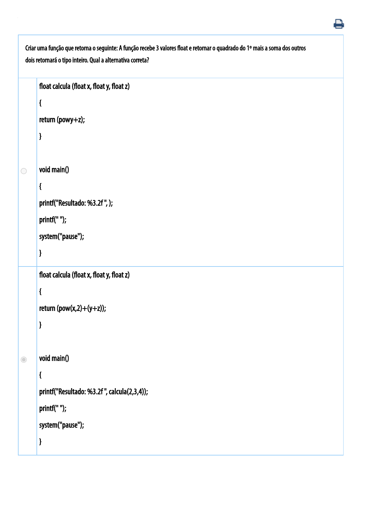 printf("Resultado: %3.2f ", calcula(2,3,4));