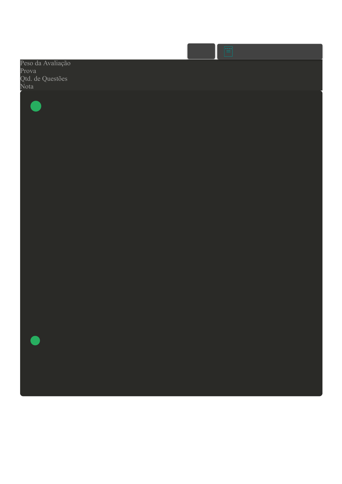03/09/2022 17:18 Avaliação da Disciplina about:blank 1/11 Prova Impressa GABARITO | Avaliação da Disciplina (Cod.:644837) Peso da Avaliação 10,00 Prova 54289741 Qtd. de Questões 20 Nota 8,50 O movimento mundial pela inclusão é uma ação política, cultural, social e pedagógica, desencadeada em defesa do direito de todos os alunos de estarem juntos, aprendendo e participando, sem nenhum tipo de discriminação. A educação inclusiva constitui um paradigma educacional fundamentado na concepção de direitos humanos, que conjuga igualdade e diferença como valores indissociáveis, e que avança em relação à ideia de equidade formal ao contextualizar as circunstâncias históricas da produção da exclusão dentro e fora da escola (POLÍTICA NACIONAL DE EDUCAÇÃO ESPECIAL NA PERSPECTIVA DA EDUCAÇÃO INCLUSIVA - BRASIL, 2008). Fonte: BRASIL. Política Nacional de Educação Especial na Perspectiva da Educação Inclusiva. Documento elaborado pelo Grupo de Trabalho nomeado pela portaria n. 555/2007, prorrogada pela portaria n. 948/2007, entregue ao ministro da Educação em 7 de janeiro de 2008. Disponível em: <http://portal.mec.gov.br/arquivos/pdf/politicaeducespecial.pdf>. Acesso em: 23 jun. 2022. Nesse sentido, políticas normativas sobre a educação especial foram implementadas no Brasil. Sobre elas, classifique V para as sentenças verdadeiras e F para as falsas: ( ) O Decreto nº 6.571-2008, o Parecer CNE n° 13/2009 e a Resolução CNE nº 4/2009, são marcos importantes na implantação de uma política de Educação Especial na perspectiva da educação inclusiva. ( ) O Decreto n° 7.611/2011 dispõe, dentre outras providências, sobre o atendimento educacional especializado. ( ) A lei nº 9394/96, de 1996, define os métodos e técnicas de ensino para a educação especial. ( ) O documento Subsidiário para implementação de normas técnicas das políticas da educação na perspectiva da educação inclusiva, de 2015, define os princípios, propostas, estratégias e recursos da ação ao aluno com necessidades educativas especiais. Assinale a alternativa que apresenta a sequência CORRETA: A F – V – V – V. B V – V – F – V. C V – F – V – F. D V – V – F – F. VOLTAR A+ Alterar modo de visualização 1 03/09/2022 17:18 Avaliação da Disciplina about:blank 2/11 A triagem do desenvolvimento neuropsicomotor (DNPM) infantil refere-se ao processo de aplicação de testes em uma ampla população de crianças, a fim de detectar de forma prática e padronizada riscos ou atrasos no desenvolvimento1-3. Em relação aos fatores associados a atrasos, destacam-se aspectos que vão desde concepção, gravidez e parto, até causas neurológicas, má nutrição, fatores ambientais, familiares e socioeconômicos, ocasionando condições de atraso permanentes ou transitórias, pressupondo um acompanhamento infantil adequado e periódico (LIMA; CAVALCANTE; COSTA, 2016). Fonte: LIMA, Samyra Said de; CAVALCANTE, Lília Iêda Chaves; COSTA, Elson Ferreira. Triagem do desenvolvimento neuropsicomotor de crianças brasileiras: uma revisão sistemática da literatura. Fisioterapia e pesquisa, v. 23, p. 336-342, 2016. Disponível em: <https://www.scielo.br/j/fp/a/FhzPHjfxRhQZjsZDCs75QDP/?lang=pt>. Acesso em: 23 jun. 2022. Sobre triagem e avaliação do desenvolvimento neuropsicomotor, analise as seguintes afirmativas: I – A avaliação do desenvolvimento neuropsicomotor foi inclusa na promoção ao desenvolvimento infantil pelo setor público na área da saúde e da educação. II – Os resultados das avaliações possibilitam traçar um perfil fidedigno de como a criança é e como irá se desenvolver como indivíduo. III – A avaliação possibilita a identificação de transtornos específicos do desenvolvimento que atingem a criança, permitindo determinar quocientes de desenvolvimento. IV – É o uso de um método com normas e parâmetros de análise com objetivo de conhecer, mensurar, definir e avaliar a condição que se encontra a criança, com a finalidade de estimular e viabilizar os processos de aprendizagem e desenvolvimento. Assinale a alternativa CORRETA: A As afirmativas I, III e IV estão corretas. B As afirmativas I, II e IV estão corretas. C As afirmativas II e III estão corretas. D As afirmativas I e IV estão corretas. No Brasil, a partir dos anos 1980, foram adotados os programas follow-up com o propósito de alcançar crianças em situação de risco. Os programas preveem o acompanhamento longitudinal do crescimento e o desenvolvimento neuropsicomotor e, para tal feito, fez-se necessário a adoção de instrumentos de triagem e avaliação para o acompanhamento e registro do progresso das crianças. Sobre os programas, classifique V para as sentenças verdadeiras e F para as falsas: ( ) Os programas devem valorizar a observação direta, incluir a família no processo, a realização sistematizada de exames neurológicos, a avaliação dos marcos de desenvolvimento e a realização de testes de tiragem. ( ) A ficha de acompanhamento do desenvolvimento e o Manual de vigilância do desenvolvimento infantil no contexto da atenção integrada às doenças prevalentes na infância (AIDPI) são utilizados pelos pediatras para acompanhar todas as crianças brasileiras. ( ) A Academia Americana de Pediatria recomenda que todas as crianças devem ser testadas em triagem padronizada aos doze, 24 e 48 meses. ( ) O acompanhamento de crianças pelos programas é obrigatório no Brasil desde os anos 1980, aprovado pelo Ministério da Saúde juntamente ao Manual de vigilância do desenvolvimento infantil no contexto da atenção integrada às doenças prevalentes na infância (AIDPI). Assinale a alternativa que apresenta a sequência correta: A F – V – F – F. 2 3 03/09/2022 17:18 Avaliação da Disciplina about:blank 3/11 B F – V – V – V C V – V – F – F. D V – F – V – F. Dentro do plano de negócios, na etapa que trata da análise 