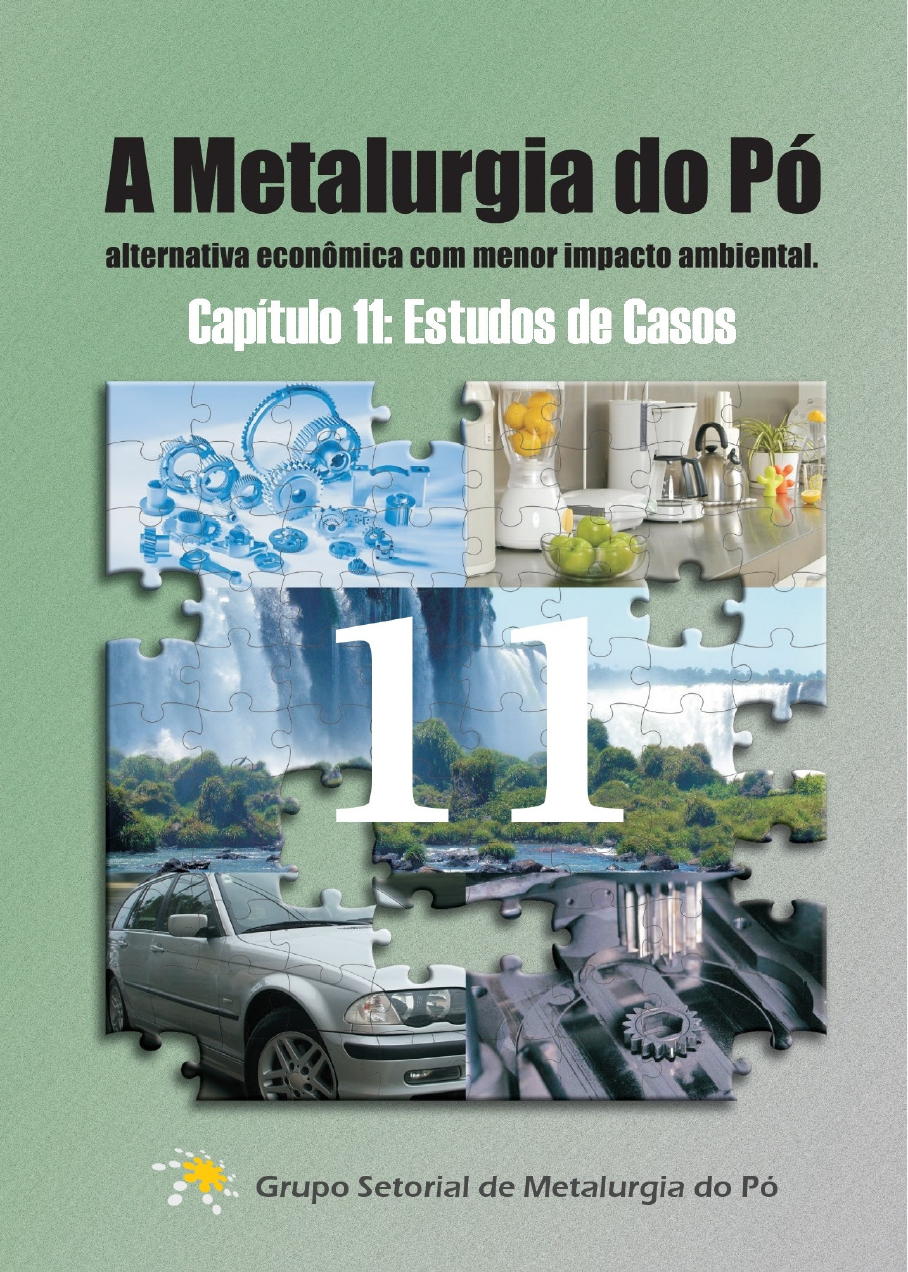 DIREITOS AUTORAIS O material contido neste documento é parte integrante do livro A METALURGIA DO PÓ: alternativa econômica com menor impacto ambiental Autor: Grupo Setorial de Metalurgia do Pó Editora: METALLUM EVENTOS TÉCNICOS E CIENTÍFICOS I.S.B.N.: 978-85-62404-00-9 Edição: 1ª Ed. / 2009; Idioma: Português; País de Origem: Brasil Seu conteúdo apresenta 15 estudos de casos de conversão para material sinterizado e poderá ser reproduzido parcialmente ou totalmente, ser utilizado na elaboração de outra obra, ser utilizado em trabalhos acadêmicos ou profissionais, apresentações eletrônicas, web sites ou qualquer outro meio de divulgação ou formato de mídia, desde que a obra original seja referenciada como fonte da informação, assim como o site www.metalurgiadopo.com.br. Os casos apresentados devem ser considerados apenas como referência. As especificações corretas para o desenvolvimento de um novo produto só poderão ser definidas por uma empresa ou profissional capacitado, mediante o estudo da aplicação do componente a ser desenvolvido. ESTE MATERIAL NÃO PODERÁ SER ASSOCIADO A EMPRESAS QUE NÃO SEJAM PARTICIPANTES DO GRUPO SETORIAL DE METALURGIA DO PÓ. Grupo Setorial de Metalurgia do Pó 3 A Metalurgia do Pó – alternativa econômica com menor impacto ambiental Grupo Setorial de Metalurgia do Pó www.metalurgiadopo.com.br 11 ESTUDOS DE CASOS Nas páginas a seguir são exemplificados vários casos de conversão de peças estruturais para o sinterizado. São peças que eram antes fabricadas por outros processos tais como usinagem, fundição, microfusão, forjamento, estampagem, trefilação ou laminação, dentre outros. São apresentadas também as vantagens obtidas em cada uma das conversões. De forma resumida, os benefícios obtidos nestas conversões foram: • Melhora no desempenho do produto final • Maior precisão dimensional • Melhora da resistência mecânica • Melhora das propriedades tribológicas • Propriedades autolubrificantes • Eliminação de processos poluentes • Redução de custo • Redução do ruído • Redução do número de etapas de fabricação • Redução do número de componentes na peça • Redução do lead-time de fabricação • Redução do peso final As possibilidades de ganho são infinitas. Dependem da criatividade e proatividade de cada profissional envolvido na fabricação do produto. Capítulo 11 – Estudos de Casos 4 Grupo Setorial de Metalurgia do Pó www.metalurgiadopo.com.br Caso 1: Anel para freio ABS Aplicação: Automobilística - Sistema de freio ABS. Projeto original: Material: aço SAE 1020 Peça fabricada a partir de dois componentes estampados. Processo: estampagem, montagem com rebites, usinagem e cromatização. Conversão para o sinterizado: Material: aço sinterizado DIN D35 Processo: Compactação, sinterização, usinagem, rebarbação, ferrox e zincagem. Comentários: Vantagens em redução de peso e melhor precisão dimensional, importante na montagem do conjunto. 5 A Metalurgia do Pó – alternativa econômica com menor impacto ambiental Grupo Setorial de Metalurgia do Pó www.metalurgiadopo.com.br Caso 2: Anel sincronizador Aplicação: Automobilística - Caixa de transmissão. Projeto original: Material: latão Processo: forjado e usinado (2 operações). Conversão para o sinterizado: Material: aço sinterizado MPIF FN-0208-35 Processo: compactação, pré-sinterização, recompactação, sinterização, usinagem (1 operação) e carbonitretação. Comentários: Vantagem no aumento da resistência mecânica do componente. Capítulo 11 – Estudos de Casos 6 Grupo Setorial de Metalurgia do Pó www.metalurgiadopo.com.br Caso 3: Tampa da polia Aplicação: Automobilística - Tampa da polia do alternador Projeto original: Material: aço SAE 1020. Peça fabricada a partir de dois componentes usinados. Processo: porca – usinagem (2 operações), recartilhagem. corpo – usinagem (5 operações), montagem da porca por interferência. Conversão para o sinterizado: Material: aço sinterizado MPIF F-0005-20 Processo: compactação, sinterização, usinagem (1 operação) e ferrox. Comentários: O componente foi reprojetado para adaptação ao sinterizado. Originalmente feito em duas peças e com várias operações de usinagem, em sinterizado é feito em uma só peça com ganho da operação de montagem e da qualidade do conjunto. 7 A Metalurgia do Pó – alternativa econômica com menor impacto ambiental Grupo Setorial de Metalurgia do Pó www.metalurgiadopo.com.br Caso 4: Arruela suporte Aplicação: Automobilística – Amortecedor de suspensão. Projeto original: Material: aço ABNT 12L14 Processo: usinagem em 4 operações a partir de barra. Conversão para o sinterizado: Material: aço sinterizado MPIF F-0005-15 Processo: compactação, sinterização, usinagem (1 operação), ferrox. Comentários: Vantagens na maior precisão dimensional e eliminação da operação de lavagem antes da montagem da peça. Capítulo 11 – Estudos de Casos 8 Grupo Setorial de Metalurgia do Pó www.metalurgiadopo.com.br Caso 5: Porca da haste Aplicação: Automobilística – Amortecedor de suspensão. Projeto original: Material: aço ABNT 12L14 Processo: usinagem em 4 operações a partir de barra sextavada. Conversão para o sinterizado: Material: aço sinterizado MPIF F-0005-15 Processo: compactação, sinterização, calibração, rosqueamento e ferrox. Comentários: Vantagens na maior precisão dimensional e eliminação da operação de lavagem antes da montagem da peça. 9 A Metalurgia do Pó – alternativa econômica com menor impacto ambiental Grupo Setorial de Metalurgia do Pó www.metalurgiadopo.com.br Caso 6: Engrenagem Aplicação: Automobilística - Engrenagem Projeto original: - Chapa estampada: Estampado, cromatizado. - Aço trefilado: Trefilado, usinado, cementado e tratado térmicamente. As duas peças são montadas por interferência. Conversão para o sinterizado: Aço
