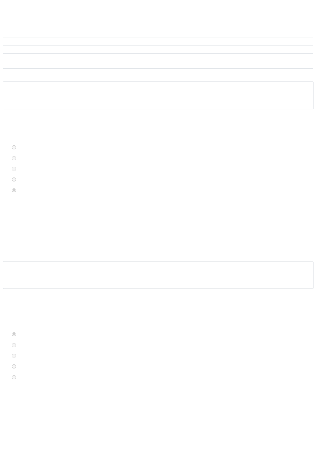 Iniciado em segunda, 5 Set 2022, 10:34 Estado Finalizada Concluída em segunda, 5 Set 2022, 10:43 Tempo empregado 8 minutos 42 segundos Avaliar 0,80 de um máximo de 2,00(40%) Questão 1 Incorreto Atingiu 0,00 de 0,40 Questão 2 Correto Atingiu 0,40 de 0,40 Um financiamento de R$ 10.000 foi feito pelo sistema de amortização constante (SAC) em 5 meses consecutivos e com 2 meses de carência. A operação foi contratada à taxa de juros de 8% ao mês. Nessa situação, o valor da segunda prestação após o início da amortização será: a. R$ 2.660 b. R$ 2.560 c. R$ 2.640 d. R$ 2.560 e. R$ 2.500 Sua resposta está incorreta. A resposta correta é: R$ 2.640 Uma pessoa toma emprestado R$1.000,00 e deve pagar o financiamento pelo sistema de amortização constante (SAC). Serão dez prestações mensais iguais e sucessivas, a primeira começando um mês após ter recebido o empréstimo. Se a segunda prestação devida tem o valor de R$ 108,10, qual é a taxa de juros compostos desse empréstimo? a. 0,9% ao mês b. 1,2% ao mês c. 1,0% ao mês d. 1,1% ao mês e. 0,8% ao mês Sua resposta está correta. A resposta correta é: 0,9% ao mês Questão 3 Incorreto Atingiu 0,00 de 0,40 Questão 4 Incorreto Atingiu 0,00 de 0,40 O sistema de amortização constante (SAC) é uma forma de amortização do saldo devedor de um empréstimo, em que a amortização se dá em partes iguais. Então, o valor da prestação paga ao longo da vigência do contrato é: a. constante e depois crescente. b. sempre decrescente. c. nenhuma das opcões d. constante e depois decrescente. e. sempre crescente. Sua resposta está incorreta. A resposta correta é: sempre decrescente. Econômicas] Um carro, cujo valor à vista é de R$ 20.000,00, pode ser financiado integralmente, utilizando-se uma taxa nominal de juros de 36% ao ano, com capitalização mensal pelo Sistema de Amortização Constante (SAC). Como o financiamento deve ser amortizado integralmente em 4 meses, o valor da última prestação, em reais, é de: a. 6.200 b. 5.600 c. 5.300 d. 5.150 e. 5.000 Sua resposta está incorreta. A resposta correta é: 5.150 Questão 5 Correto Atingiu 0,40 de 0,40 Considere um financiamento contratado sob o Sistema de Amortização Constante − SAC, no valor de R$ 18.000,00, a ser pago mensalmente em 10 anos, a partir de 30 dias após a contratação, com taxa de juros de 1% ao mês. O valor da quarta prestação será, em reais, de: a. 330,00 b. 325,50 c. 333,00 d. 334,50 e. 324,00 Sua resposta está correta. A resposta correta é: 325,50